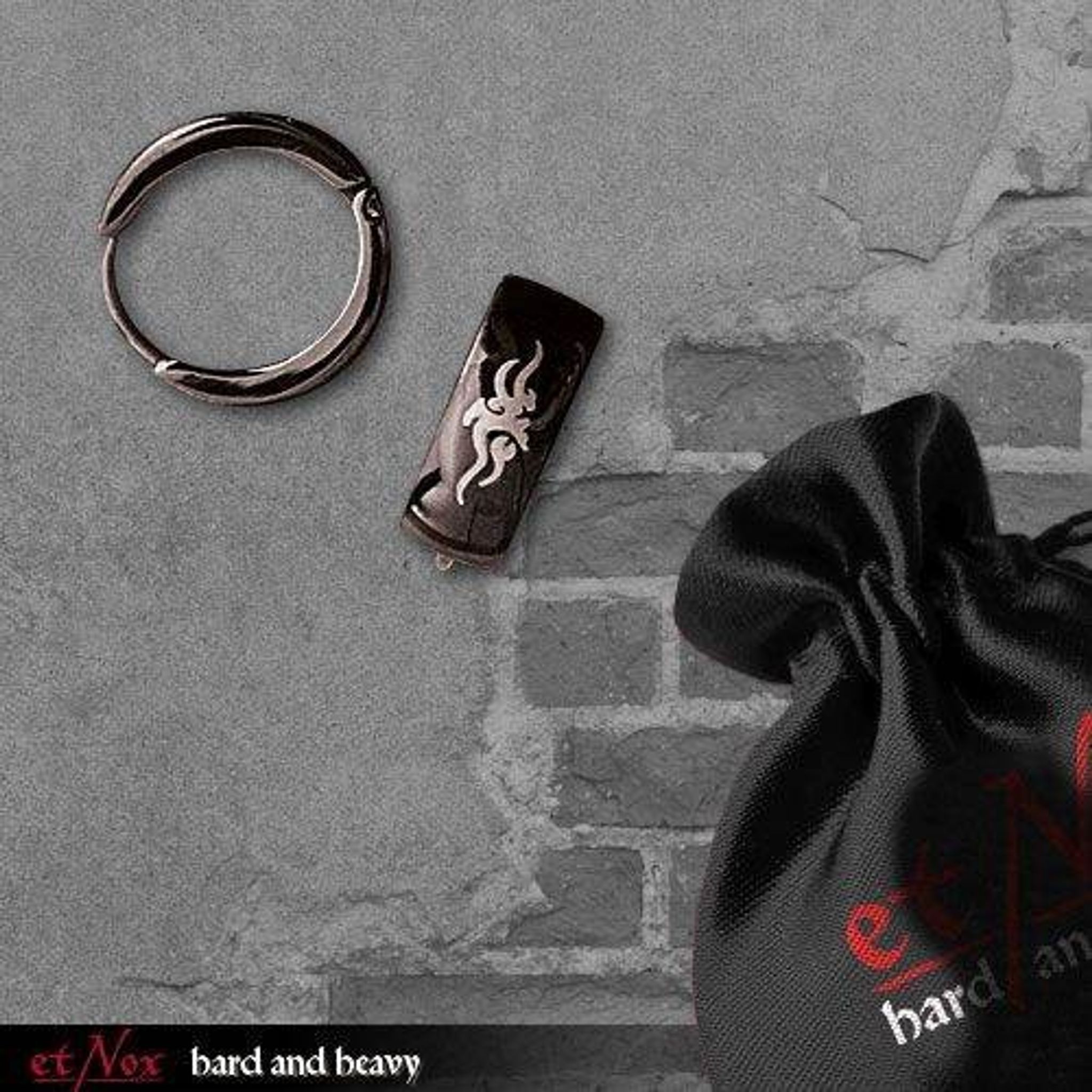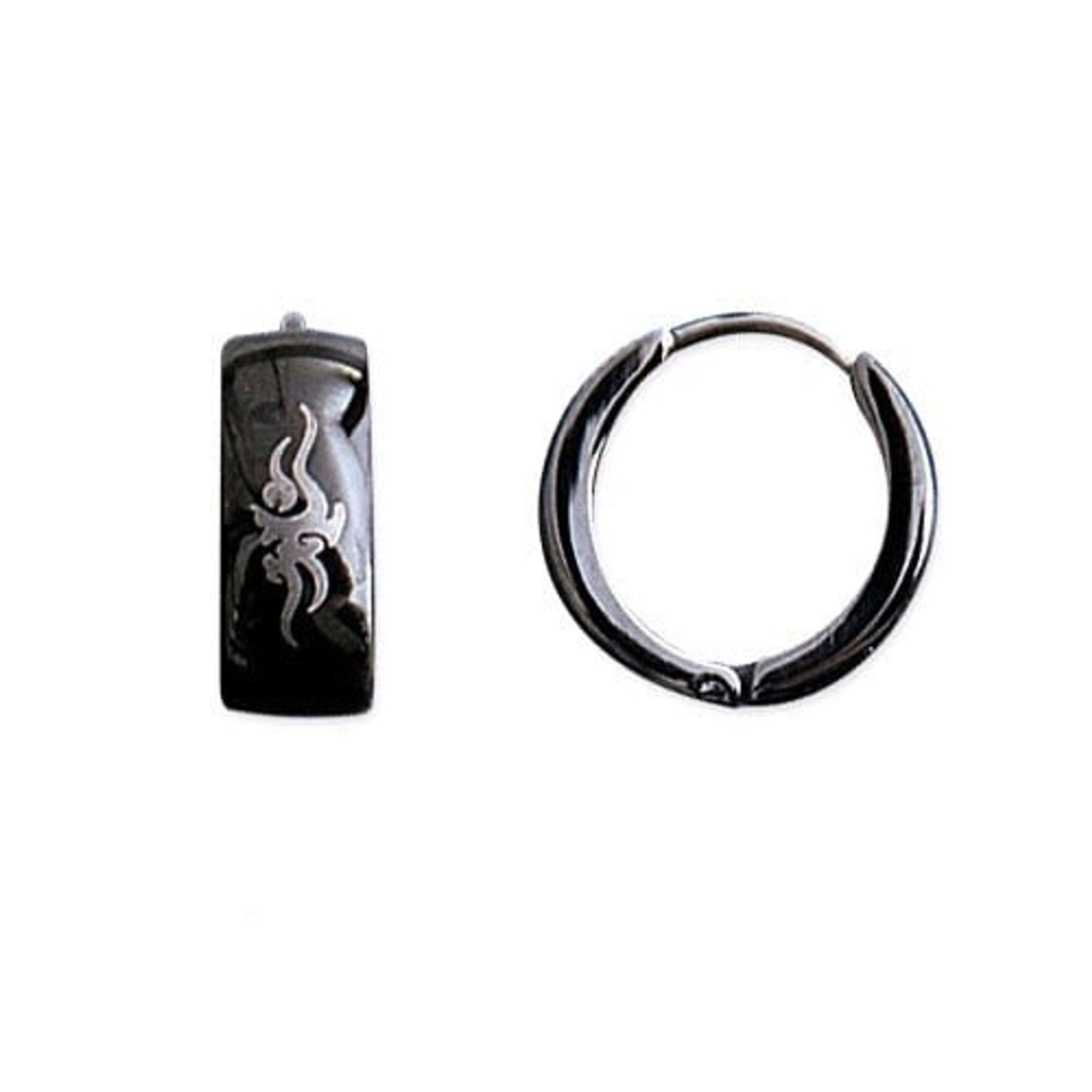 Ett läckert örhänge i blank svart färg och som är dekorerat med ett tribalmönster.