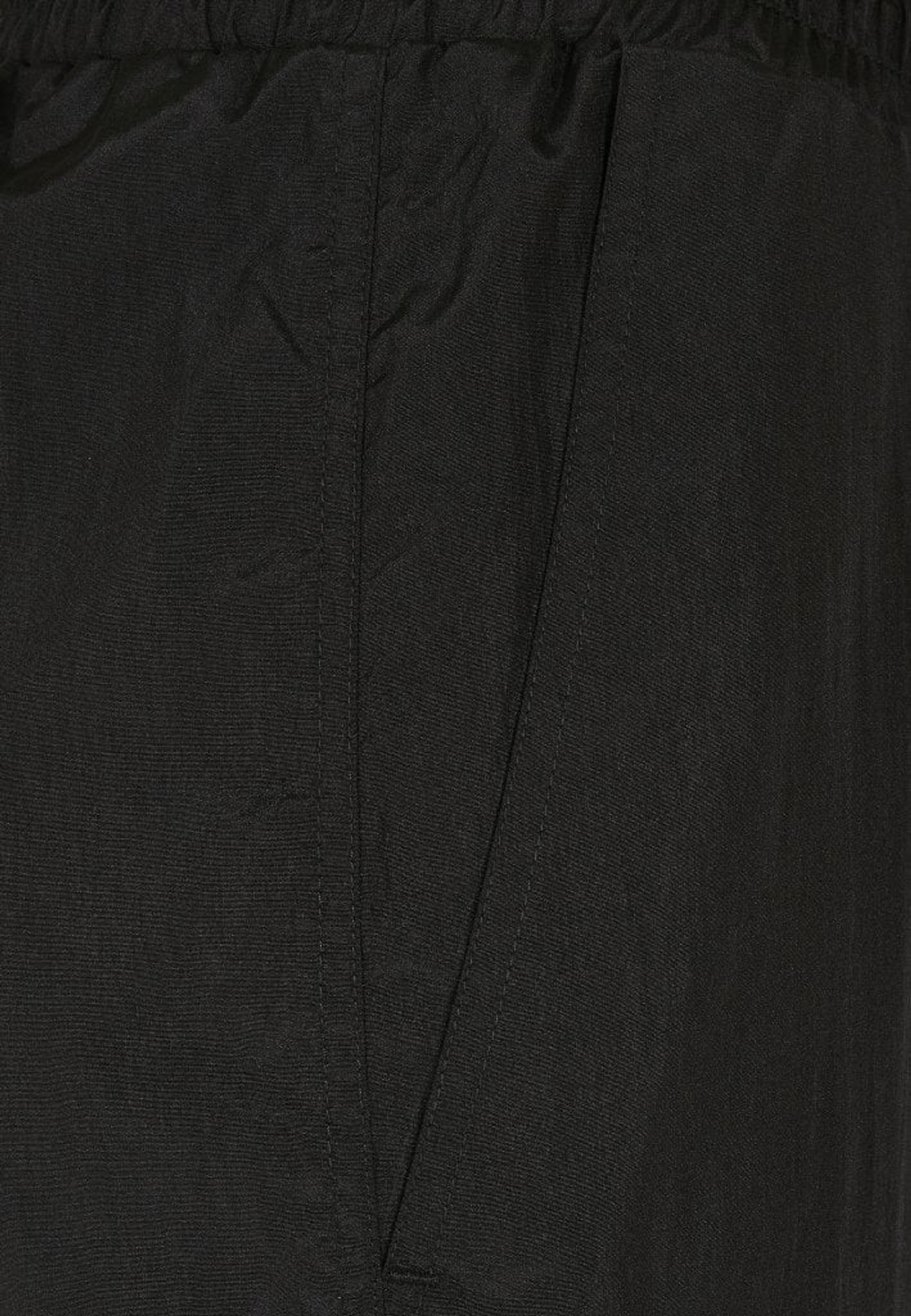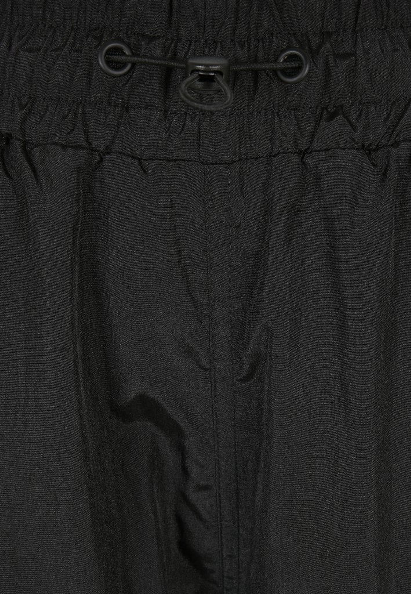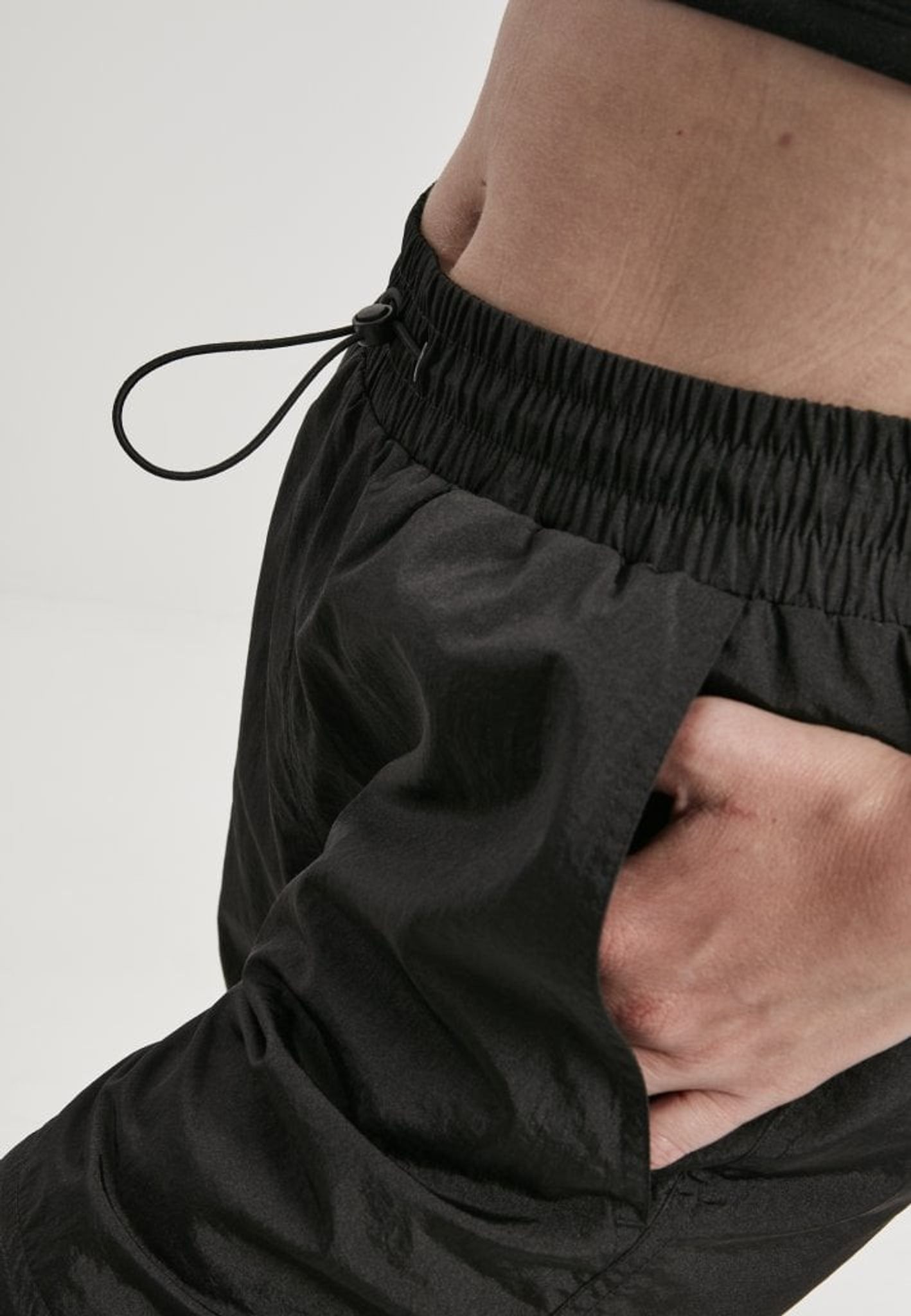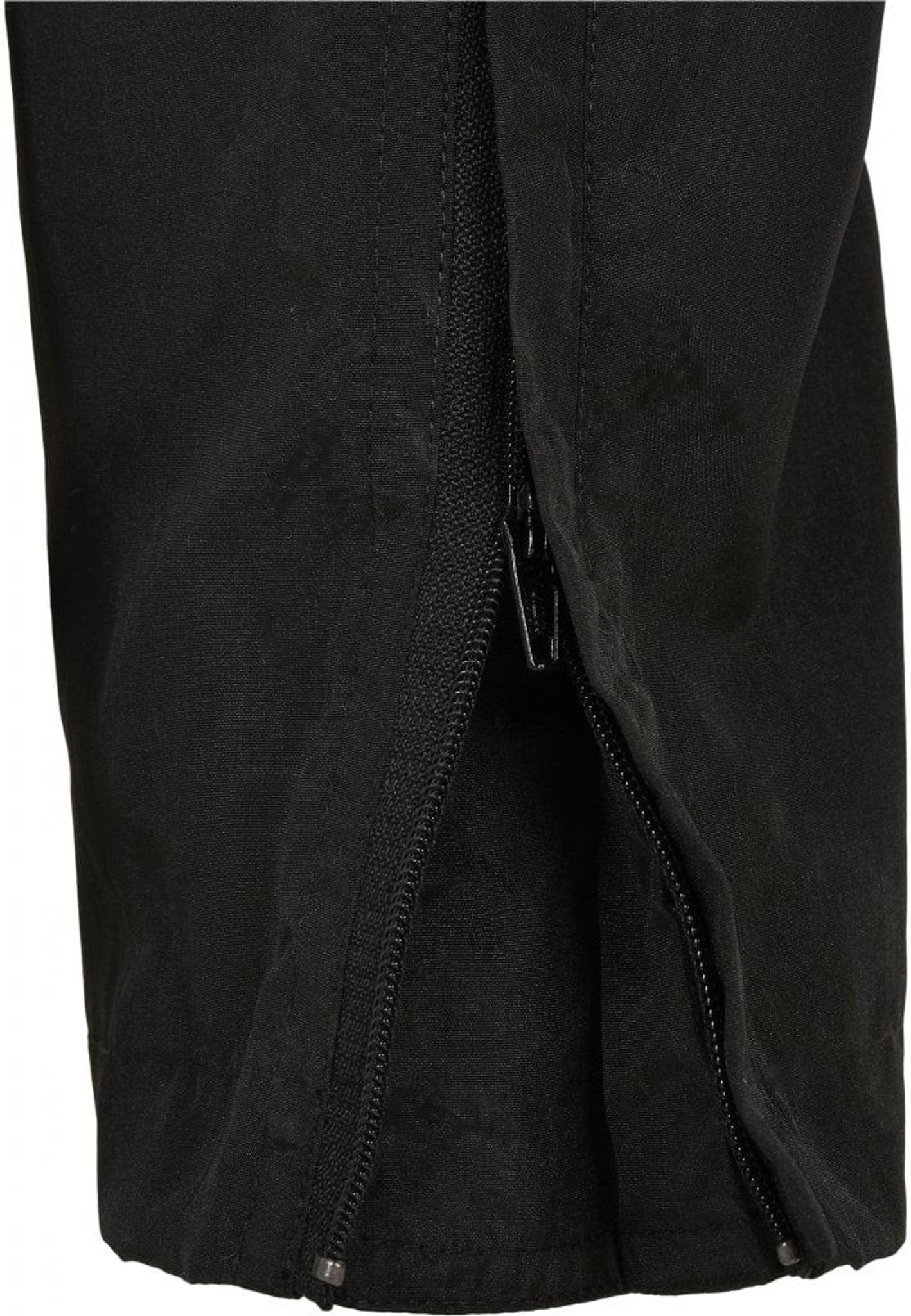 Nertill på byxan kan man justera vidden med en dragkedja eller kan man ta av sig byxan utan att ta av skorna om man knäpper upp dragkedjan.