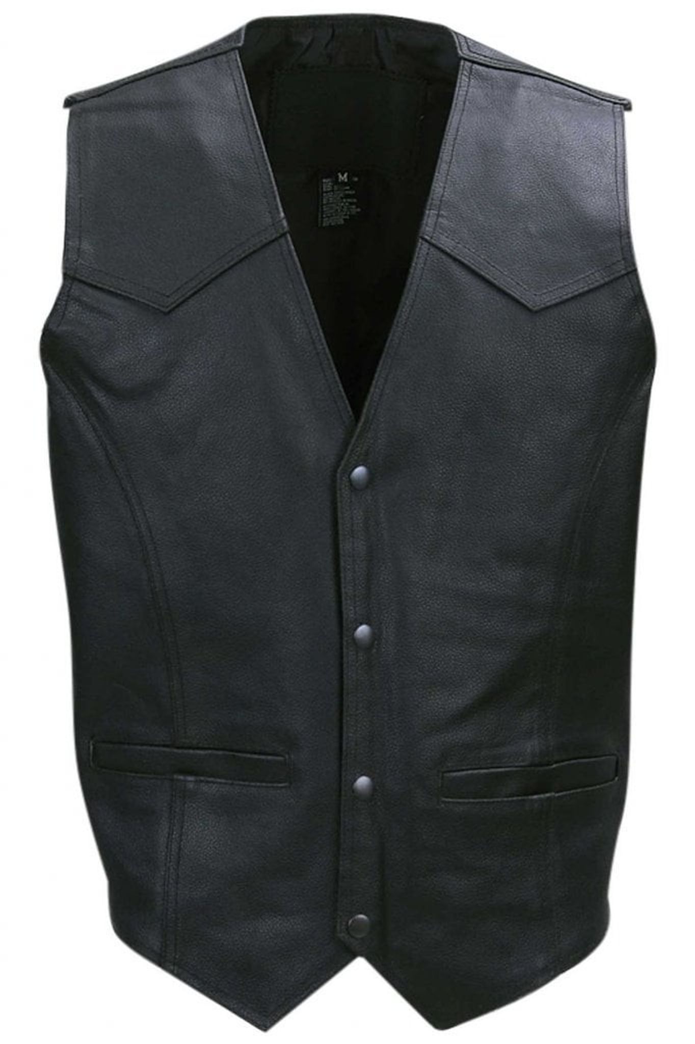 Den svarta skinnvästen för herr är tillverkad i 100% äkta läder, vilket ger den en slitstark och klassisk look.