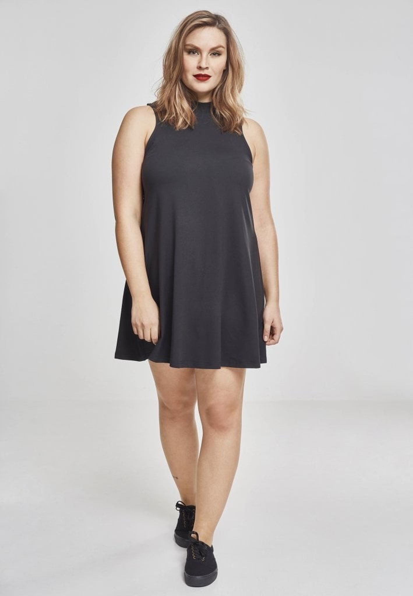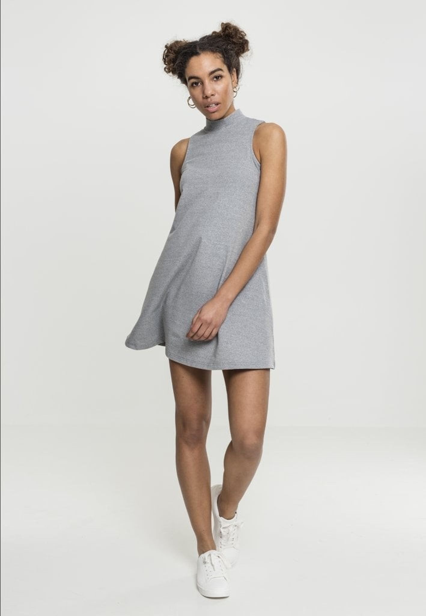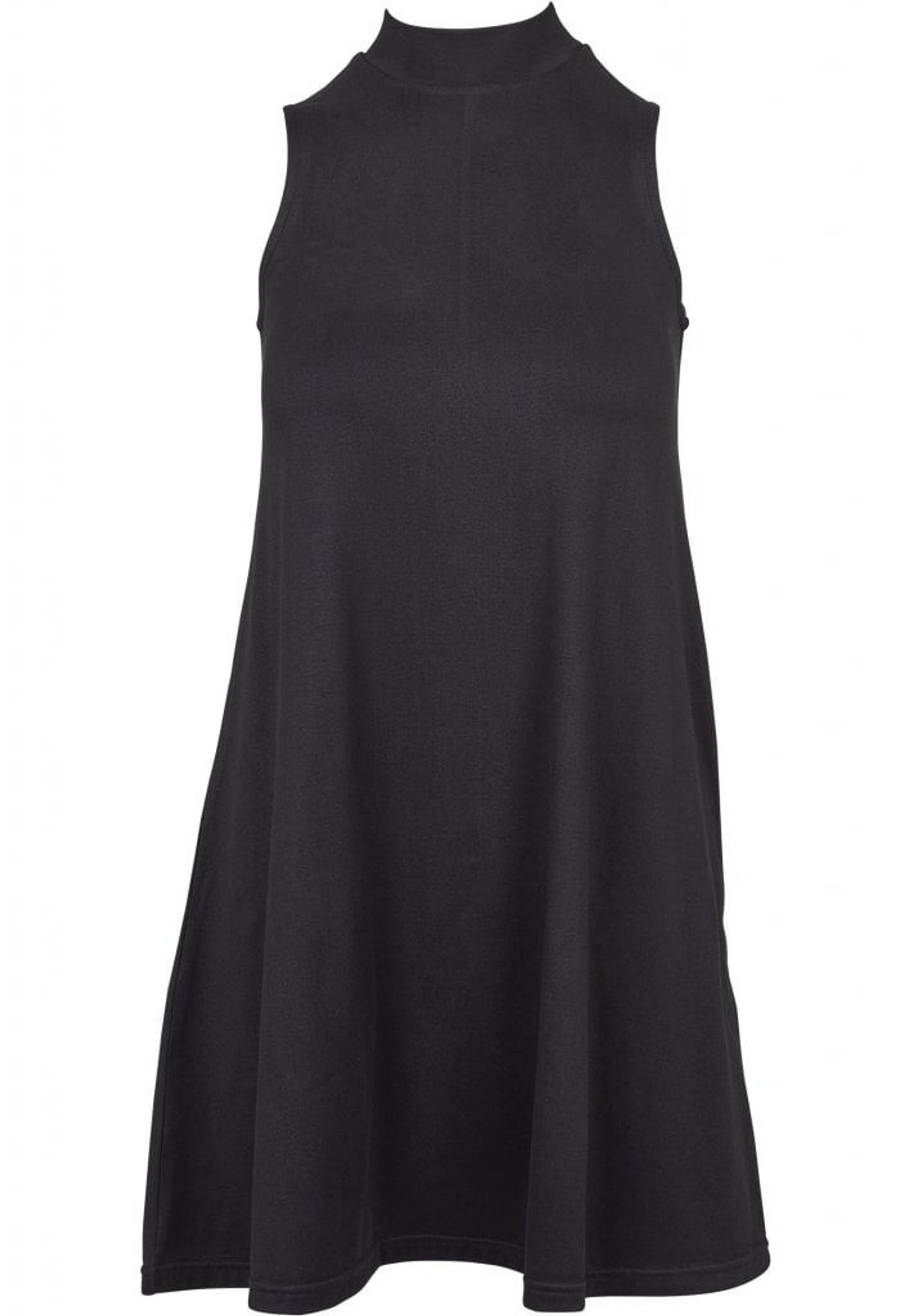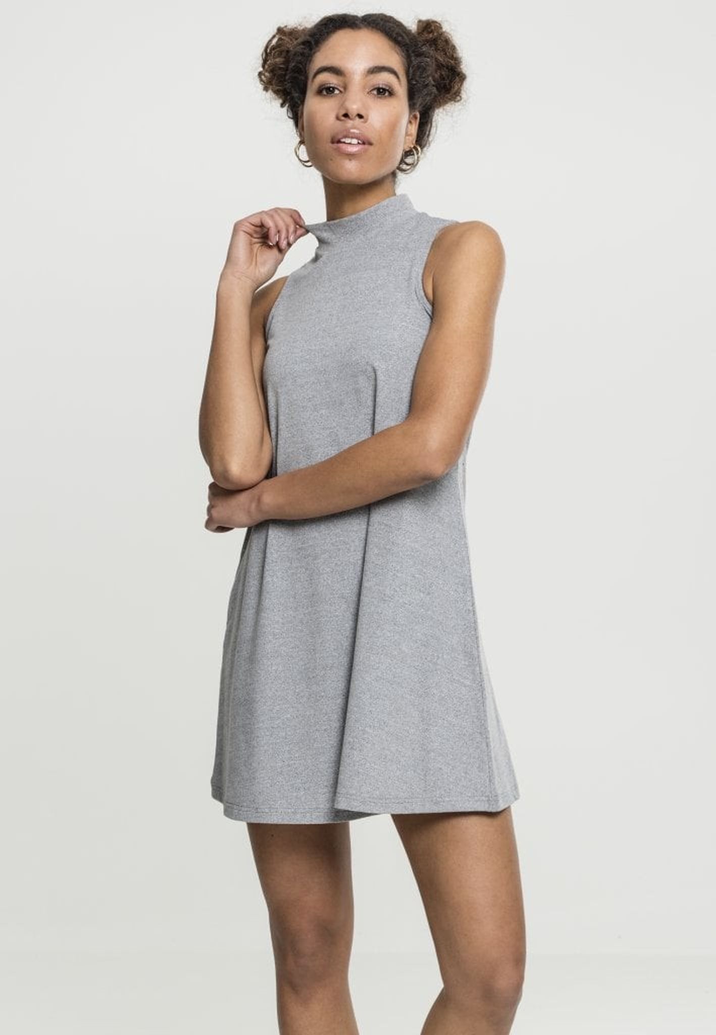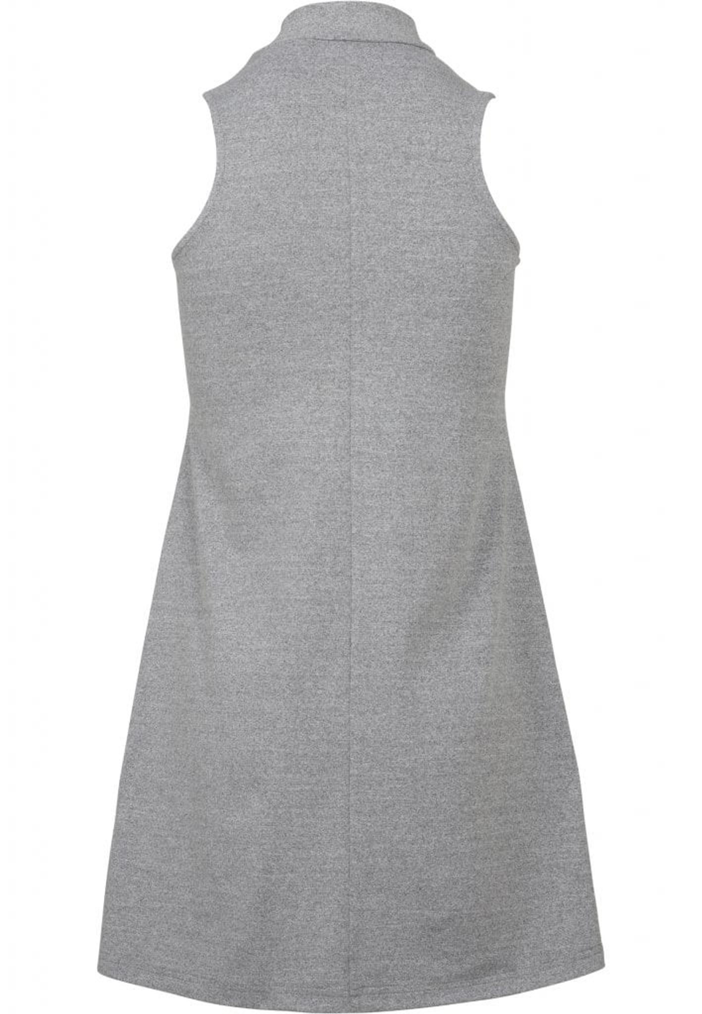 Klänningen har turtleneck skärning i halsen och är ärmlös.