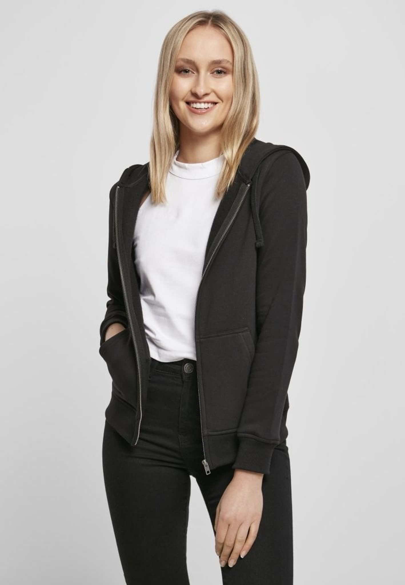 Så om du letar efter en högkvalitativ, snygg ziphoodie för kvinnor är Svart ziphoodie definitivt värt att kolla in. Med sin klassiska design, figurnära passform och praktiska funktioner kommer du troligtvis ha ett nytt favoritplagg.