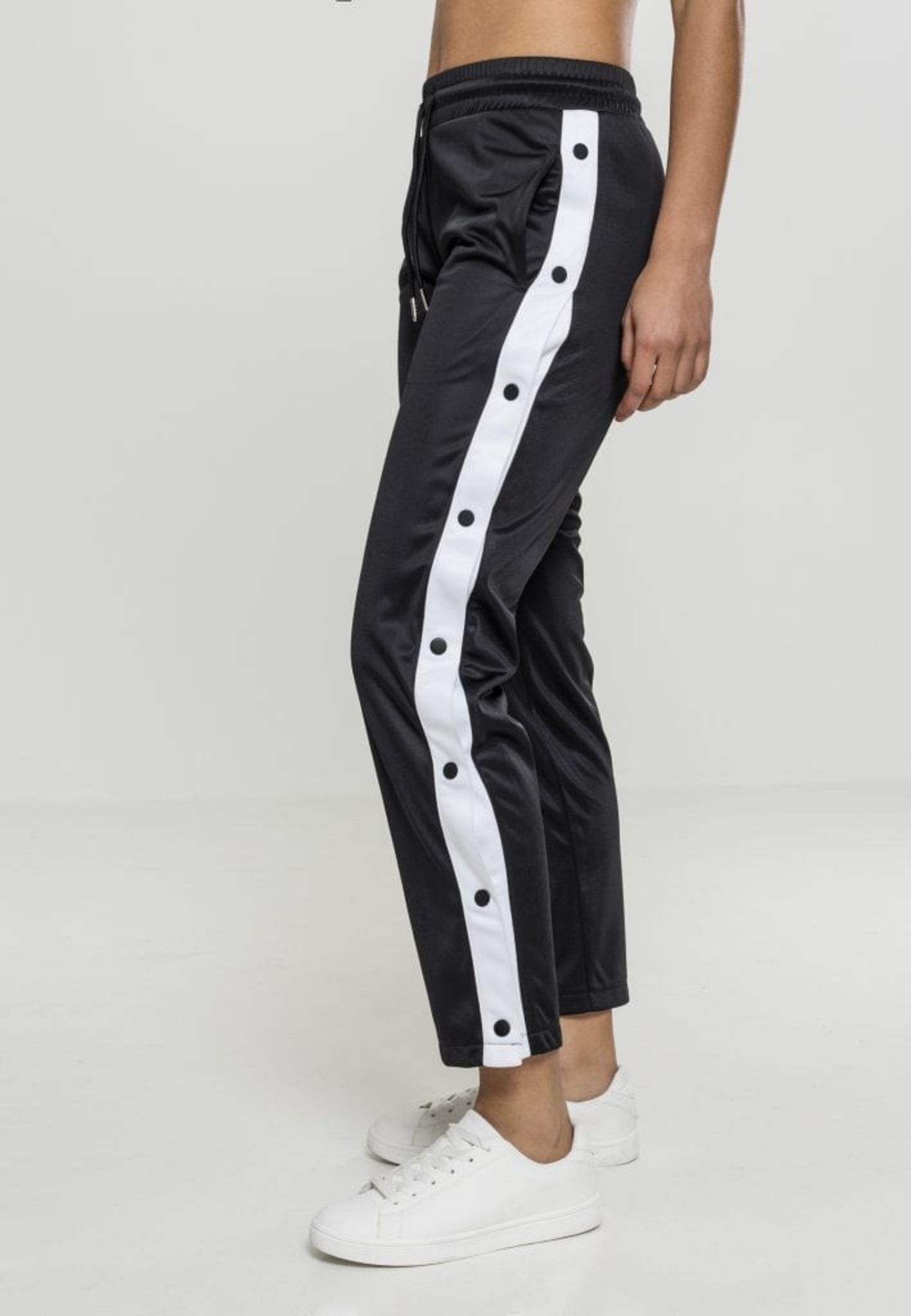 Svarta byxor med vit rand och knappar dam