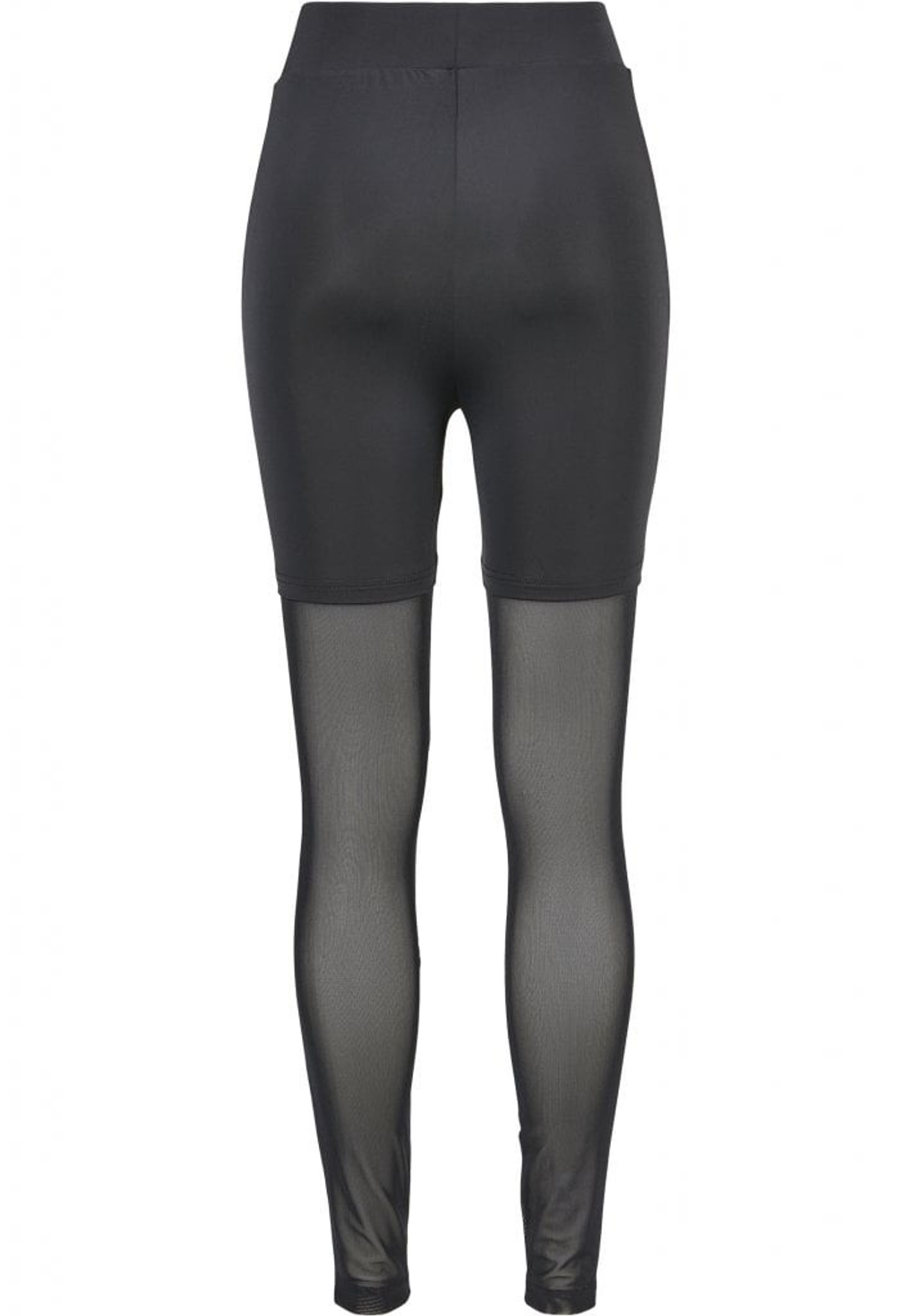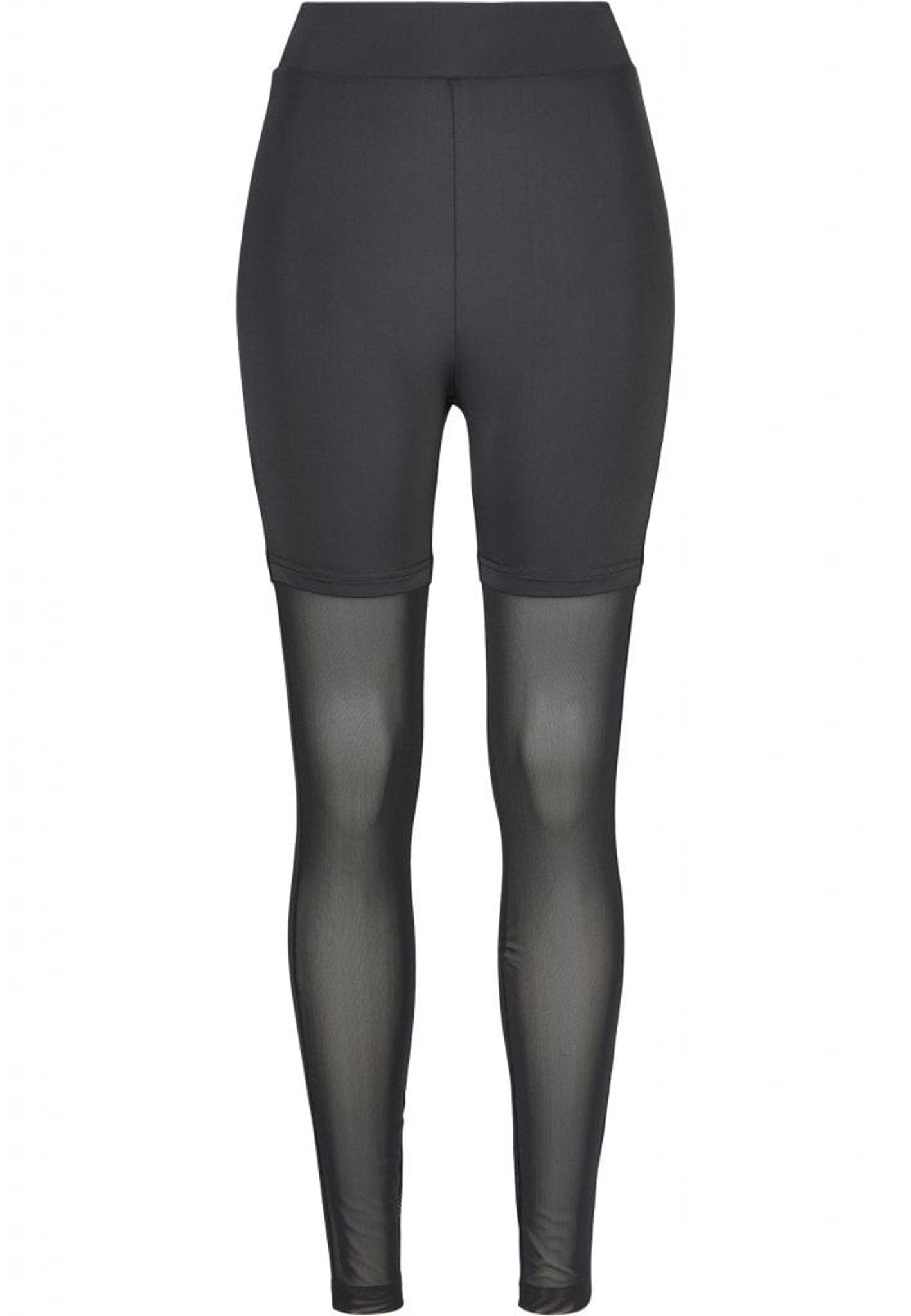 Ett par svarta leggings som ser ut som en kort tight byxa med strumpbyxa under.