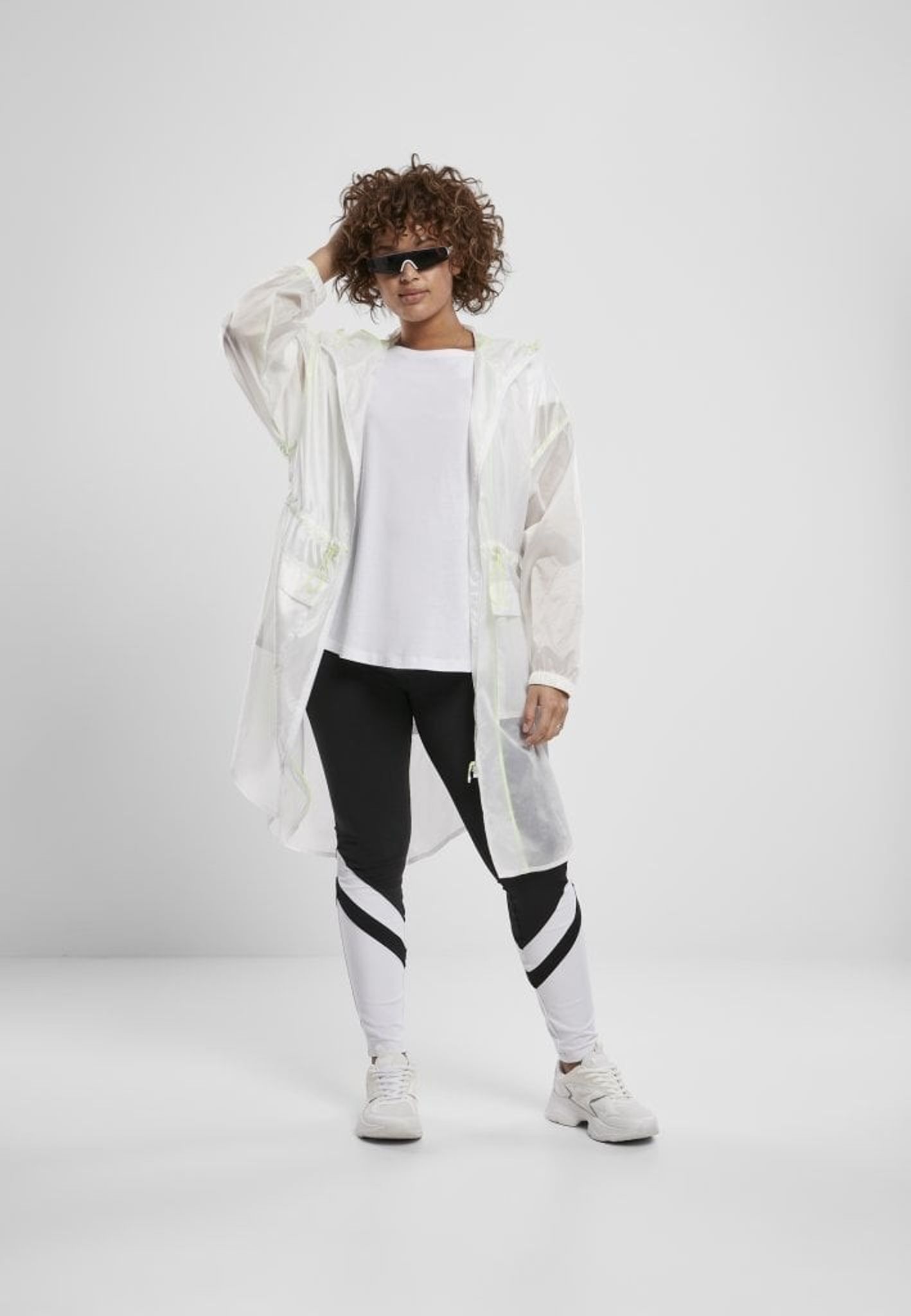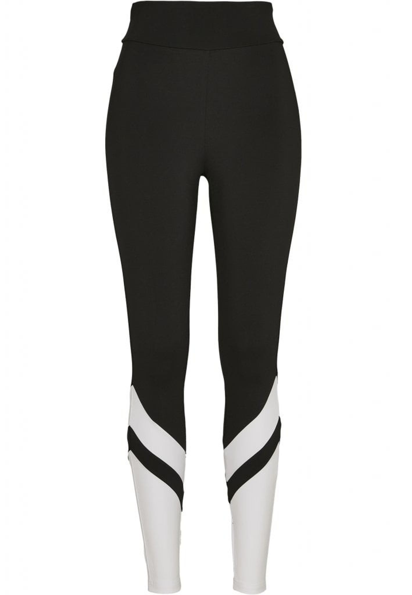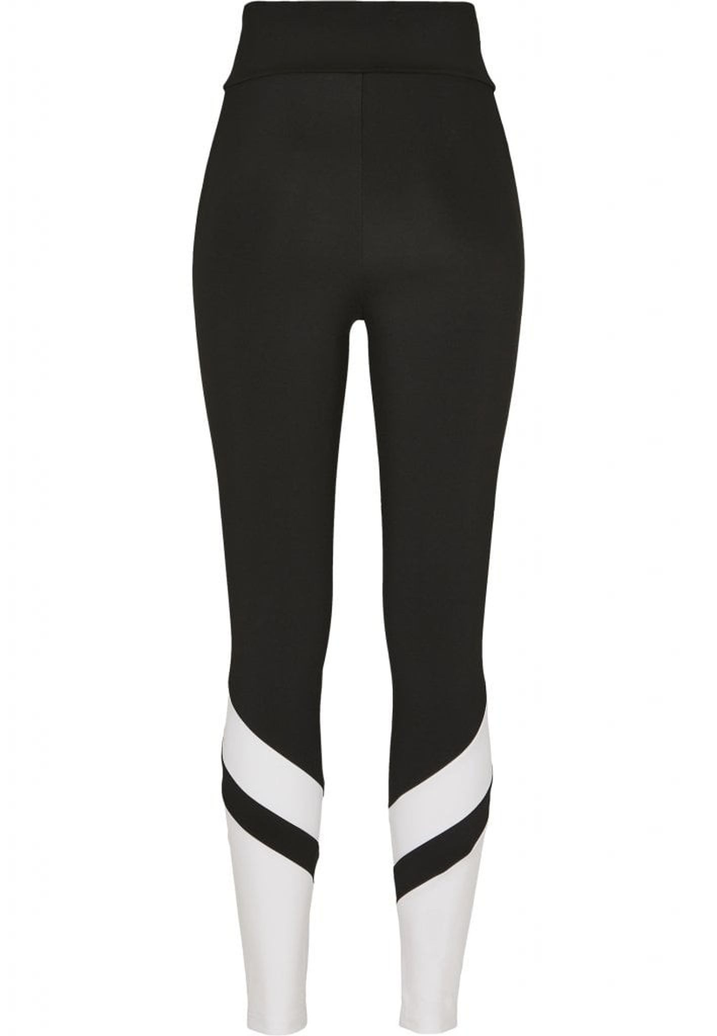 Ett par hellånga leggings som är svarta upptill och har ränder under knäna och är vita nertill.