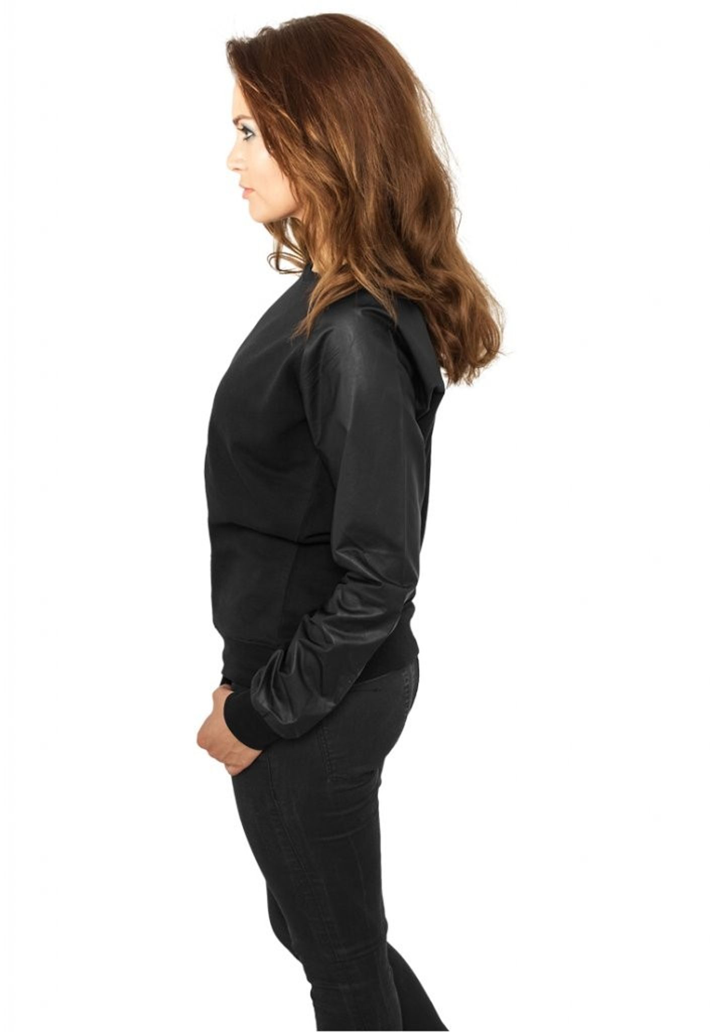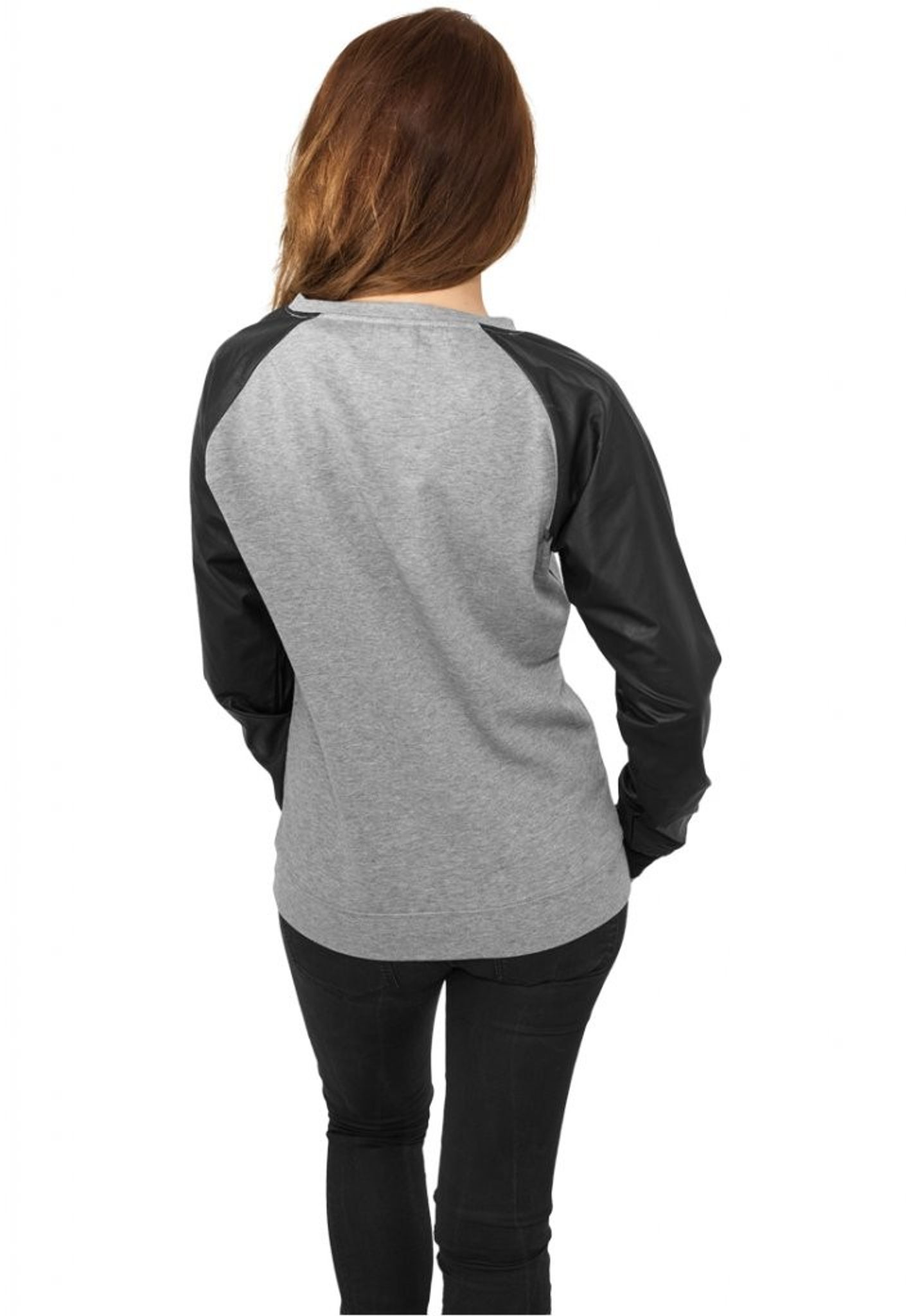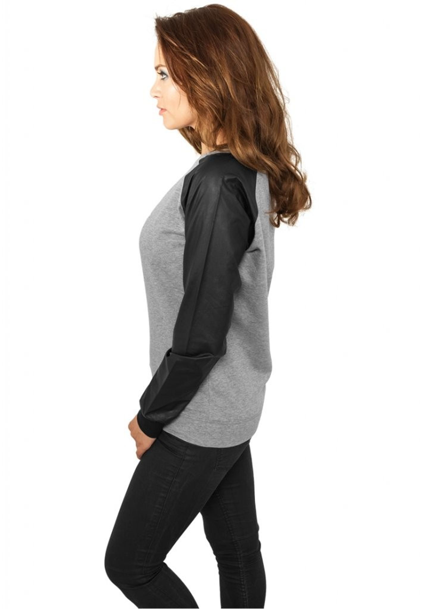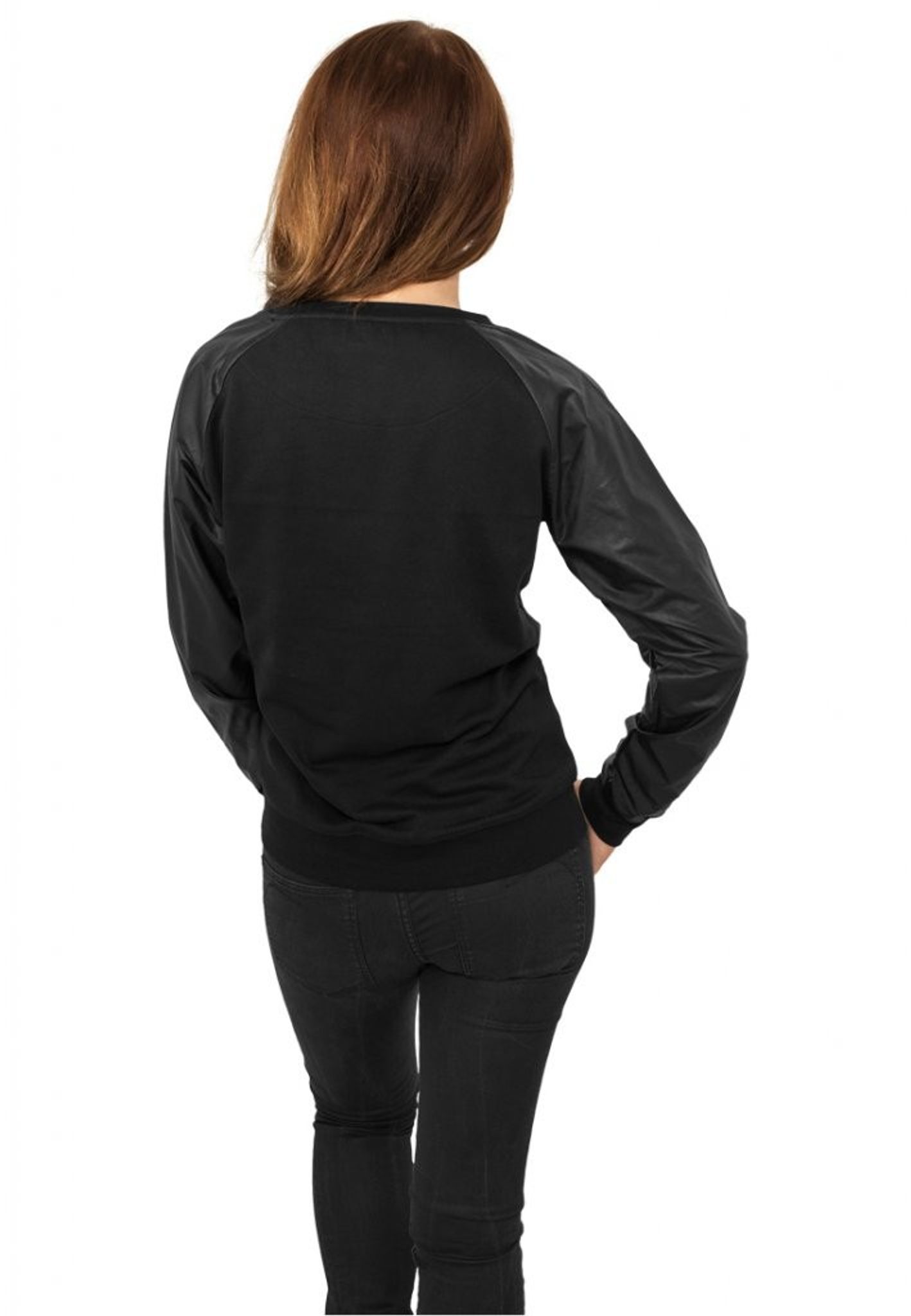 En riktigt snygg och stilren sweatshirt där armarna är klädda i ett skinnliknande material.