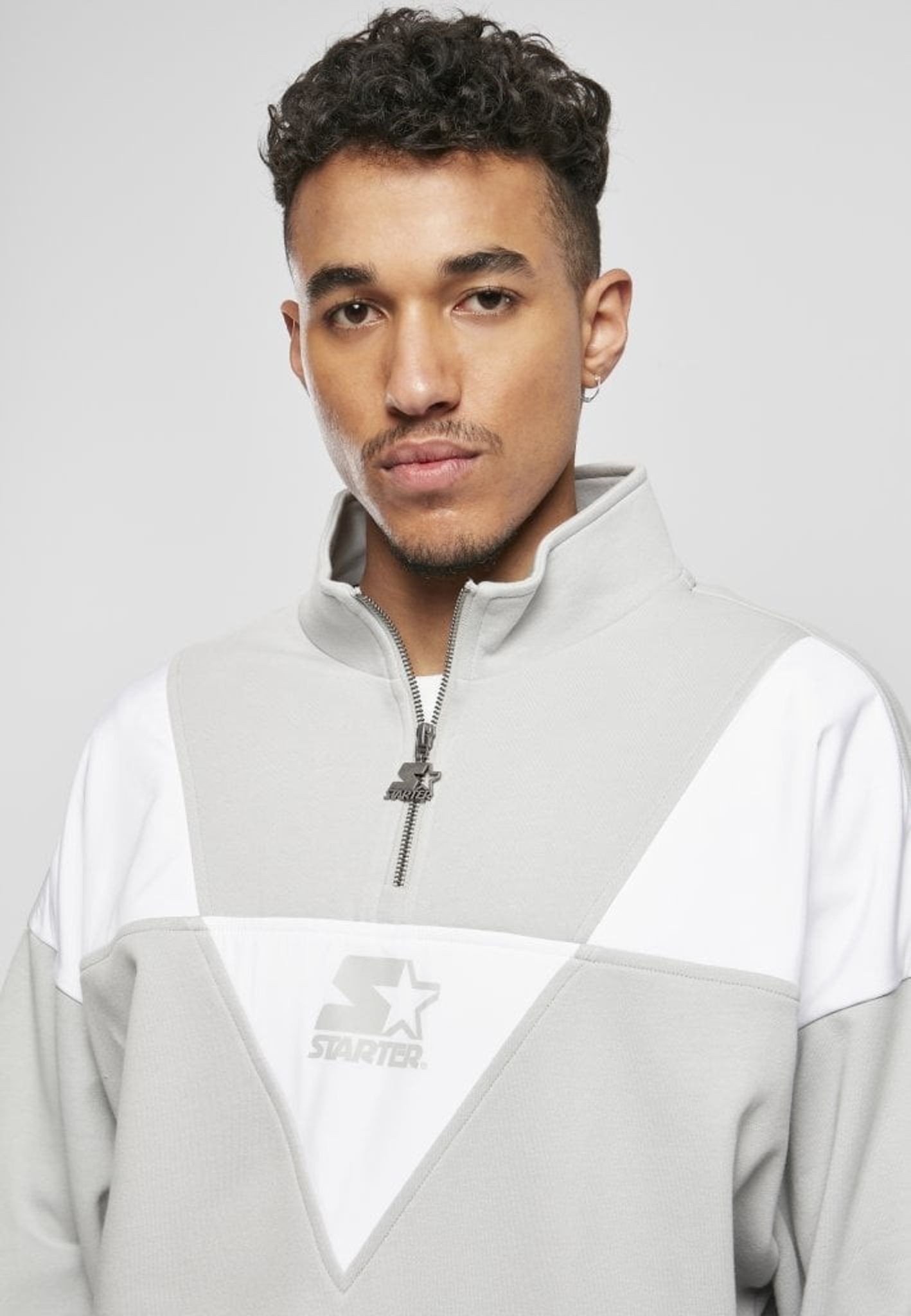 Denna tröja har snygga vita partier på axlarna och en vit triangel mitt på bröstet under dragkedjan. I trianglen är en Starterlogga.
