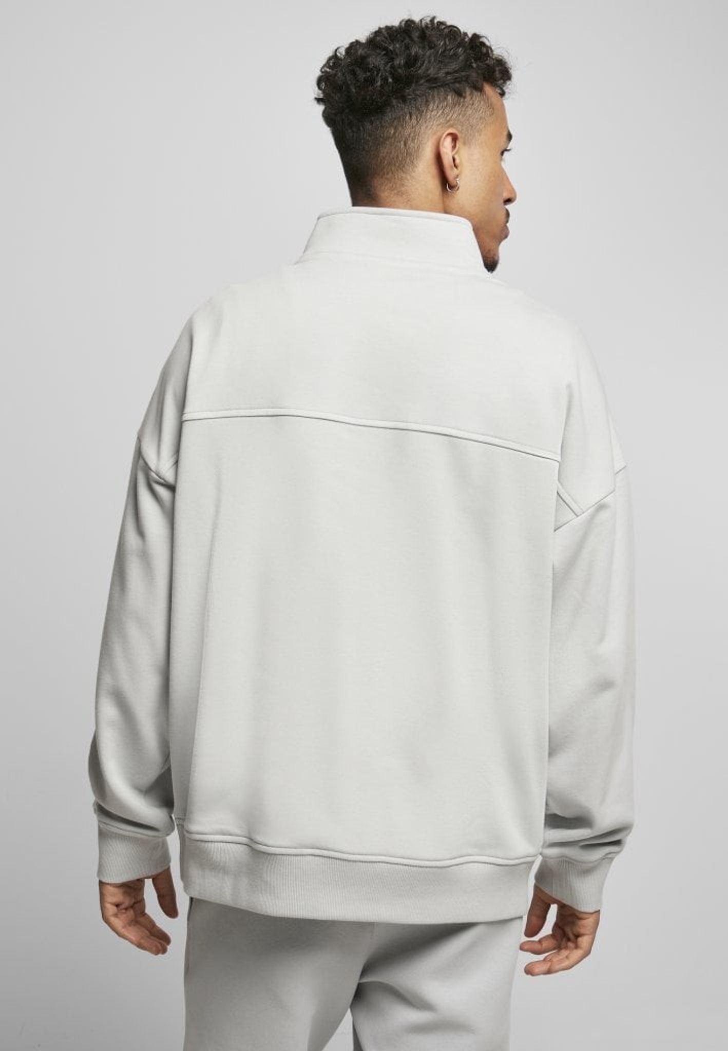 Tröjan har en ståuppkrage med en kort dragedja och modellen är oversize.