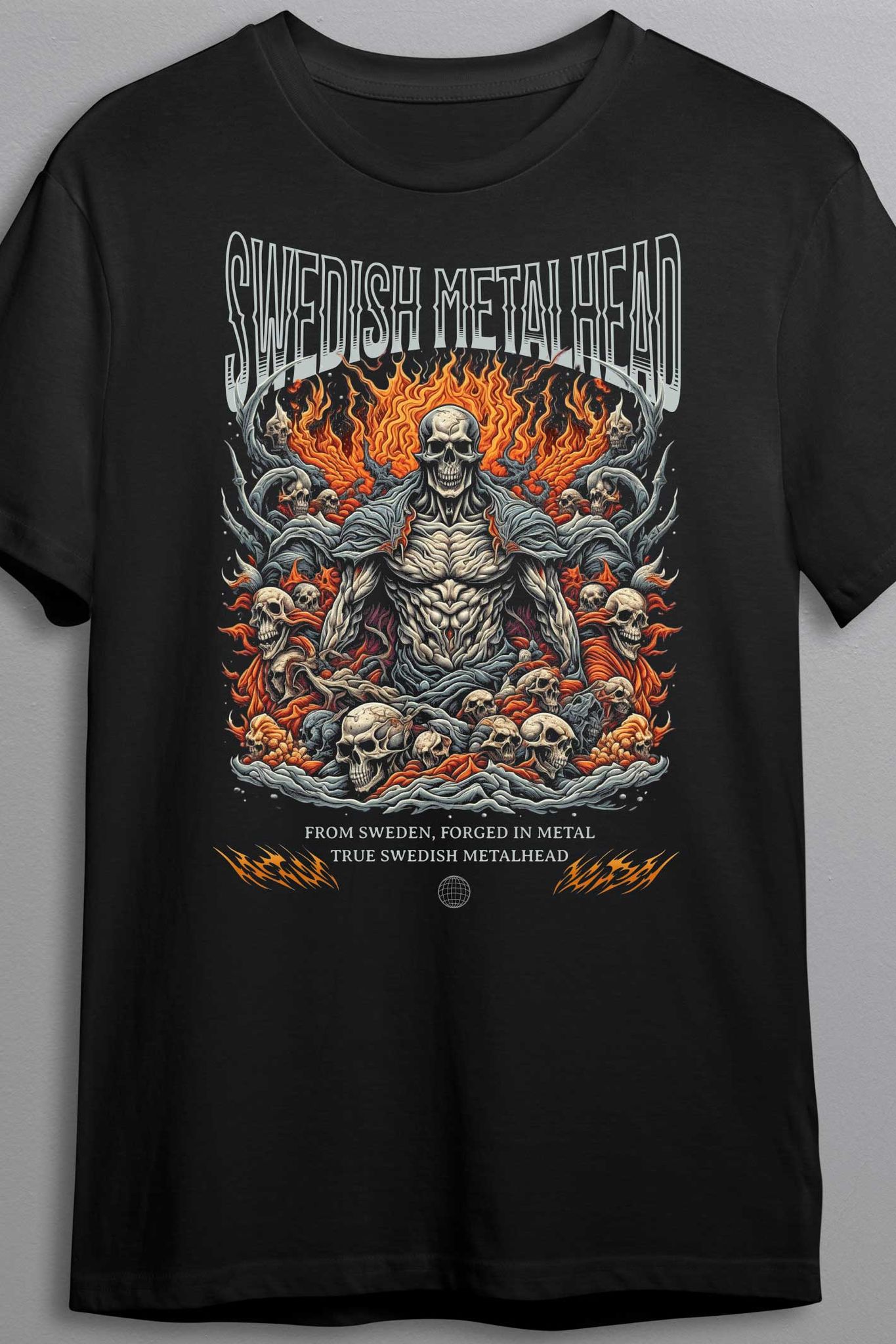 Swedish Metalhead T-shirt är den ultimata tröjan för den sanna metalälskaren. Med ett kraftfullt och detaljerat tryck som utstrålar hårdhet och passion för den svenska metalscenen är detta en t-shirt som drar blickarna till sig. Motivet pryds av en mäktig dödskalleomgiven av eld och skuggor, med texten Swedish Metalhead i en skarp, distinkt stil. Under motivet betonas det ikoniska arvet från Sveriges metalvärld med texten From Sweden, Forged in Metal – True Swedish Metalhead.