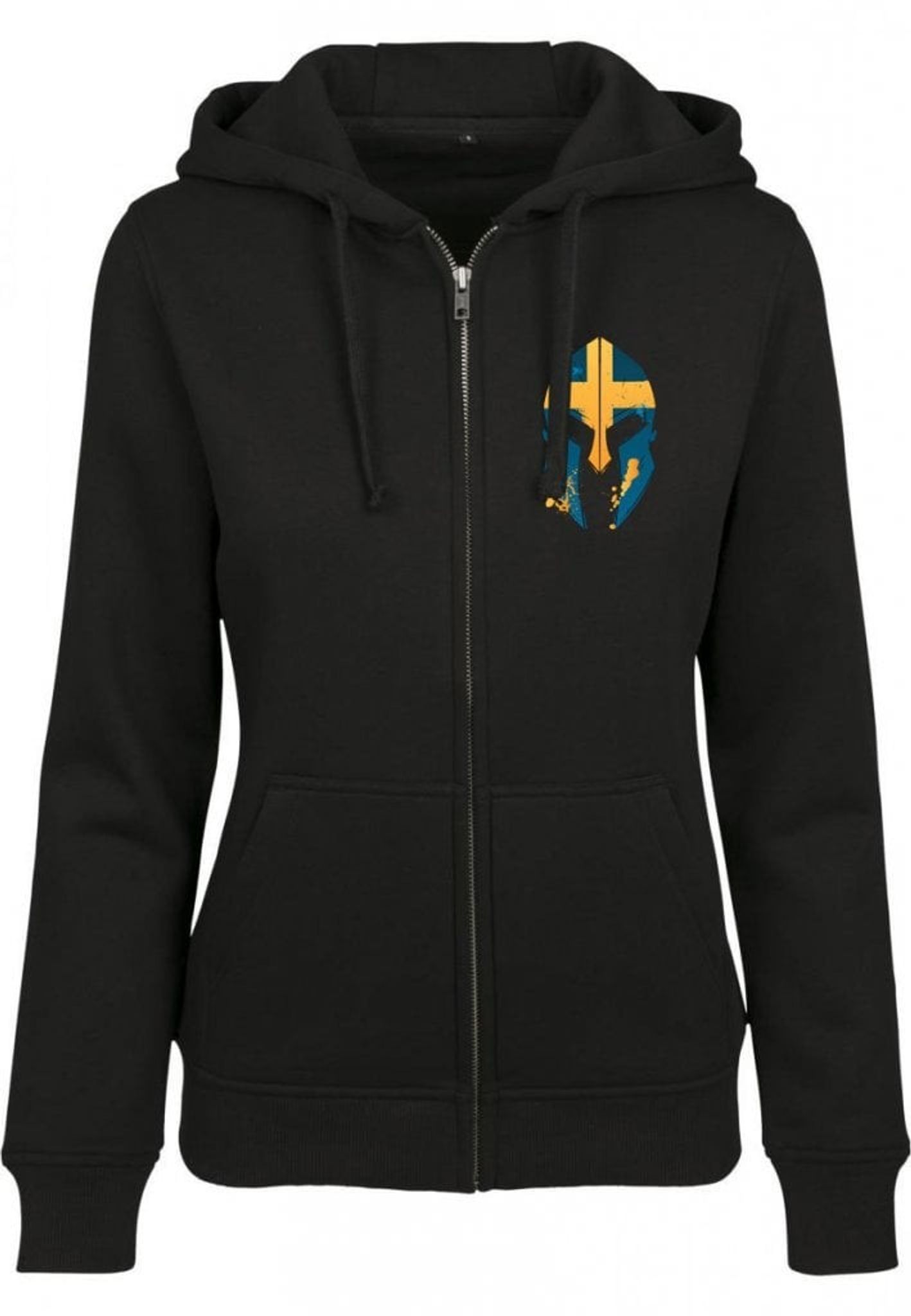 Denna svarta ziphoodie kombinerar stil och komfort med en unik design. På bröstet finns en Spartan-hjälm i Sveriges flaggas färger, vilket ger plagget en snygg och patriotisk touch. Perfekt för dig som vill visa ditt stöd med en praktisk och bekväm hoodie.