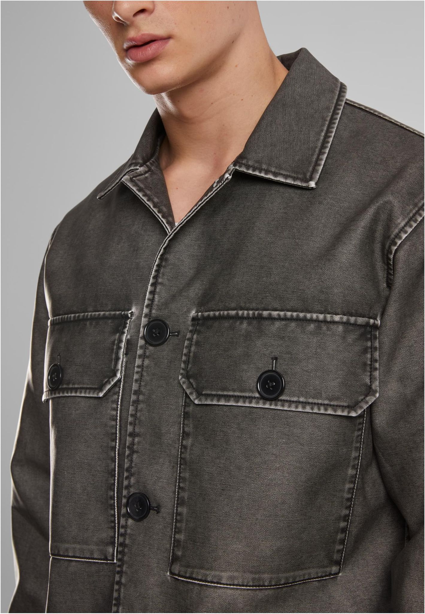 Synthetic Vintage Leather Skjortjacka
