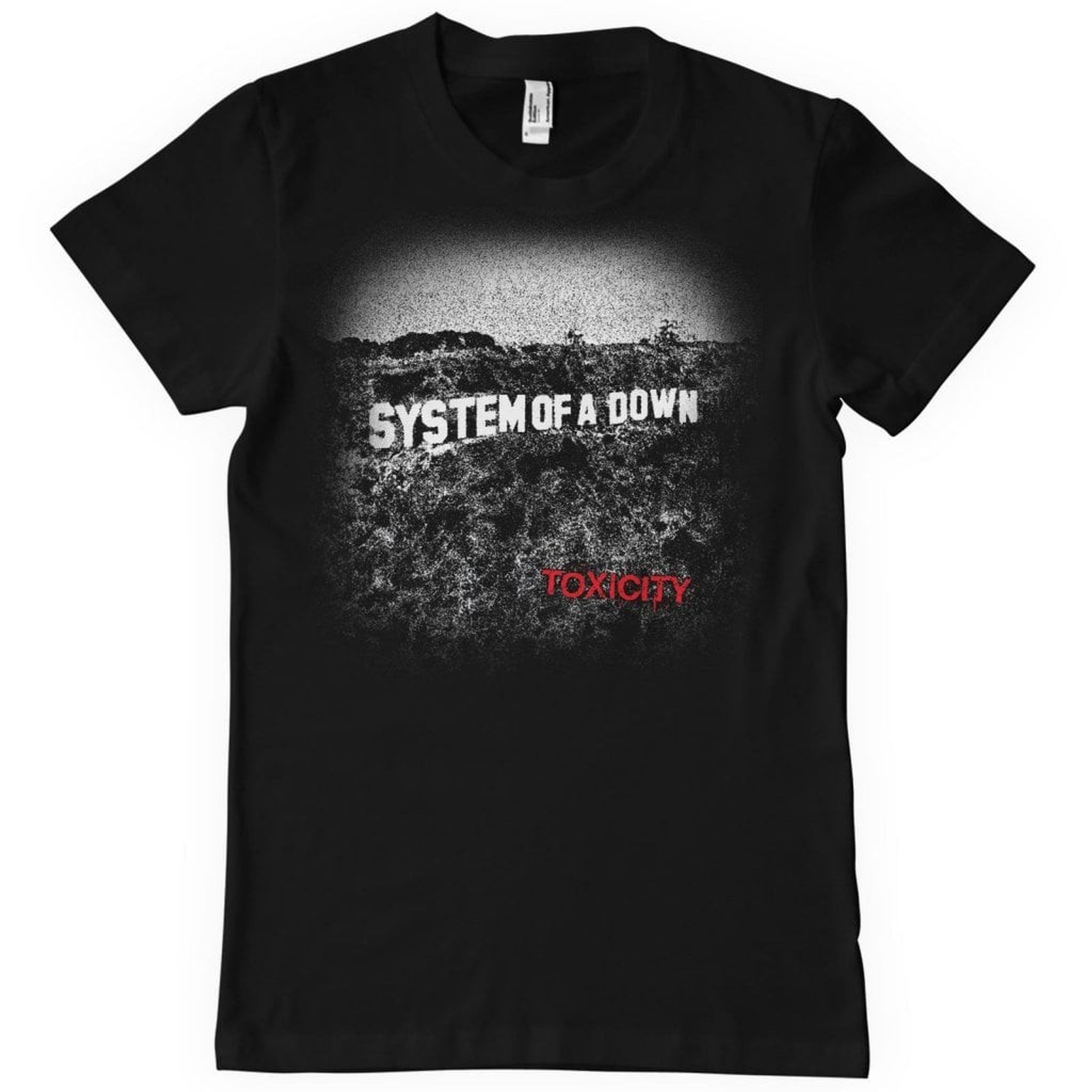 Längre ner på tröjan står "Toxicity" i röd text, som en påminnelse om att livet ibland kan vara lite... ja, giftigt. Precis som bandets musik, är designen en perfekt blandning av råhet och skönhet, vilket ger den en industriell känsla som får dig att vilja headbanga i takt med musiken.