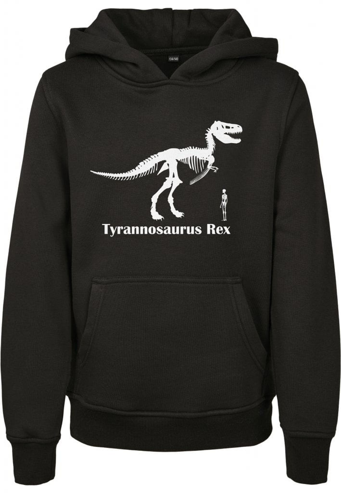 En svart hoodie med skelettet av en stor Tyrannosaurus Rex i förhållande till ett mänskligt skelett.