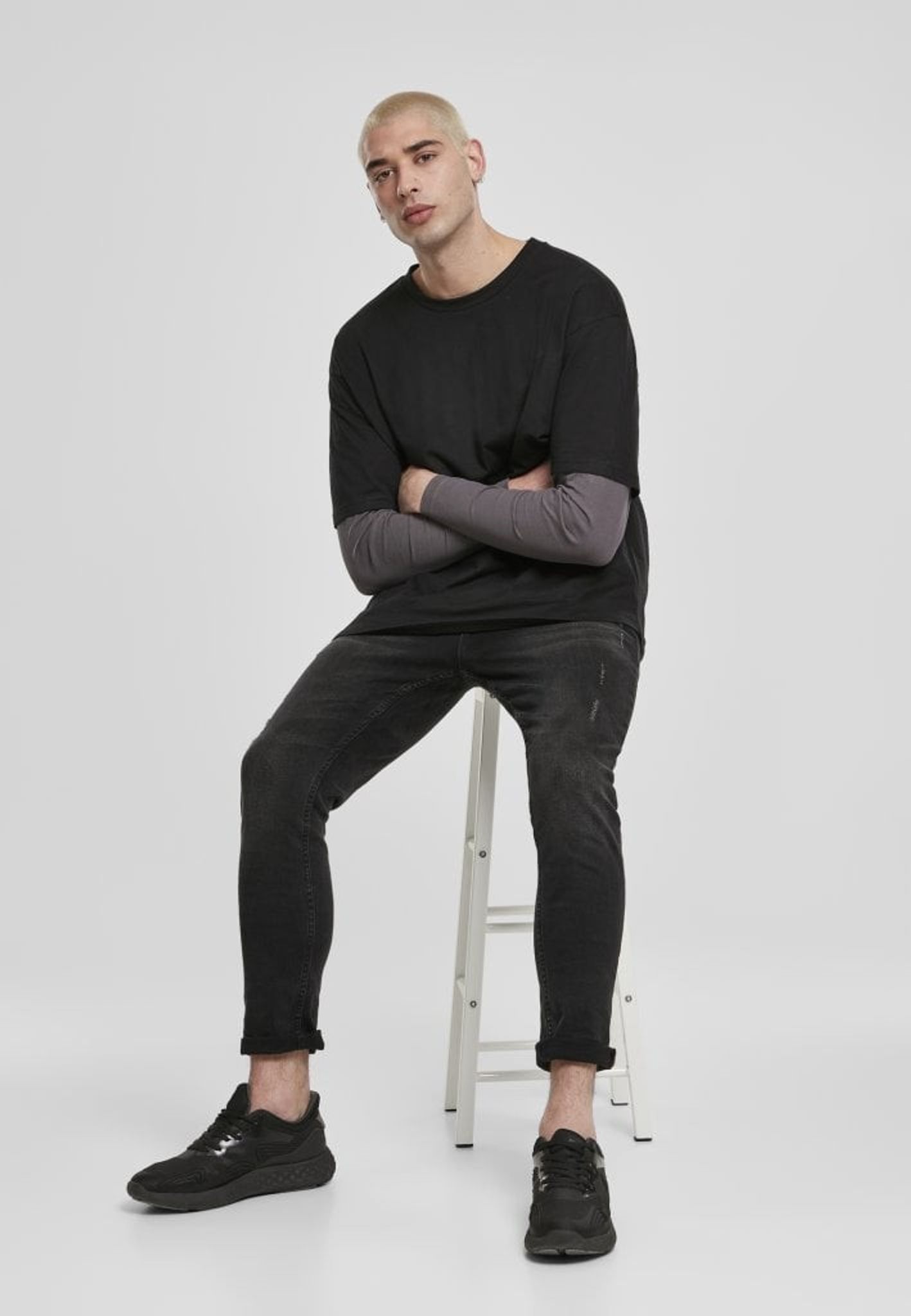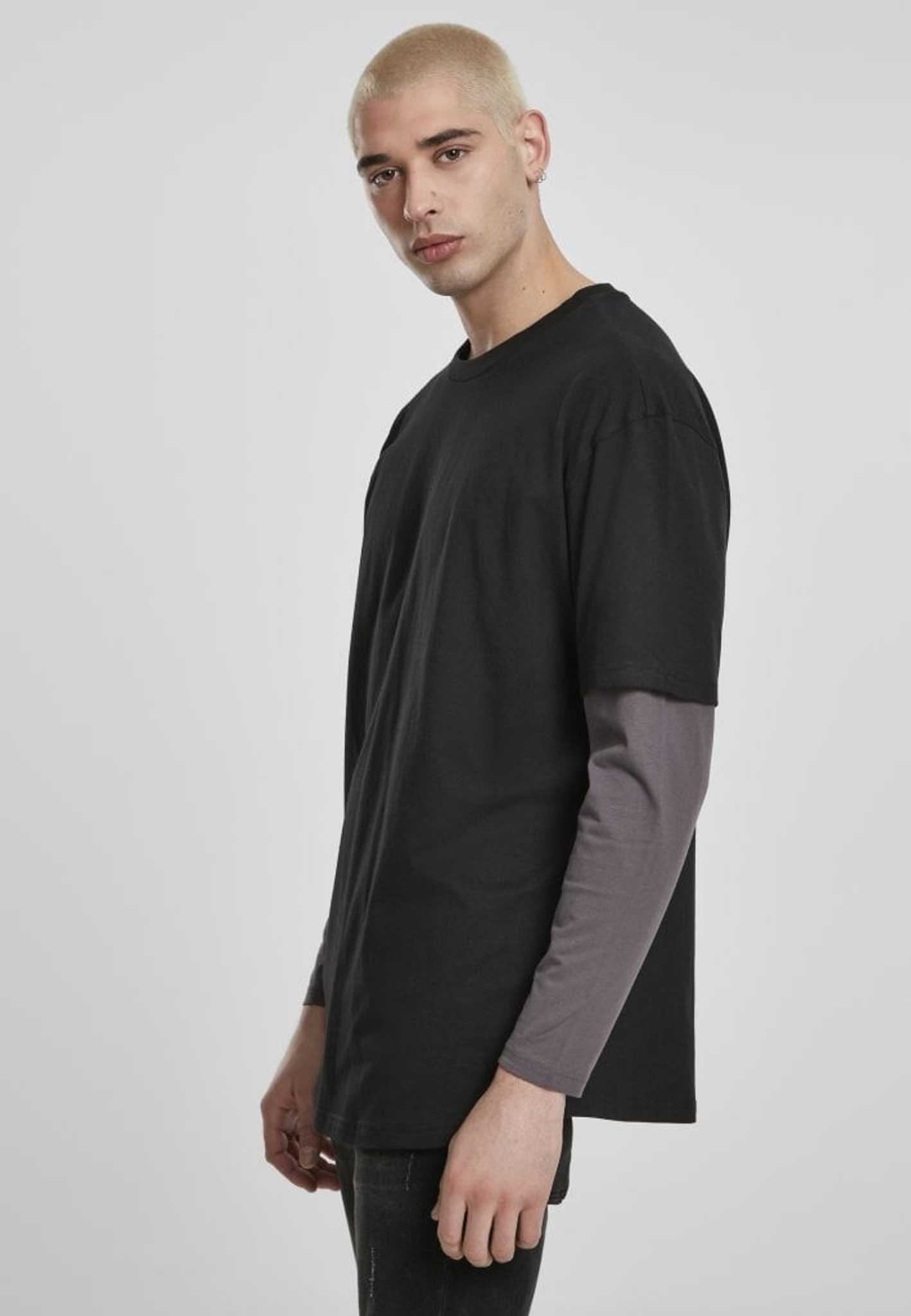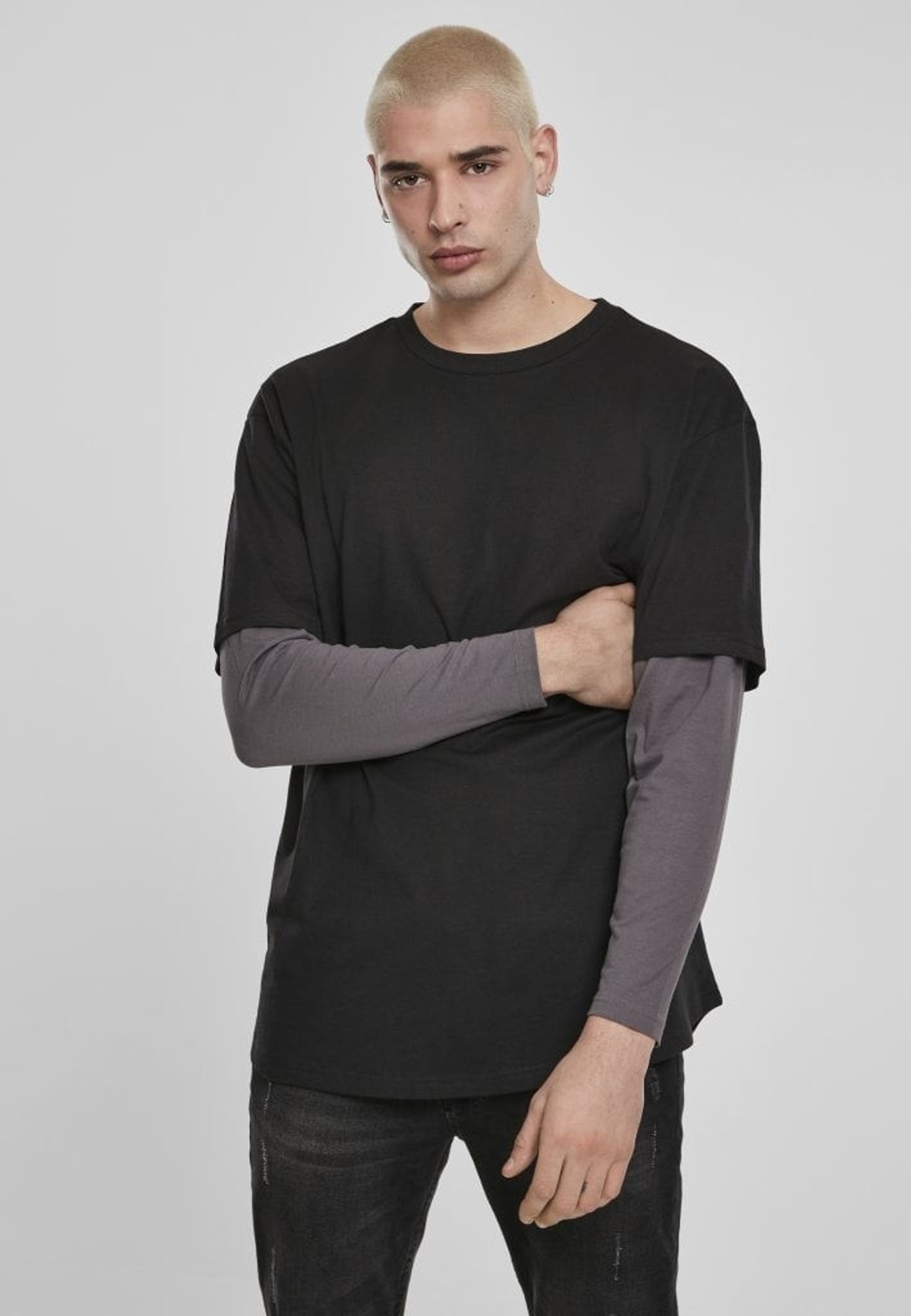 Här får du två i en tröja. En svart T-shirt med en longsleeve under vars ärmar sticker ut under T-shirten.