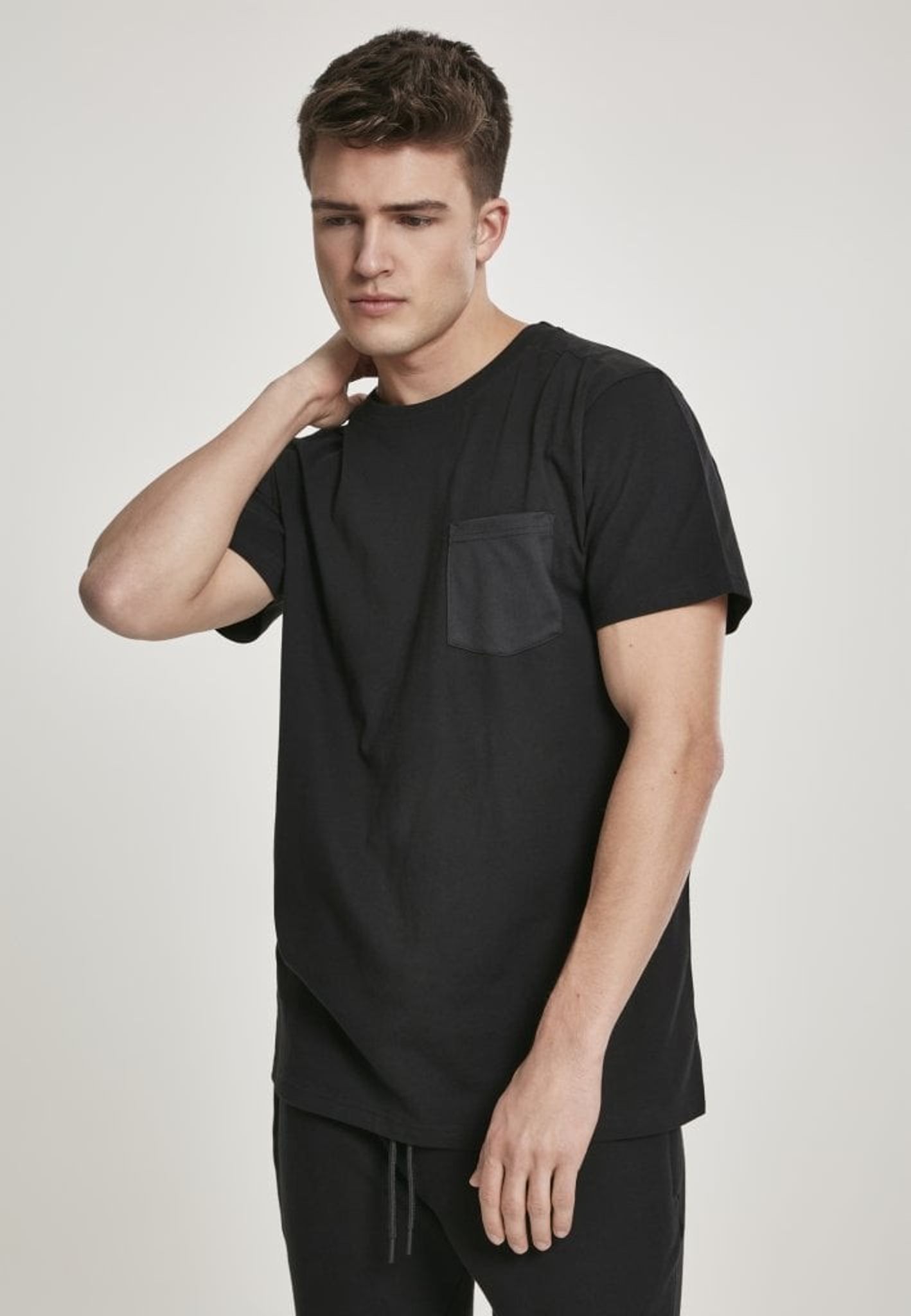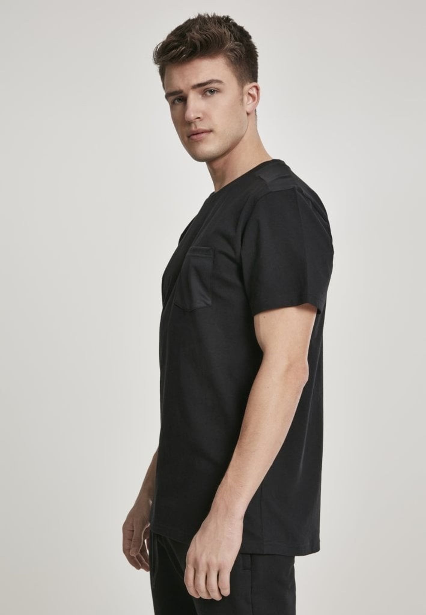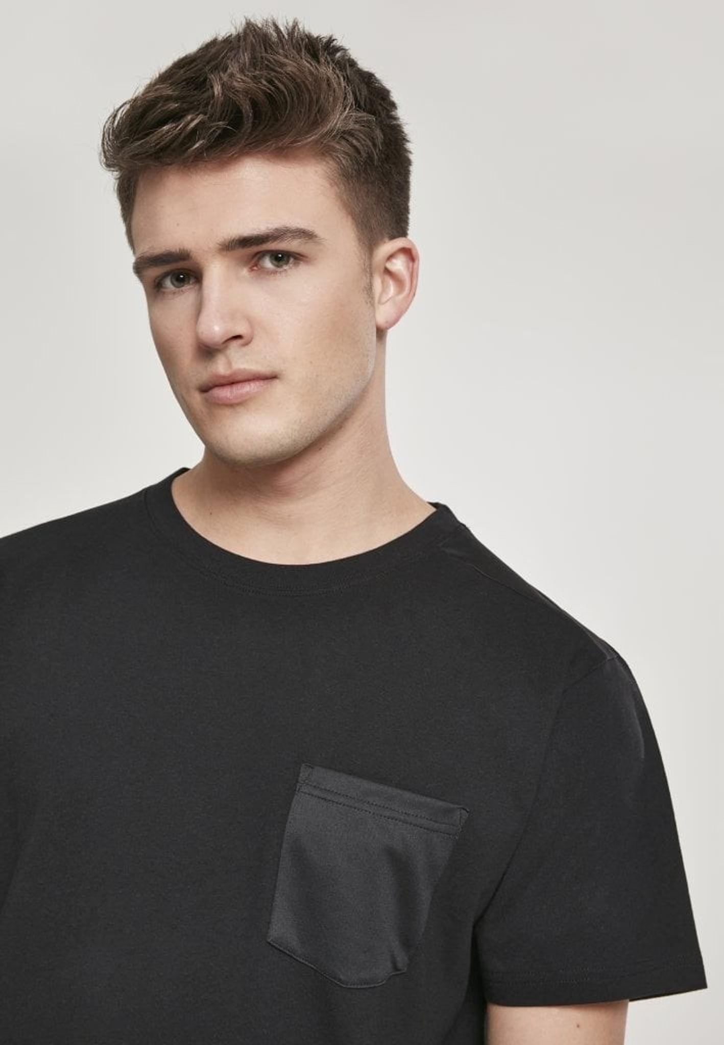 En stilren T-shirt i svart bomullstyg men med en bröstficka i polyestertyg. Bröstfickan lyfter T-shirten och ger det där lilla extra på en annars vanlig T-shirt.