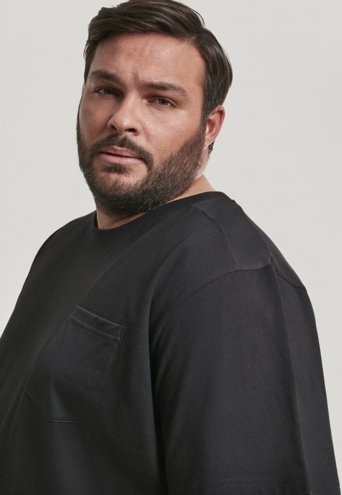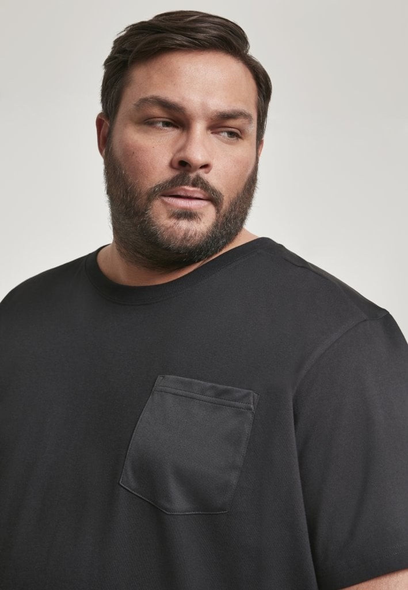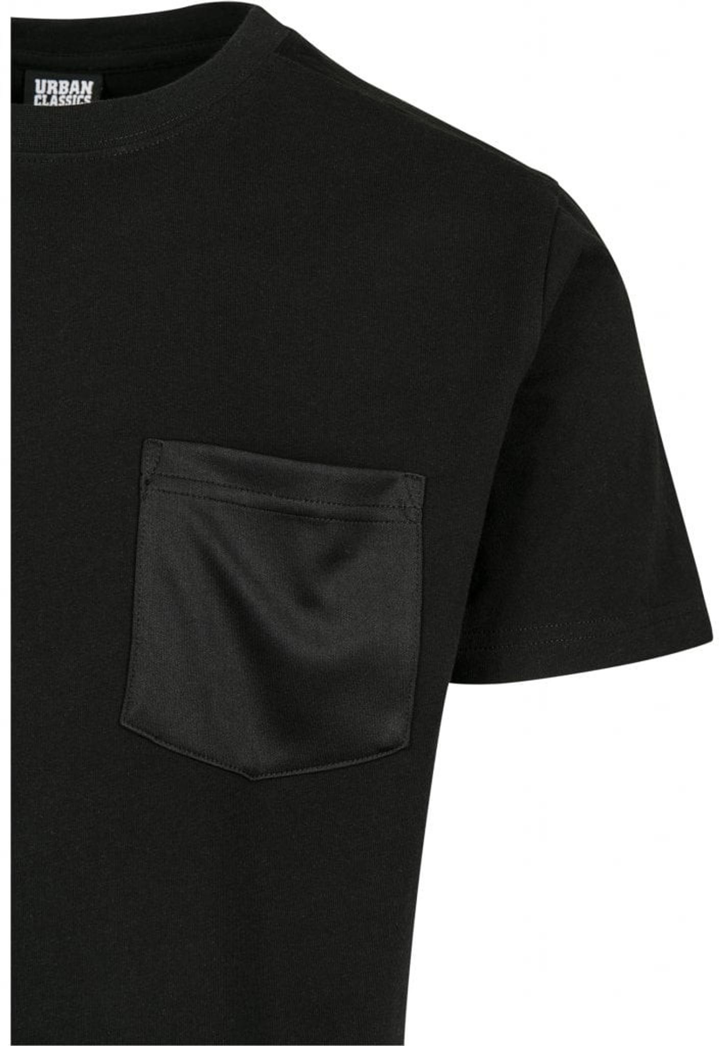 En stilren T-shirt i svart bomullstyg men med en bröstficka i polyestertyg. Bröstfickan lyfter T-shirten och ger det där lilla extra på en annars vanlig T-shirt.