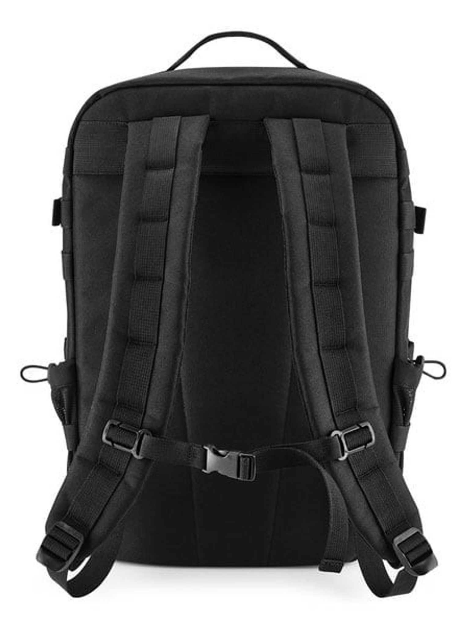 MOLLE-systemet med fästöglor ger dig möjlighet att enkelt fästa ytterligare förvaringsalternativ och moduler, vilket gör att du kan anpassa ryggsäcken efter dina specifika behov. Den stora huvudfacket har ett vadderat laptopfack som rymmer enheter upp till 17". Förutom huvudfacket finns tre stora framfickor med dragkedja, inklusive ett frontfack med full Rip-Strip™ för patches. Under detta frontfack finns ytterligare ett större frontfack med interna meshfickor, samt ett stort fack för större packning.