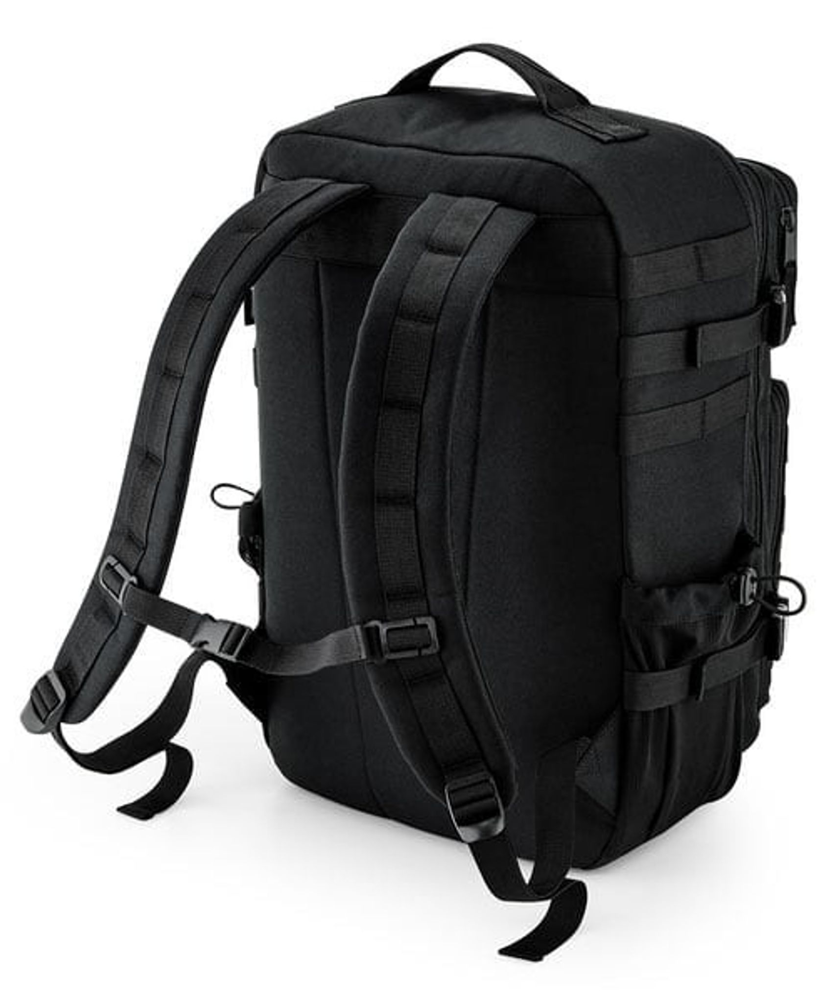 MOLLE-systemet med fästöglor gör det enkelt att fästa ytterligare förvaringsalternativ och moduler, vilket ger dig möjlighet att anpassa ryggsäcken efter dina specifika behov. Det stora huvudfacket har ett vadderat laptopfack som rymmer enheter upp till 17". Förutom huvudfacket finns tre stora framfickor med dragkedja, inklusive ett frontfack med full Rip-Strip™ för patches. Under detta frontfack finns ytterligare ett lite större frontfack med interna meshfickor, samt ett stort fack för större packning.