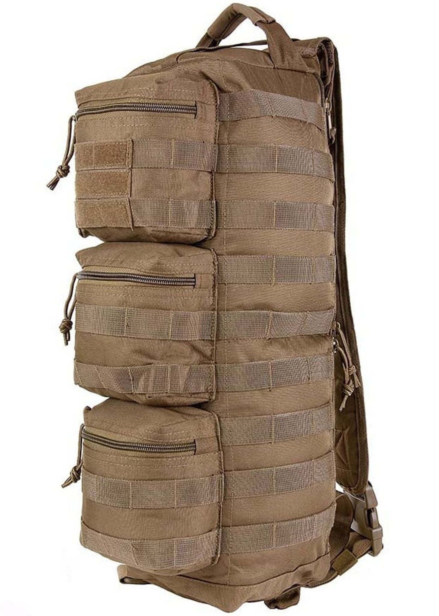 Väskan är utrustad med MOLLE-system, vilket gör det möjligt att fästa extra fickor och tillbehör för att anpassa bagens kapacitet efter behov. Den har tre Velcro-fack inuti, vilket ger bra organisering av mindre föremål, samt tre separata förvaringsfack på framsidan för enkel åtkomst till viktiga saker.