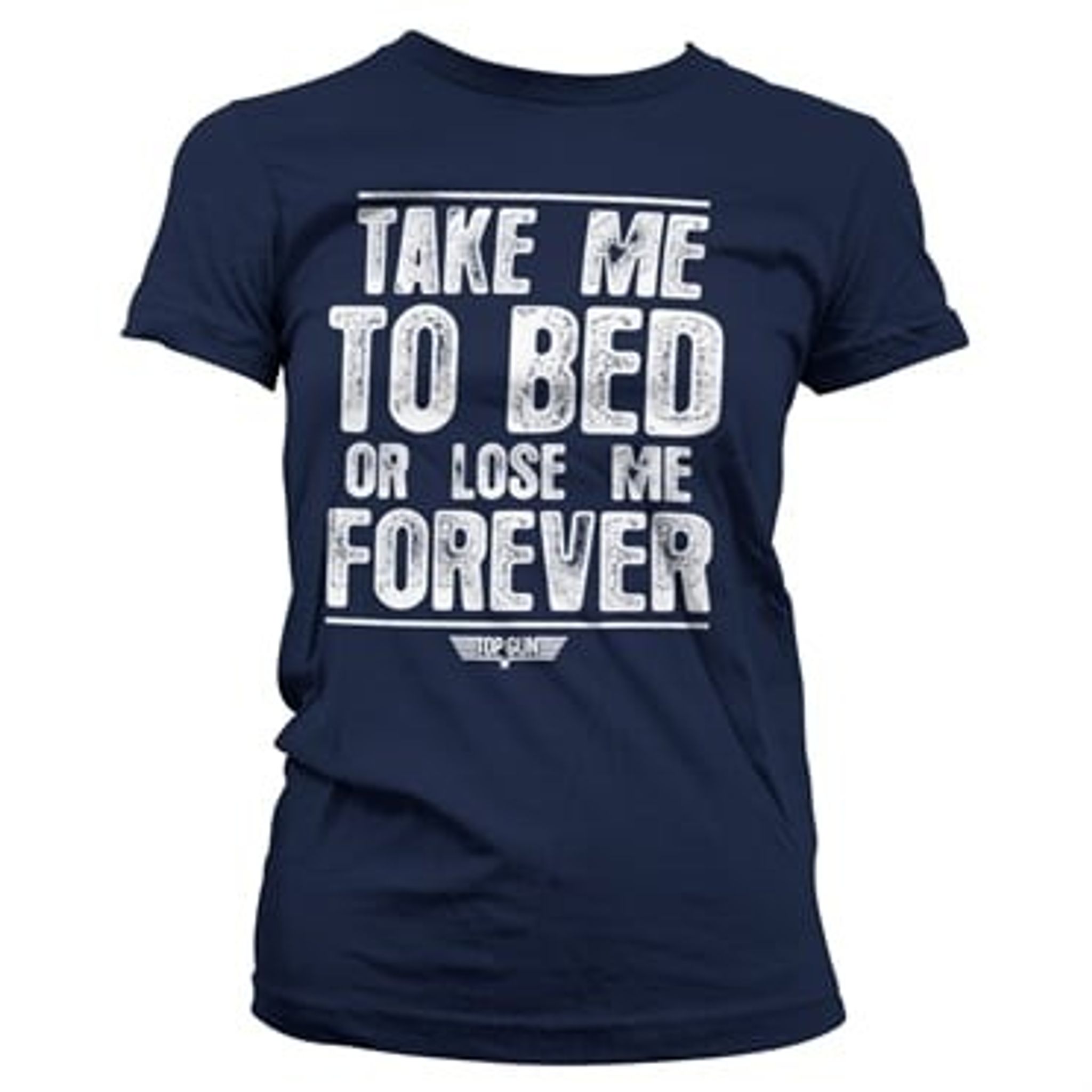 T-shirt i tjejmodell med det kända citatet "Take me to bed or lose me forever" från den klassiska 80-talsfilmen Top Gun.