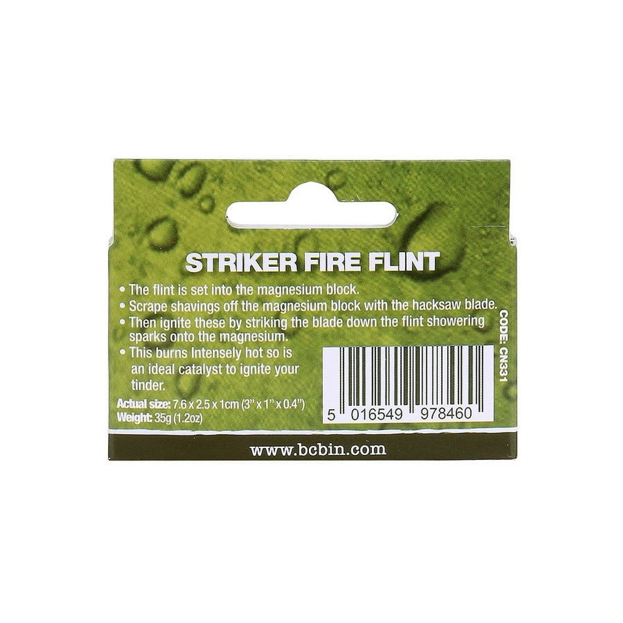 Traditionell flinta fästs vid en magnesiumblock, vilket gör den till en oumbärlig komponent för att tända eld. Produkten väger 40 gram och är tillverkad av BCB.
