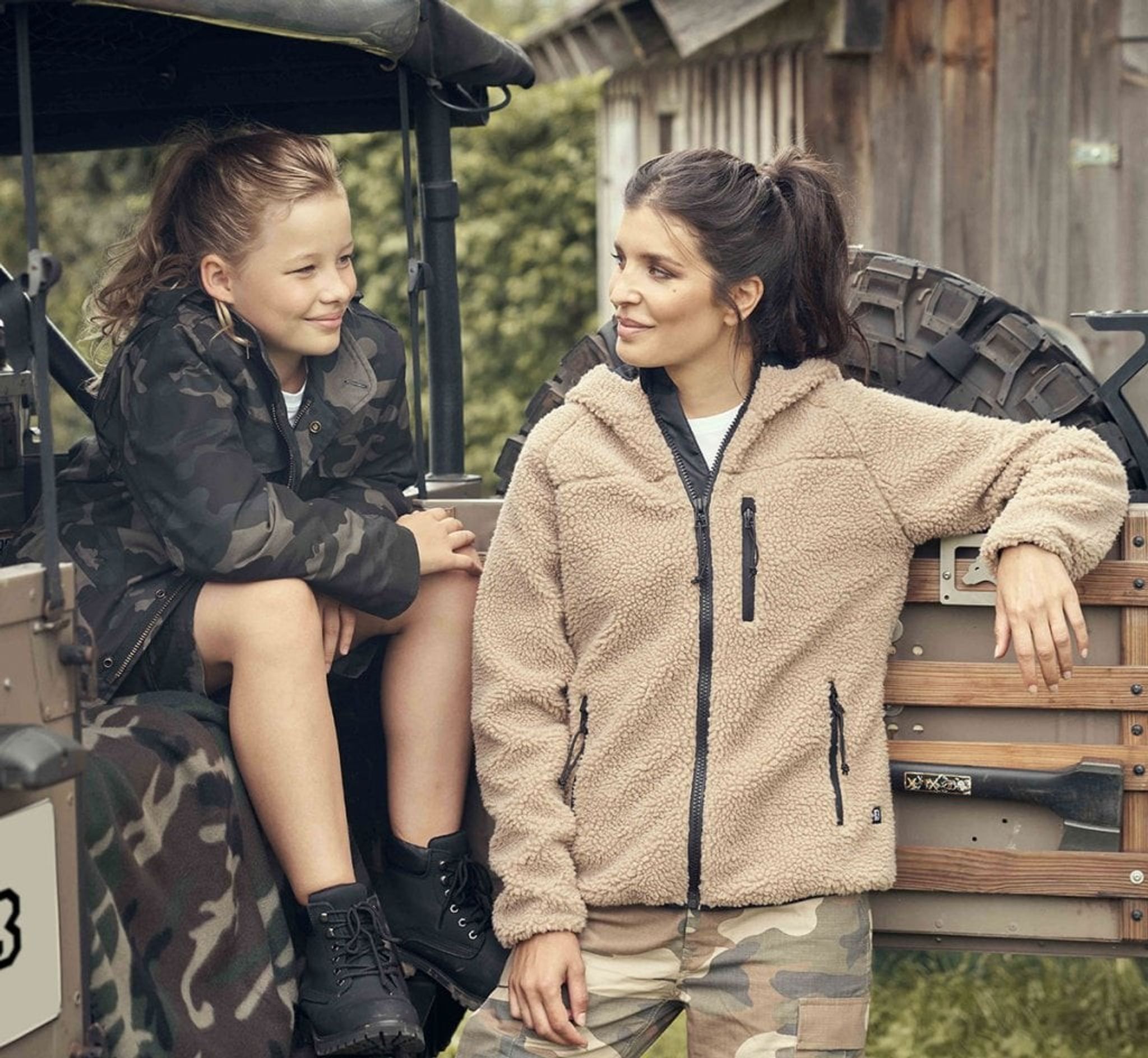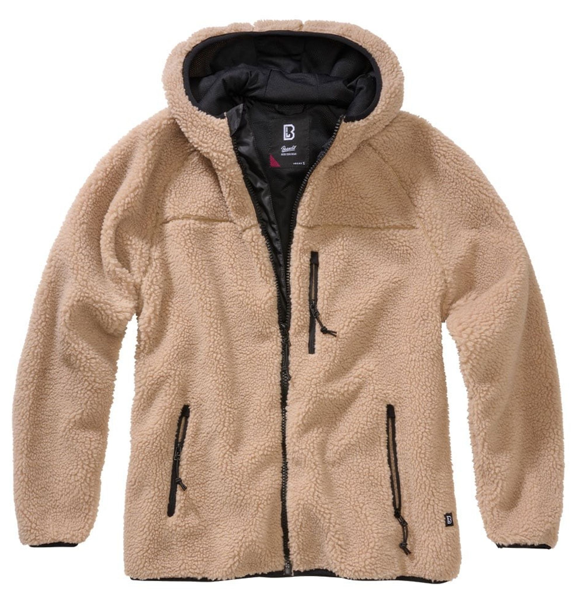 En ljus zipjacka i mysig teddyfleece. Jackan är på insidan klädd i ett svart meshfoder med god andningsförmåga. Jackans ärmslut och midja är försedd med elastiska band. Den stora huvan har dragsko och dragkedjan går att stänga hela vägen upp till hakan.