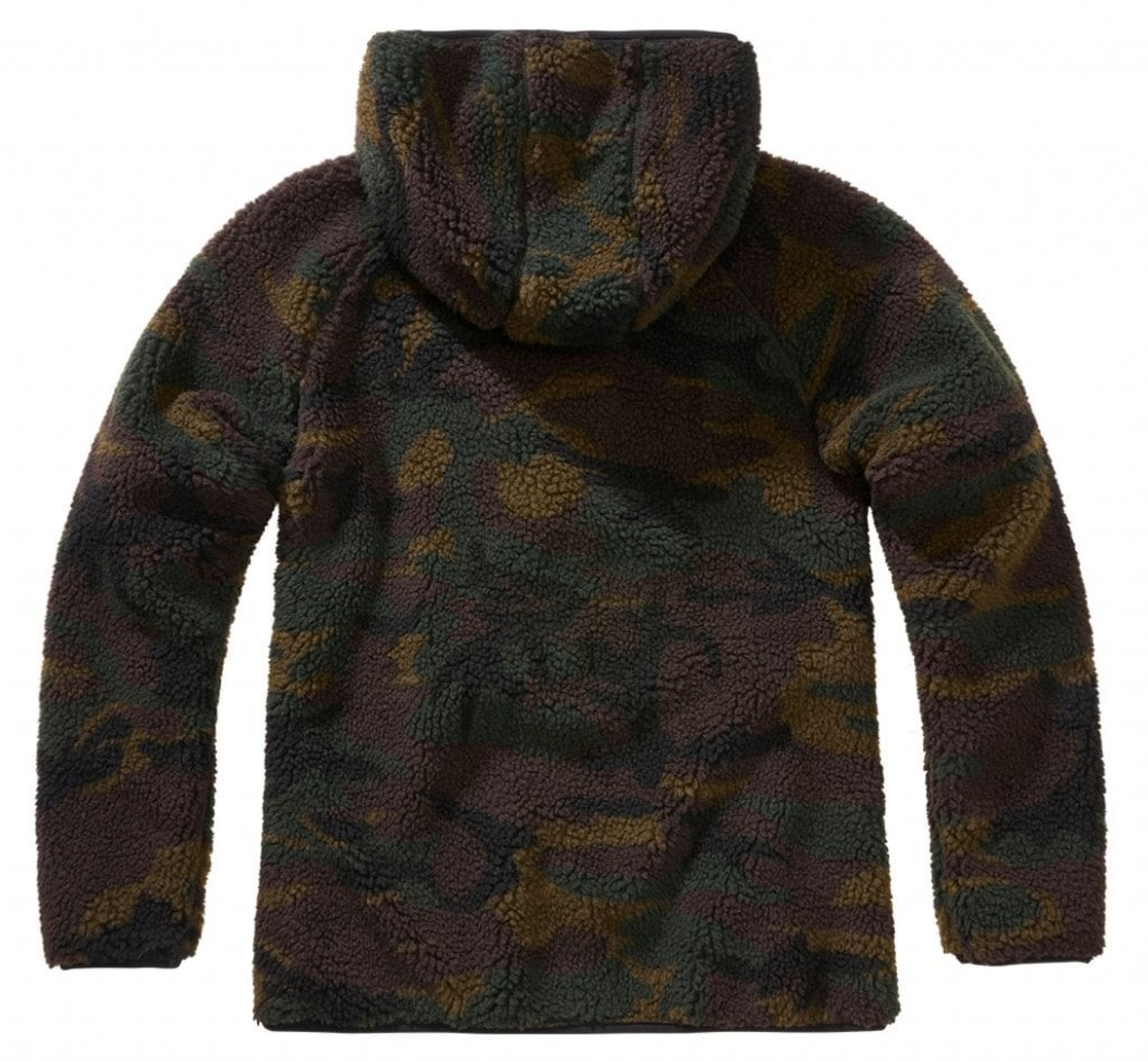 En varm zipjacka i teddyfleece och ett diskret woodland-kamouflage. Jackan är försedd med en bröstficka, två sidofickor och en innerficka. Huvan är rymlig och går att knäppa hela vägen upp till hakan, vilket ger optimal isolering mot kroppen.