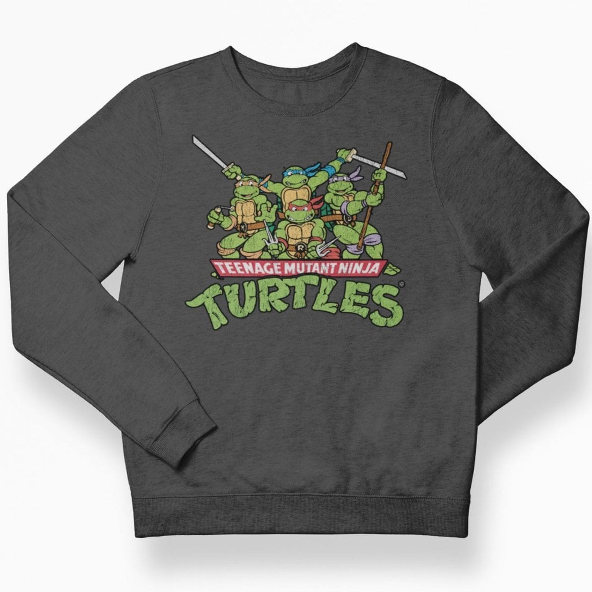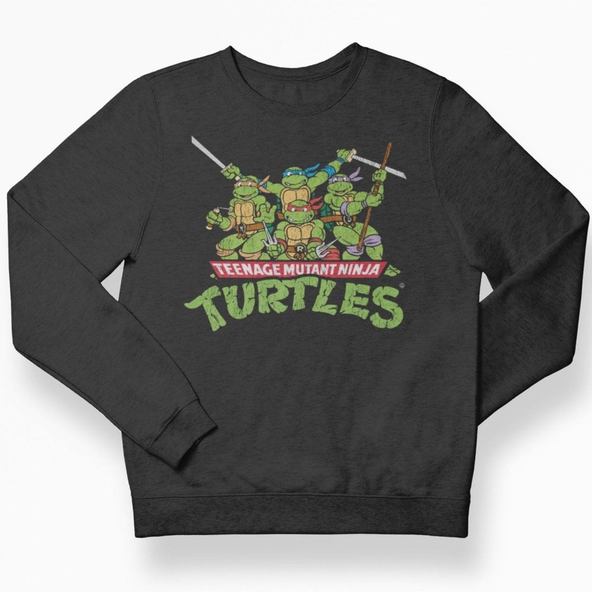 Teeange Mutant Ninja Turtles Distressed Group barn sweatshirt.