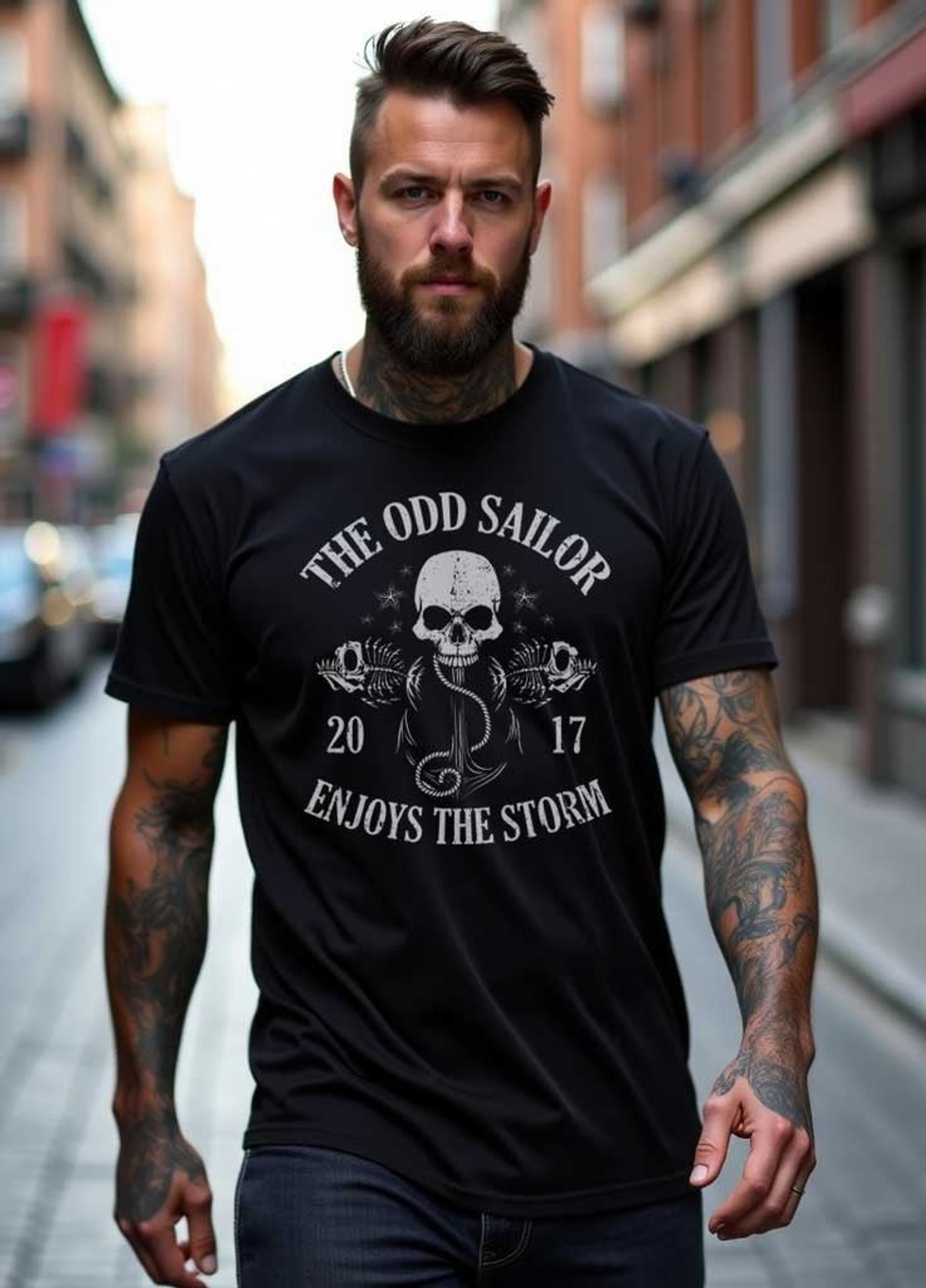The Odd Sailor T-shirt är ett utmärkt val för den som vill ha en kombination av klassisk stil och rock'n'roll-attityd, perfekt för både vardagsbruk och speciella tillfällen.