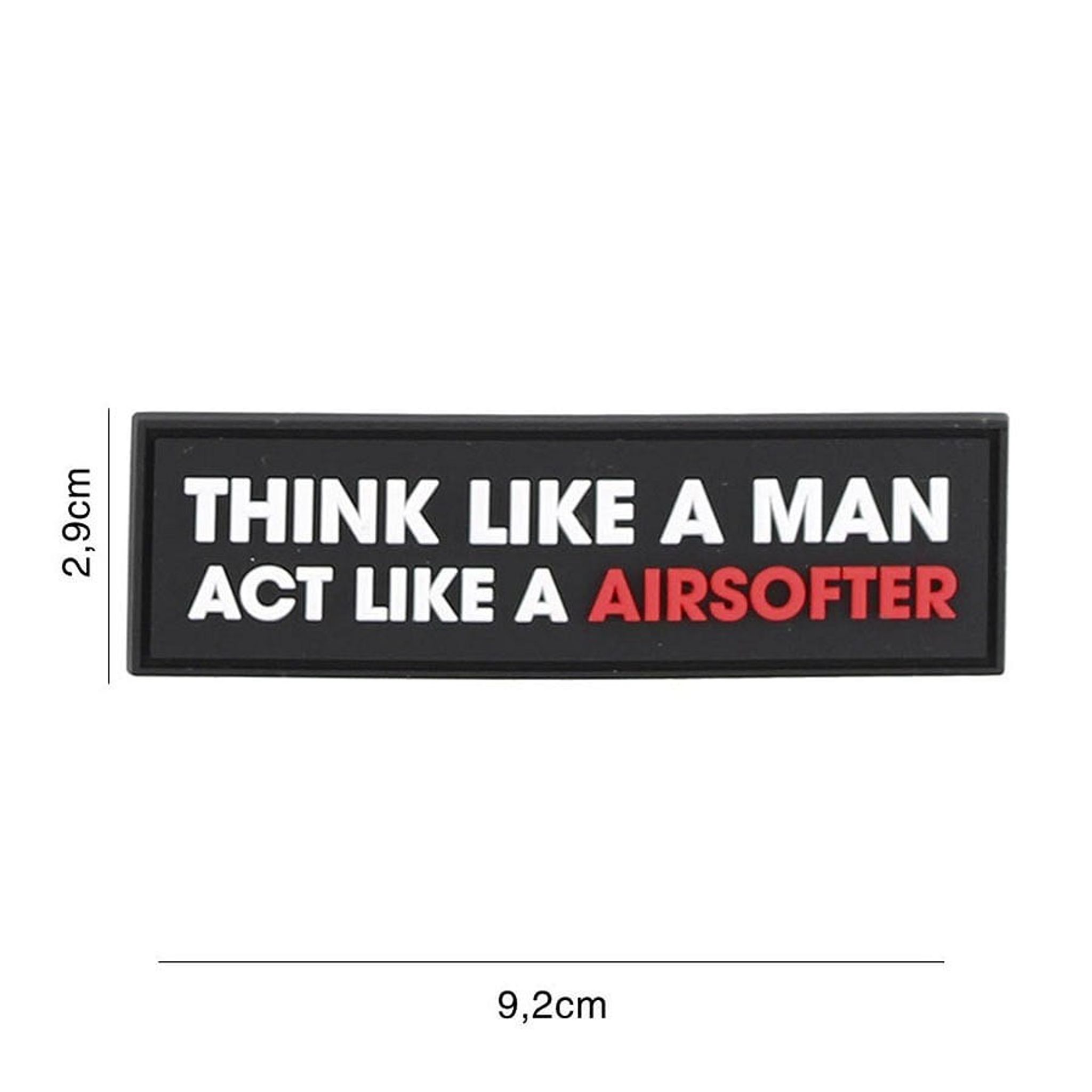 För airsoftentusiasten som tar spelet på allvar presenterar vi "Think Like a Man - Act Like an Airsofter" PVC Patch.