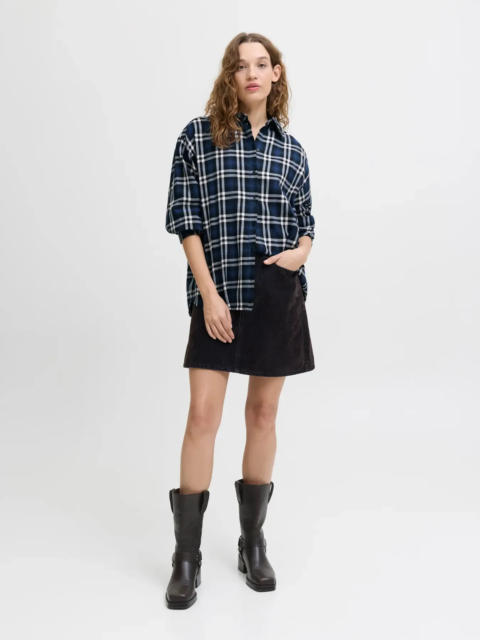 Skjortan har en avslappnad passform som ger rörelsefrihet och en bekväm känsla. De nedhasade axlarna bidrar till en modern silhuett som passar många olika kroppstyper.