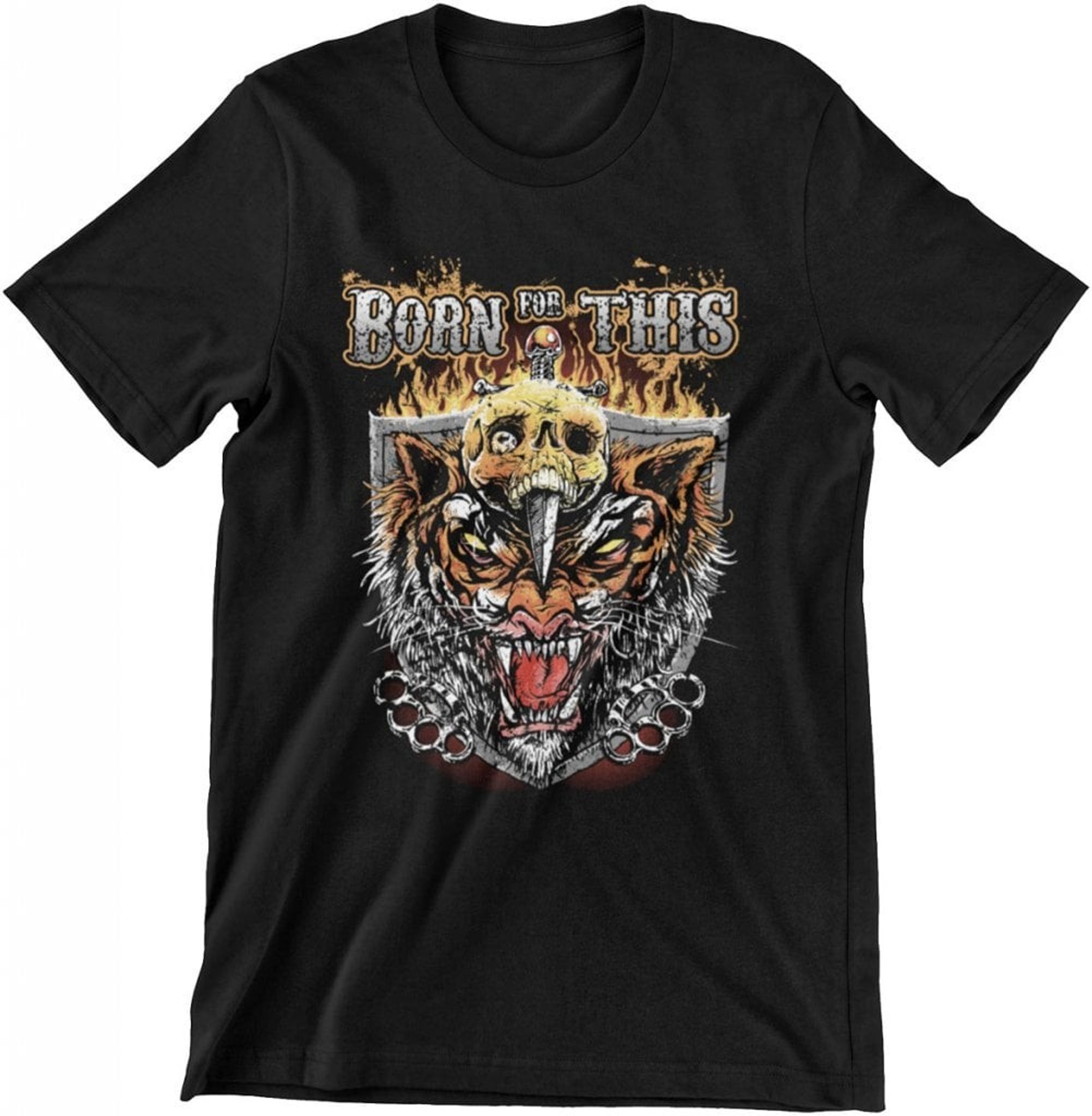 En grym T-shirt från märket New Rocker med en stor sköld med en vrålande tiger och en skalle med en dolk igenom.
