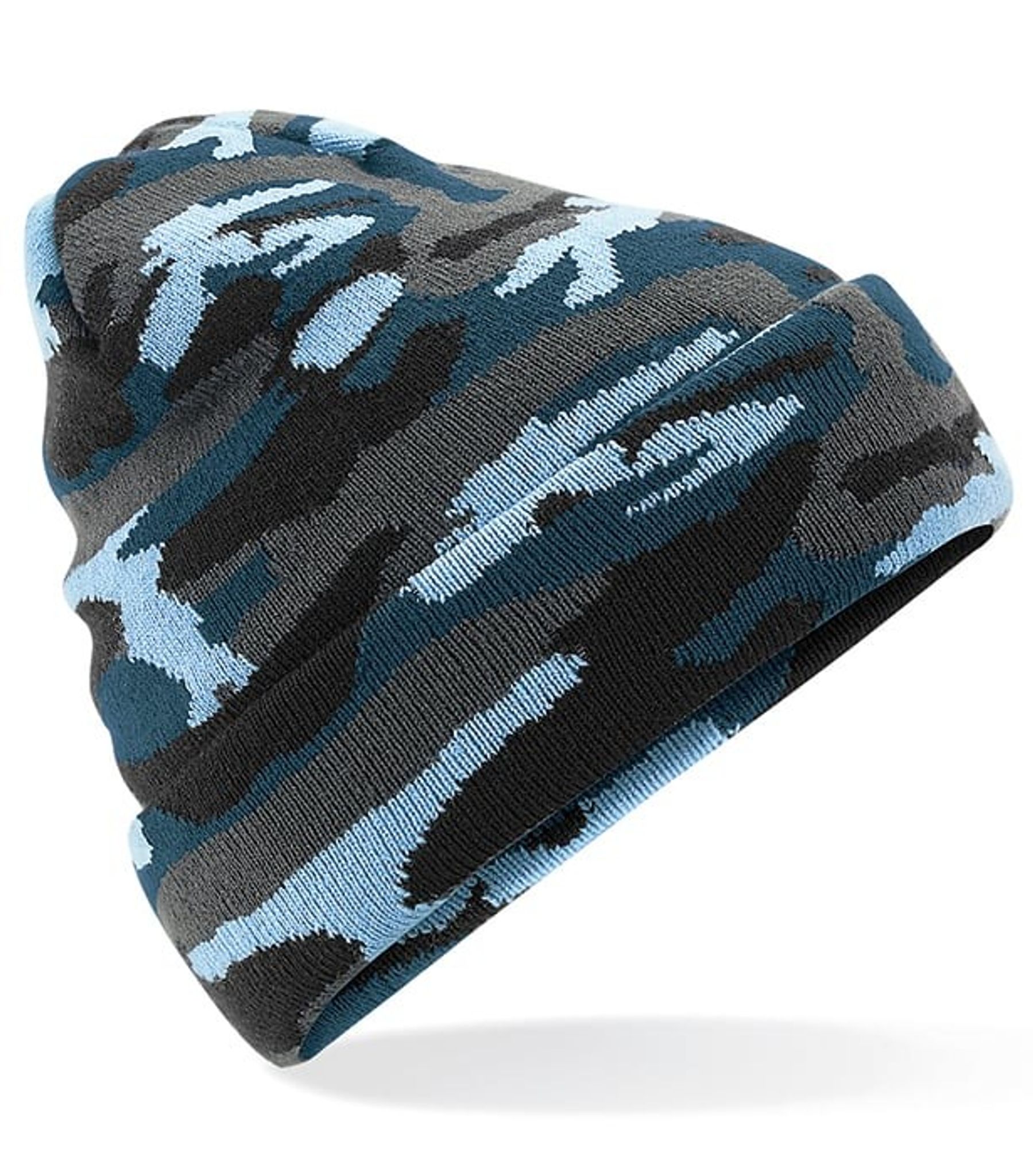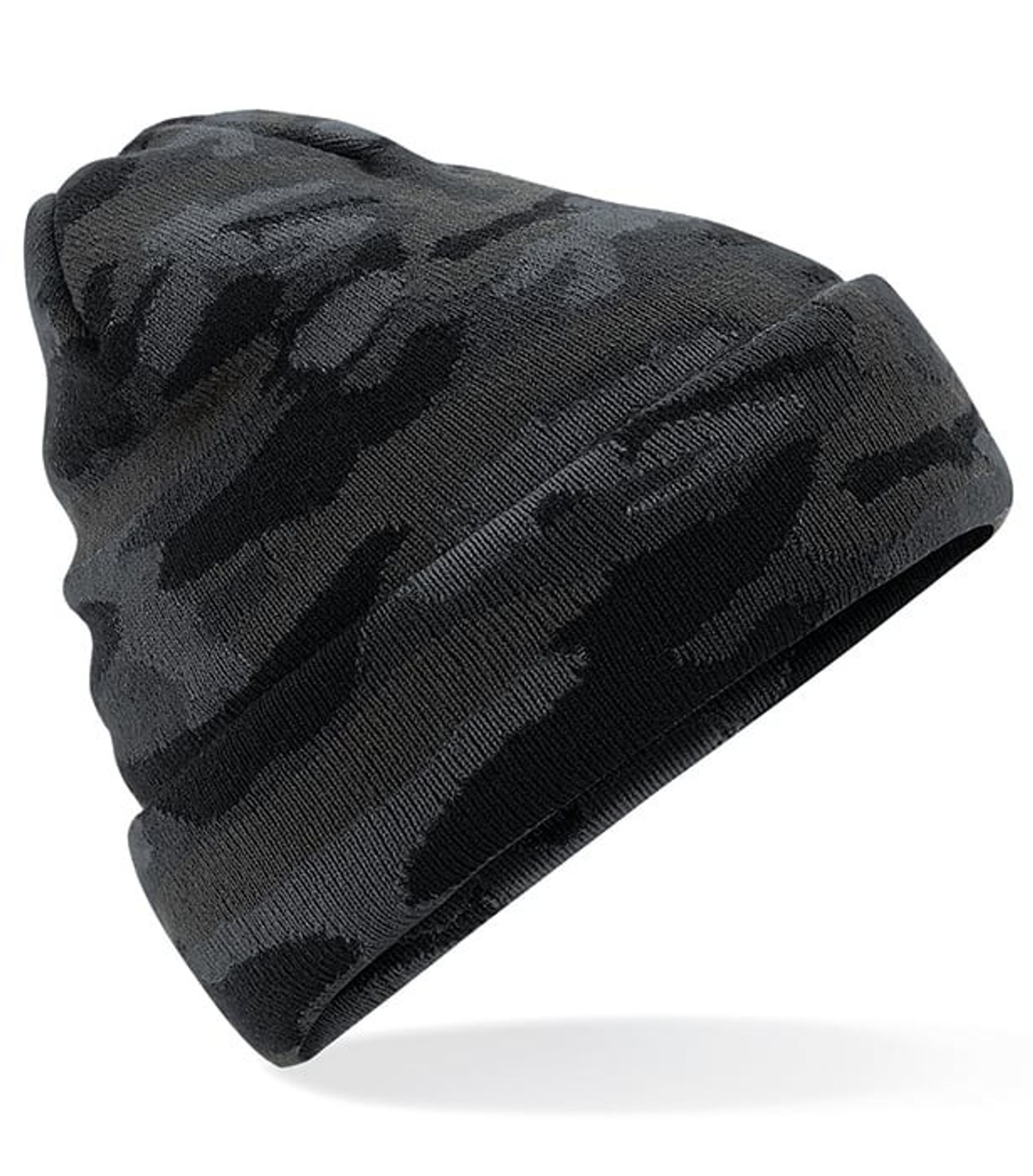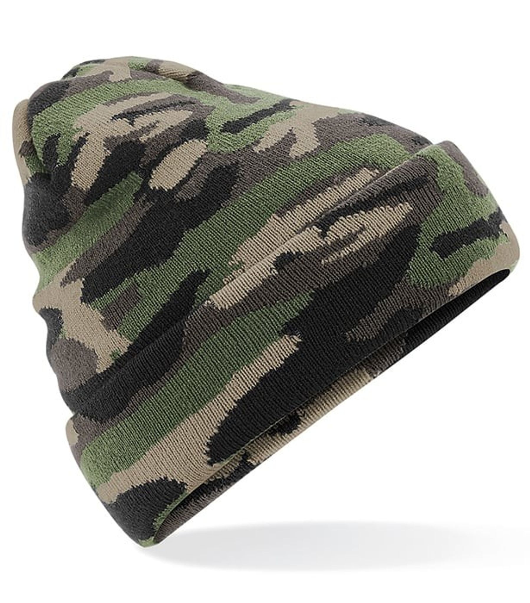 Dubbelstickad mössa med camoflaugemönster. Tillverkad av 100 % akryl, vilket ger en mjuk och varm känsla. Passar alla storlekar, eftersom den är designad för att vara stretchig och bekväm att ha på sig.