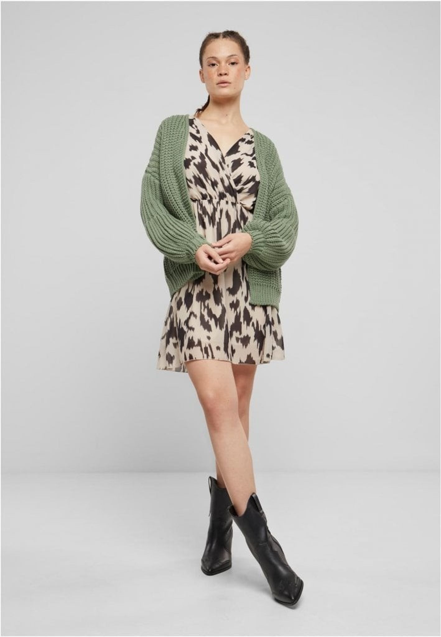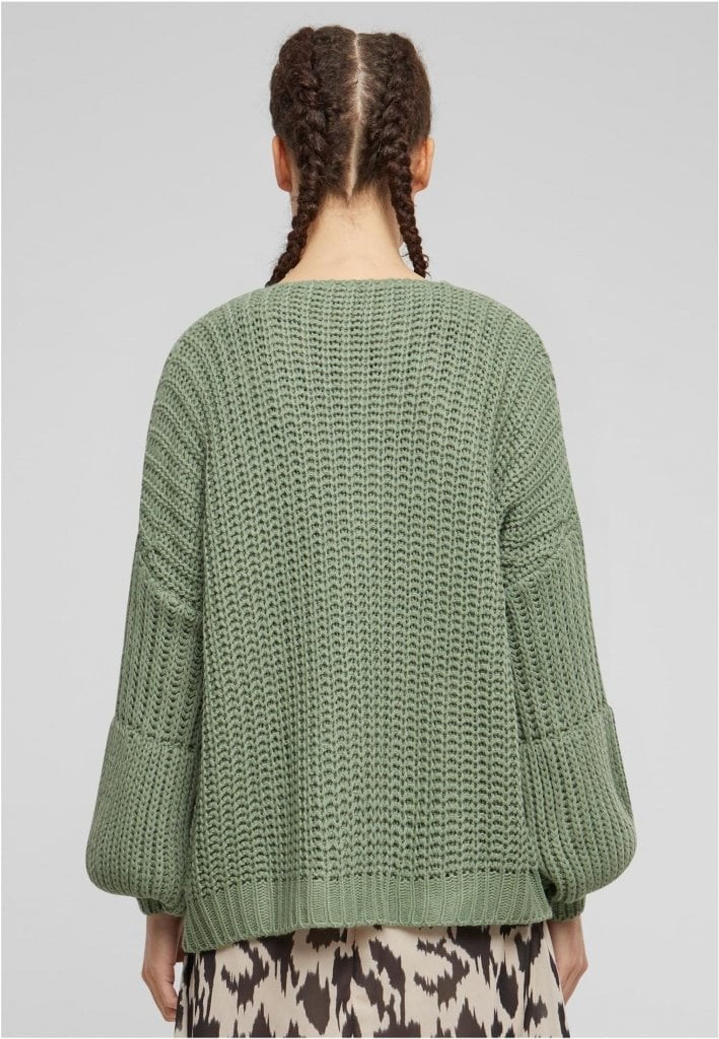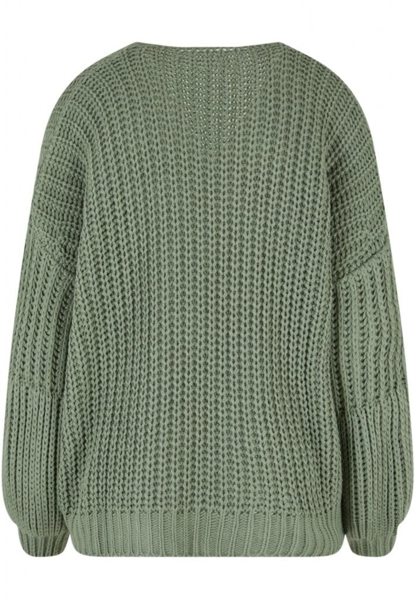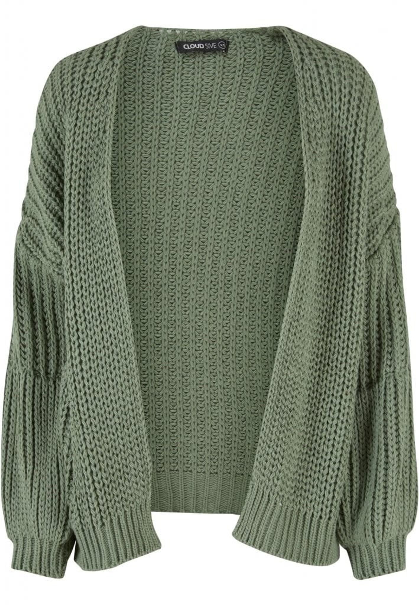 Koftan har en generös passform och överdimensionerade ballongärmar som inte bara ger en trendig silhuett utan också rörelsefrihet och komfort. Den är stickad med en tjock och mysig garn som garanterar värme under kallare dagar, samtidigt som den bibehåller en lätt och luftig känsla tack vare den öppna stickningen.