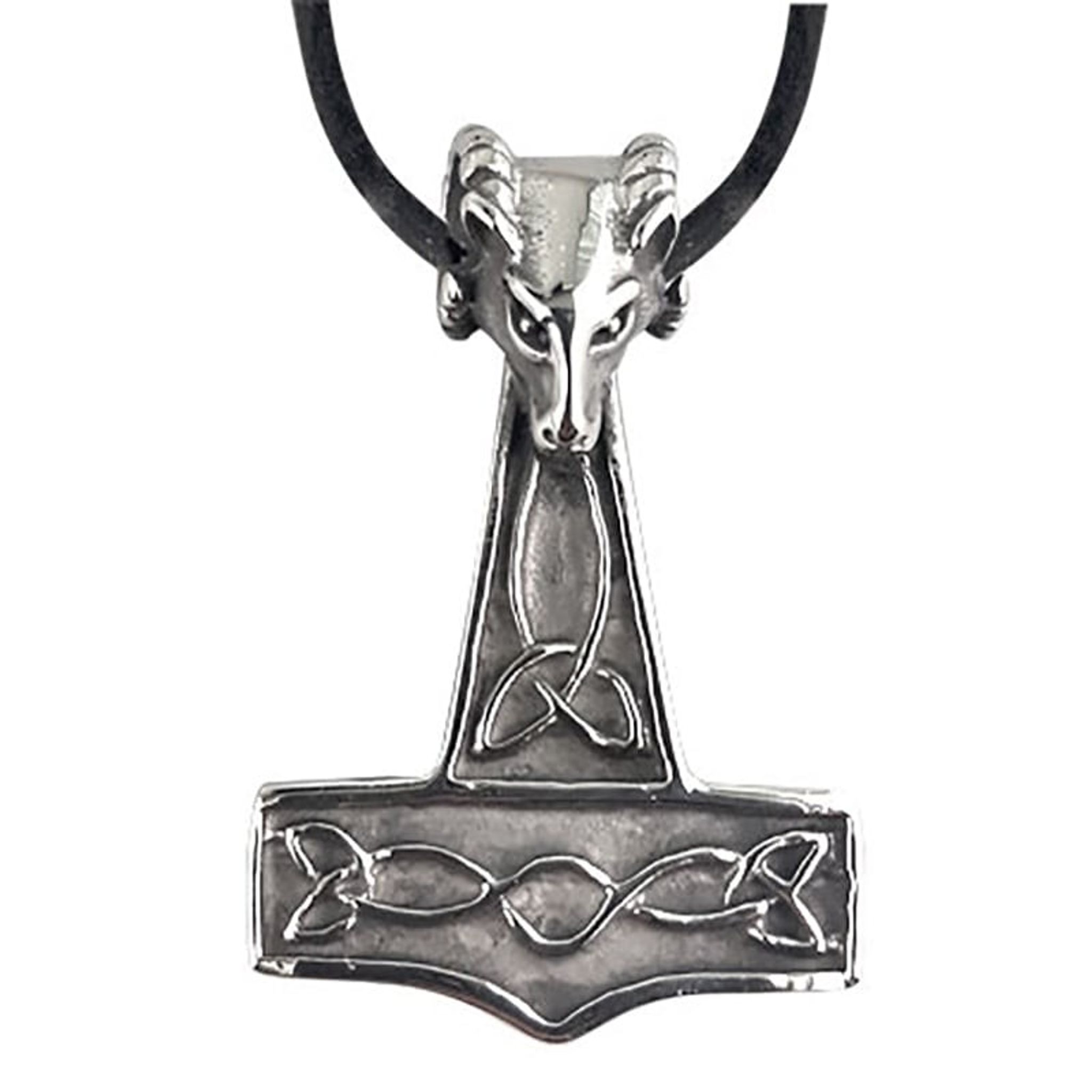 Ett halsband med läderband och en version av Tors hammare i rostfritt stål.