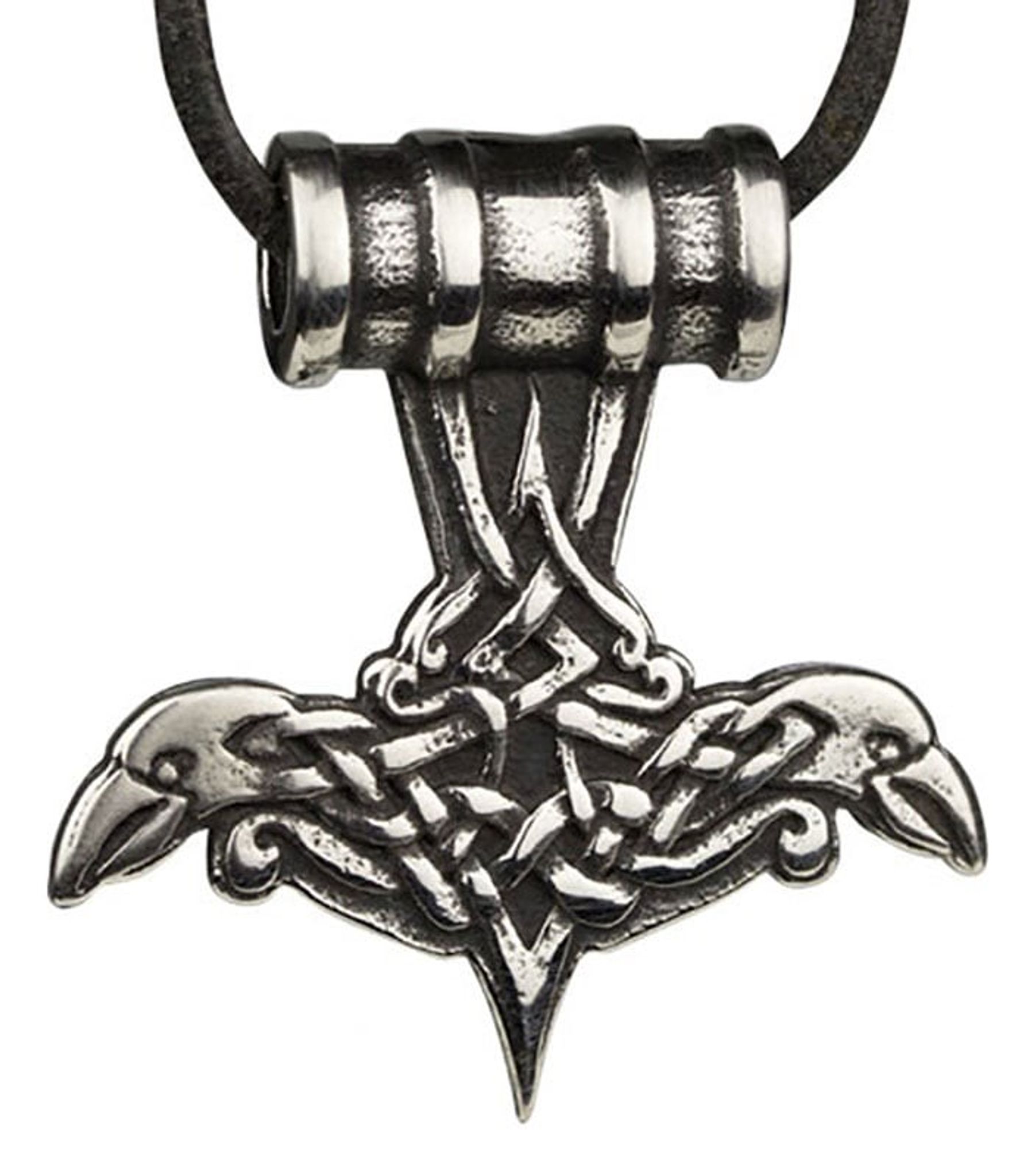 Ett smycke där man kombinerat de två mest klassiska av asagudarna. Allfadern Oden och hans son Tor. Här har man nämligen skapat Tors hammare av två korpar.