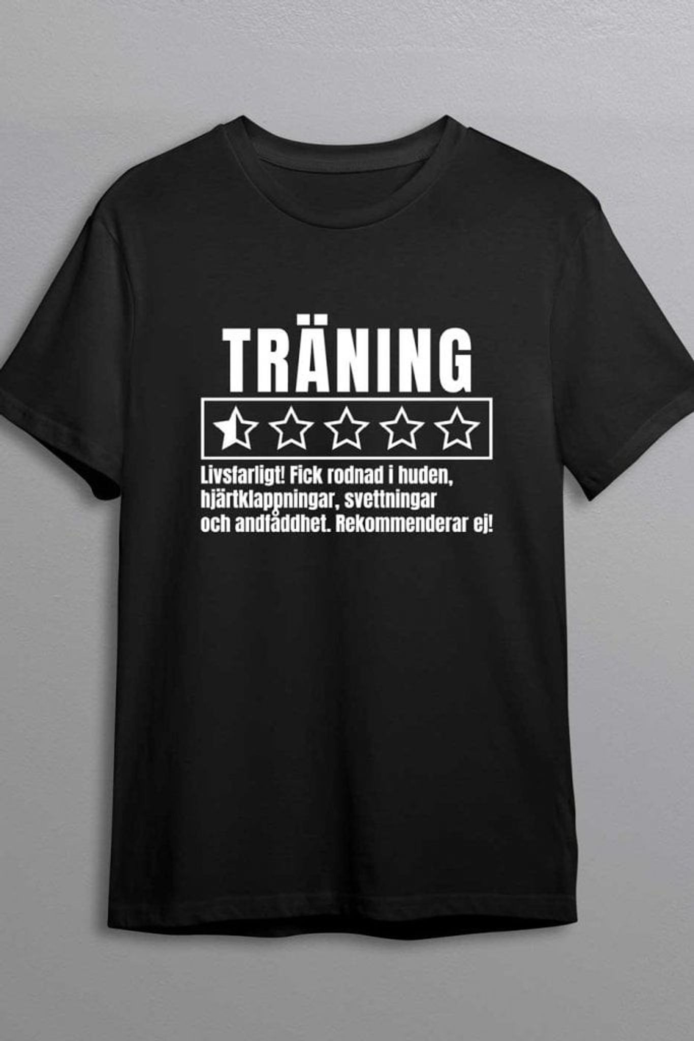 Har du någonsin velat känna dig som en atletisk gud utan att svettas på gymmet? Då är vår "Träning" t-shirt precis vad du behöver! Gjord av 100% viljestyrka (och bomull), kommer denna tee att göra dig till den mest övertygande skrytsamma idrottskännaren, utan att faktiskt behöva känna smaken av gymmets golv.