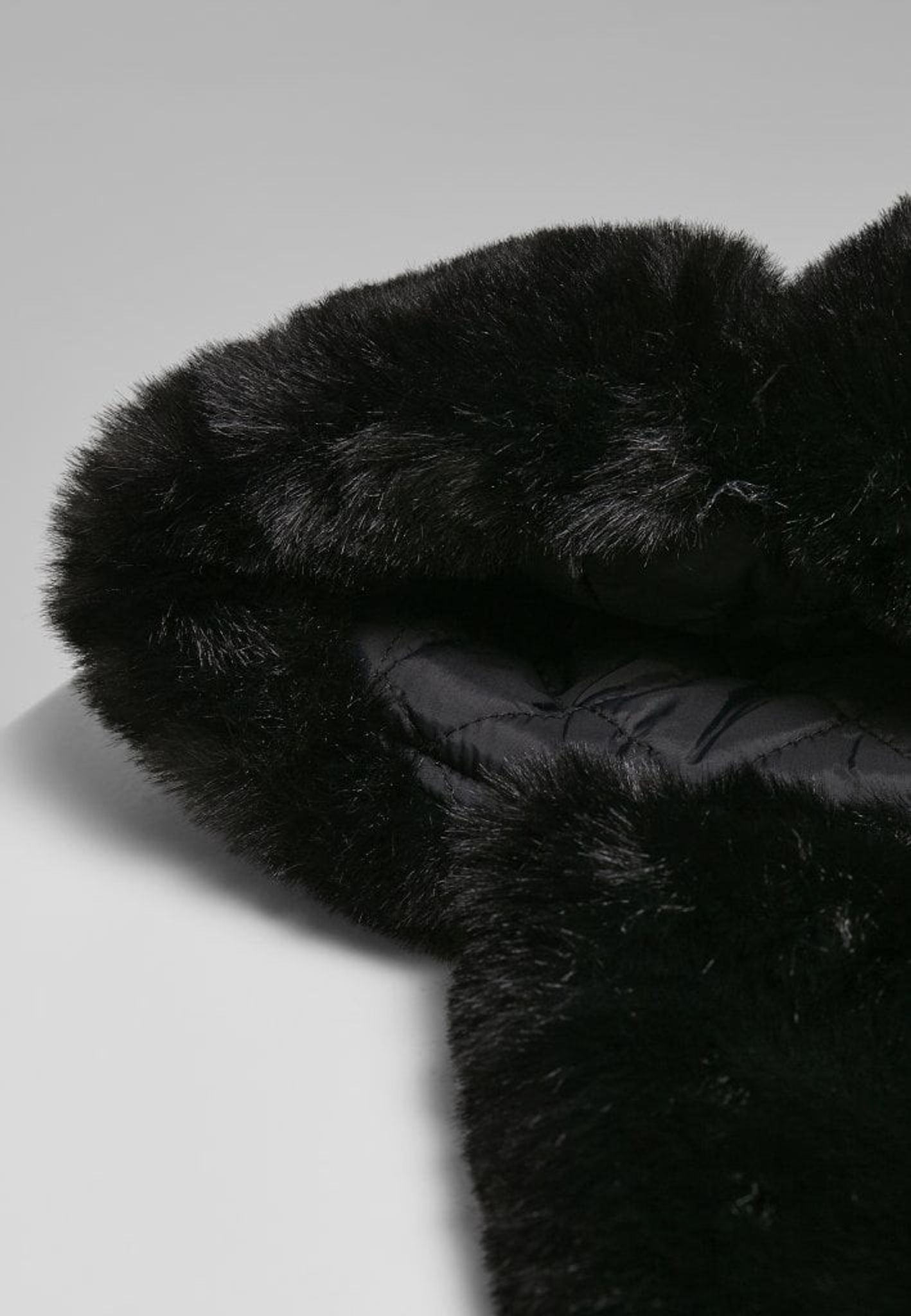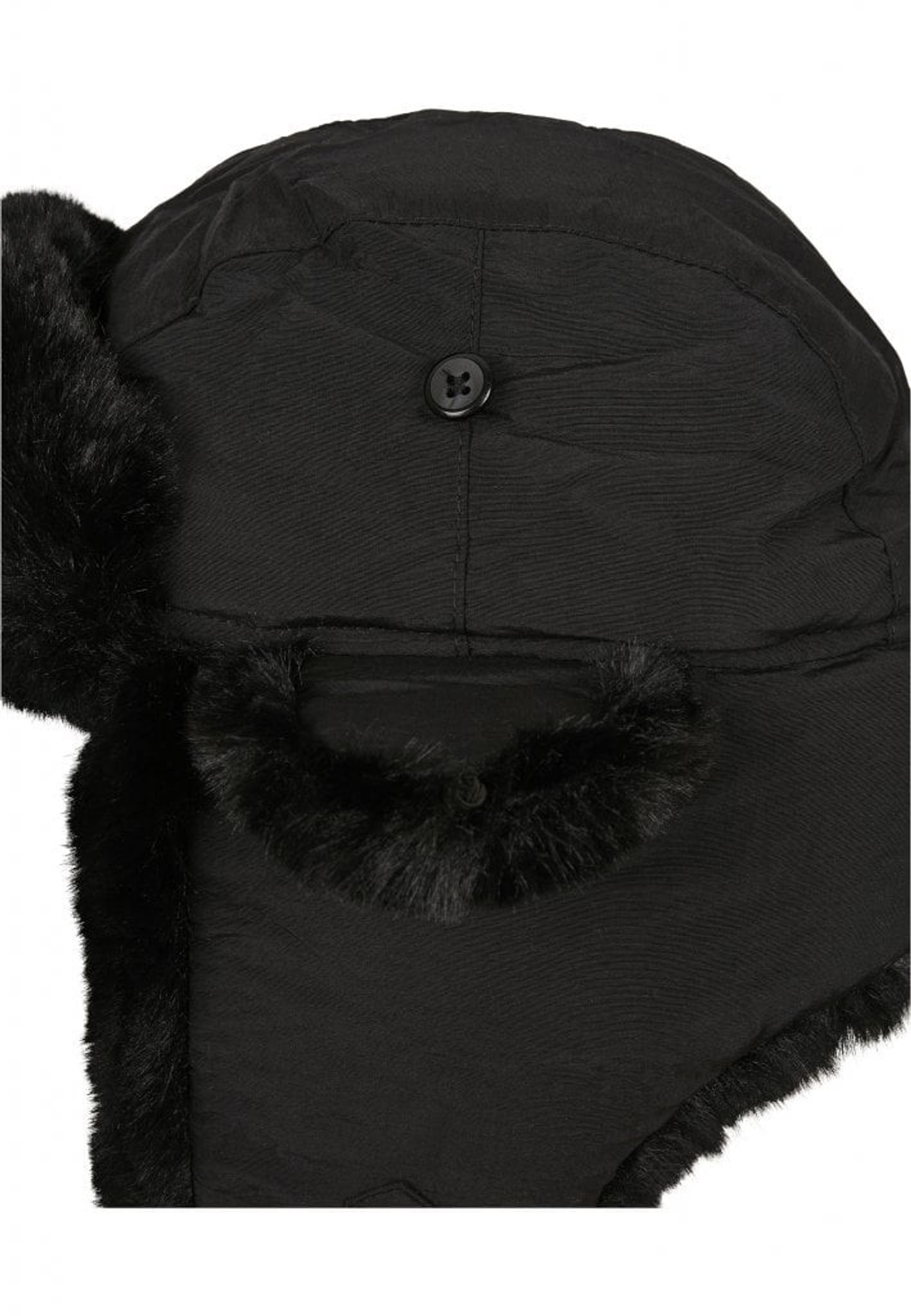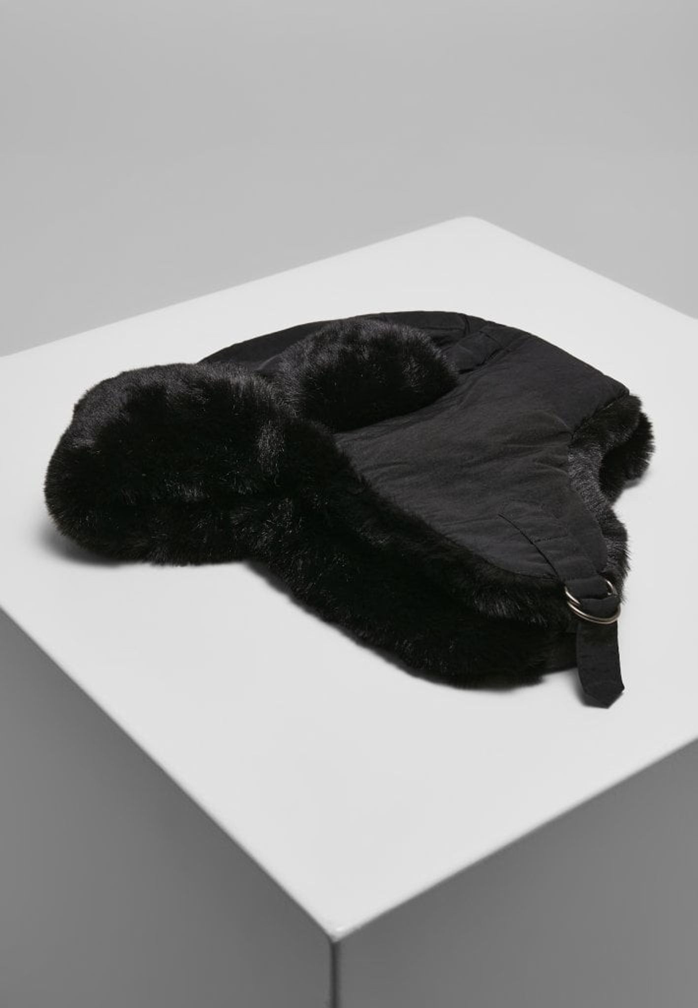 Öronlapparna och skärmen är fodrade i mjuk fuskpäls medan kullen är quiltad.
