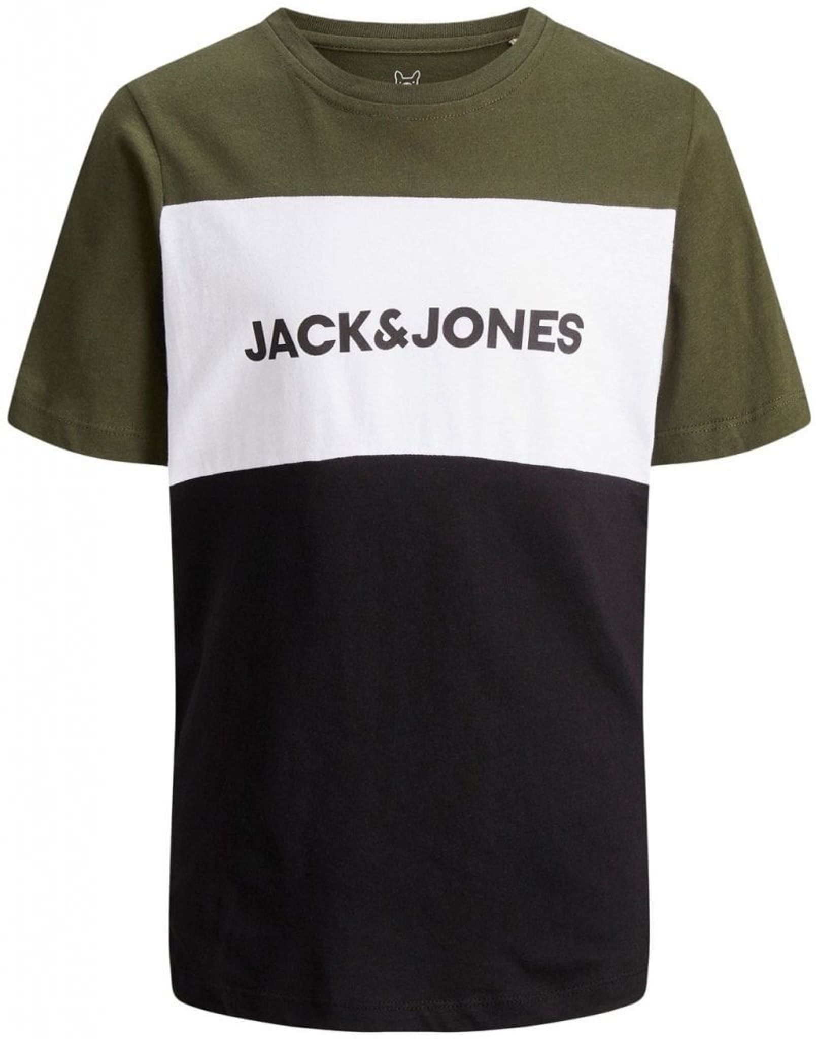 En härlig och snygg T-shirt från Jack And Jones i barnstorlekar. Denna T-shirt går i färgerna oliv/vit och svart med Jack & Jones loggan på bröstet.