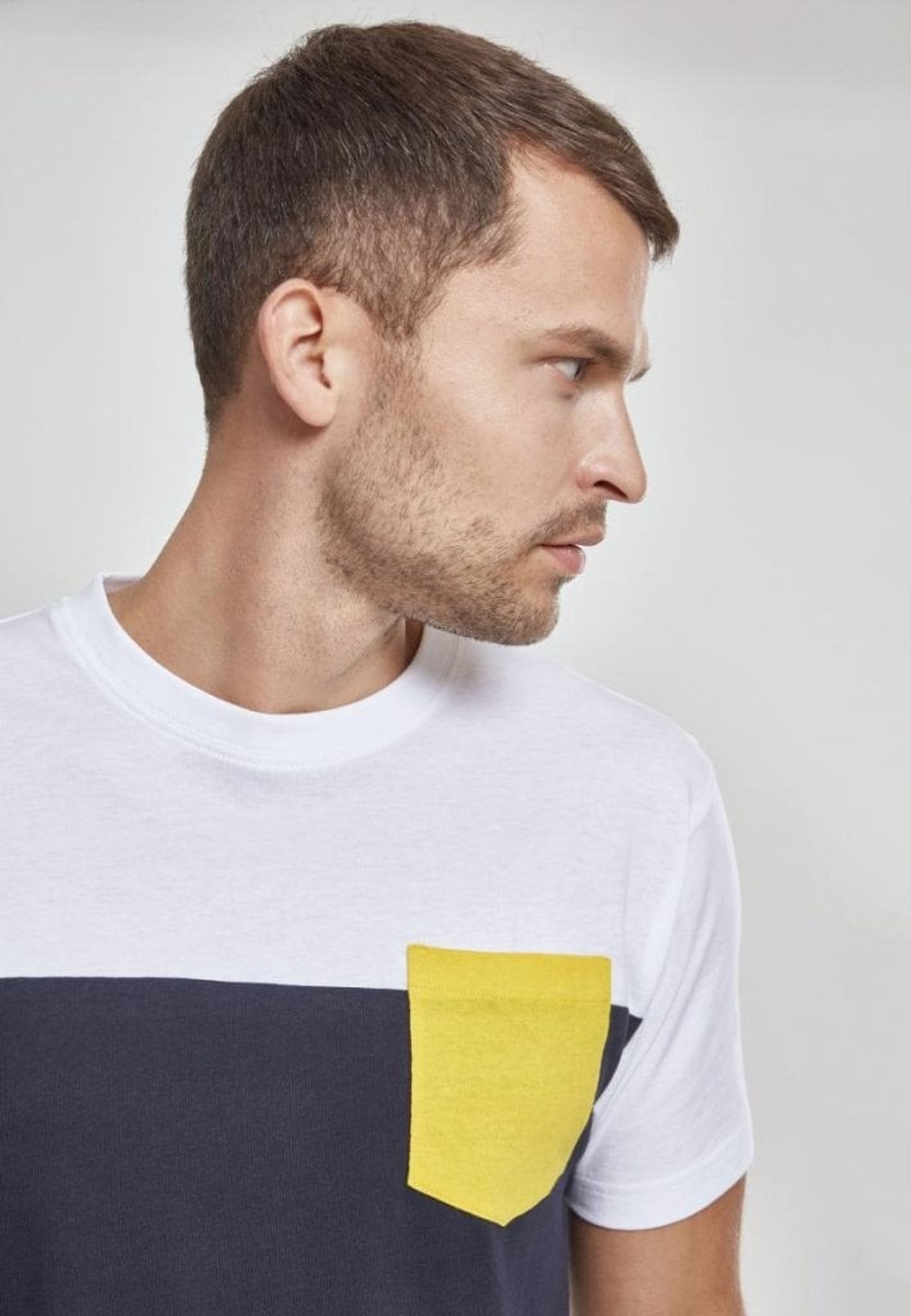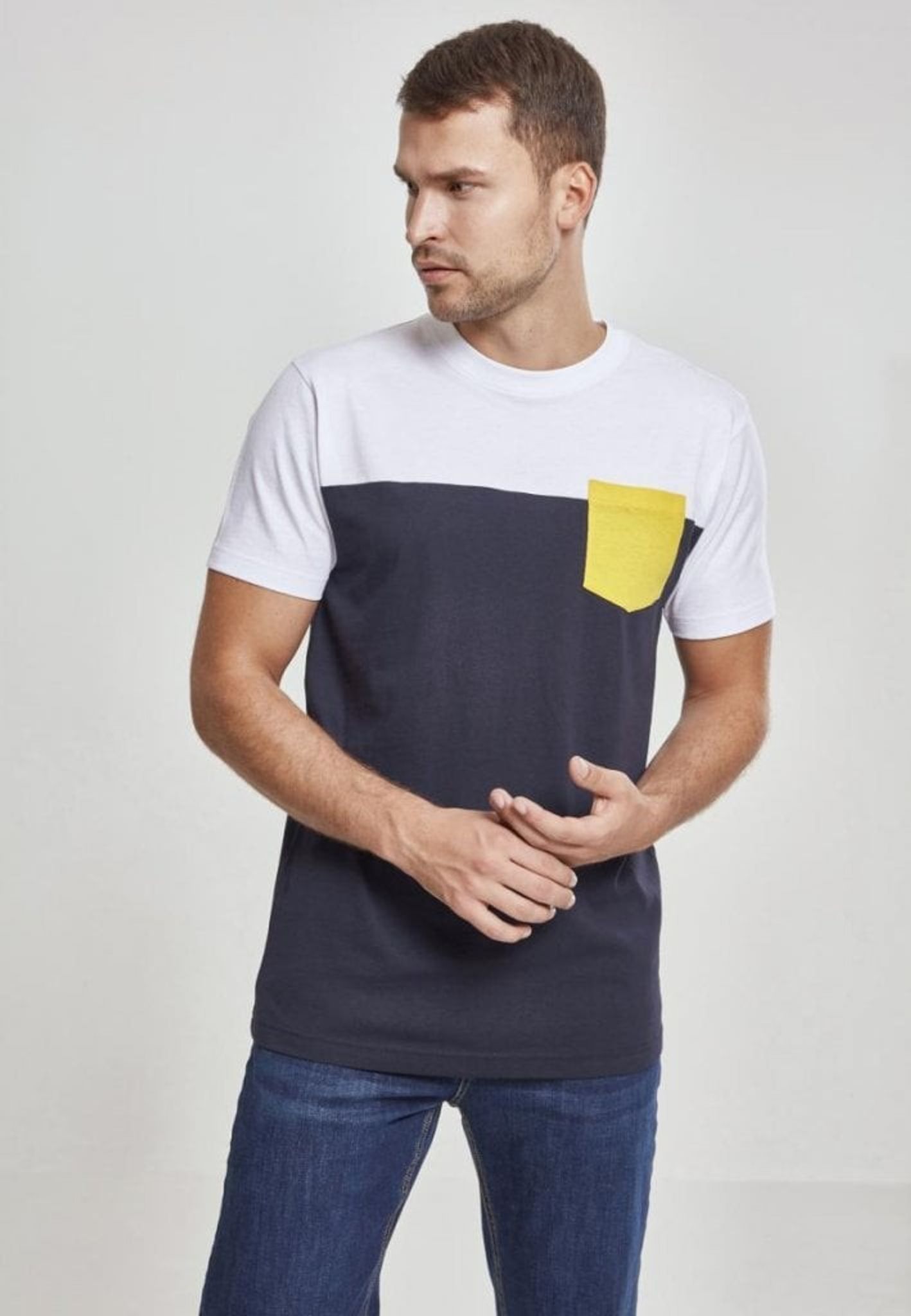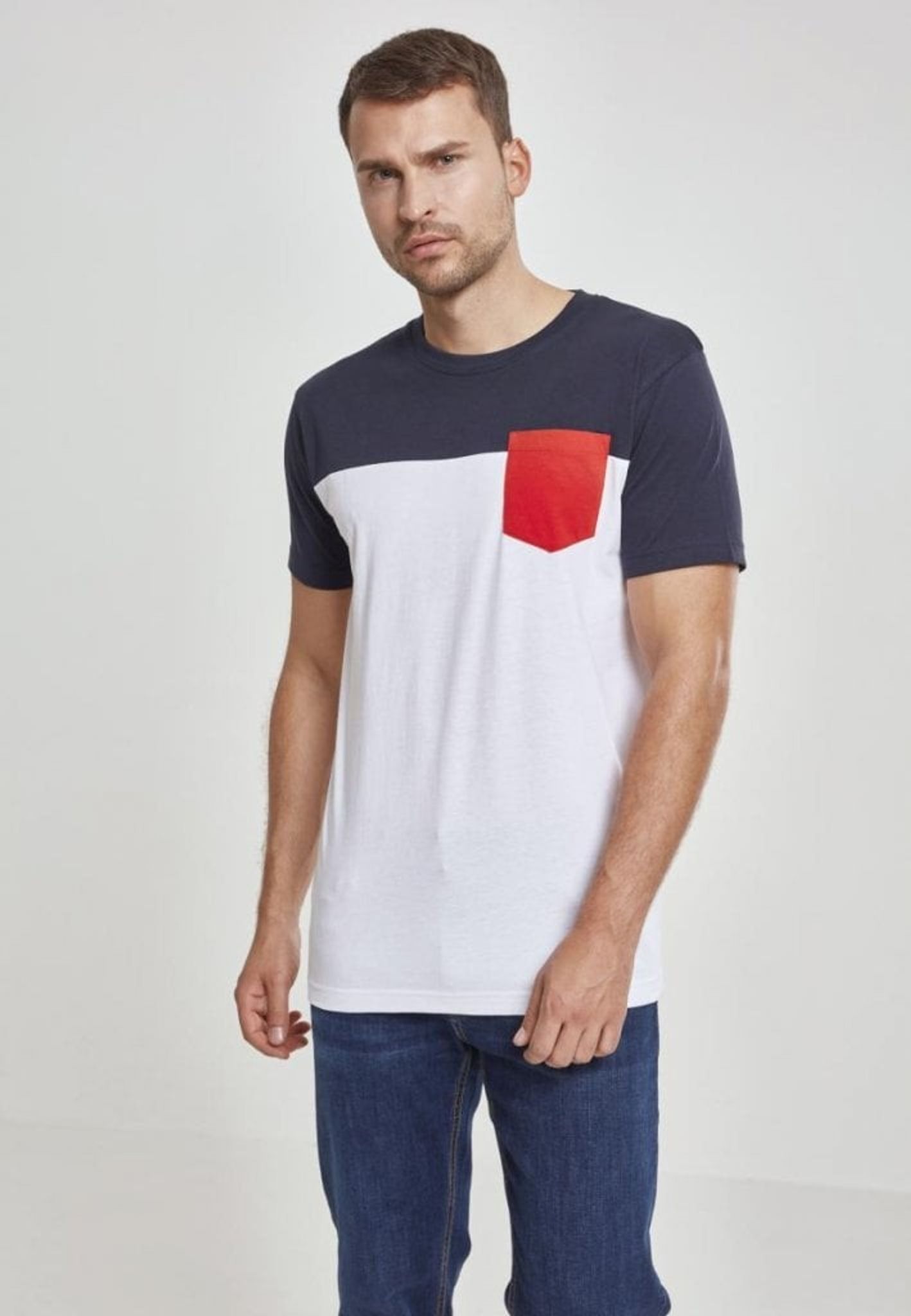 Trefärgad T-shirt med bröstficka.