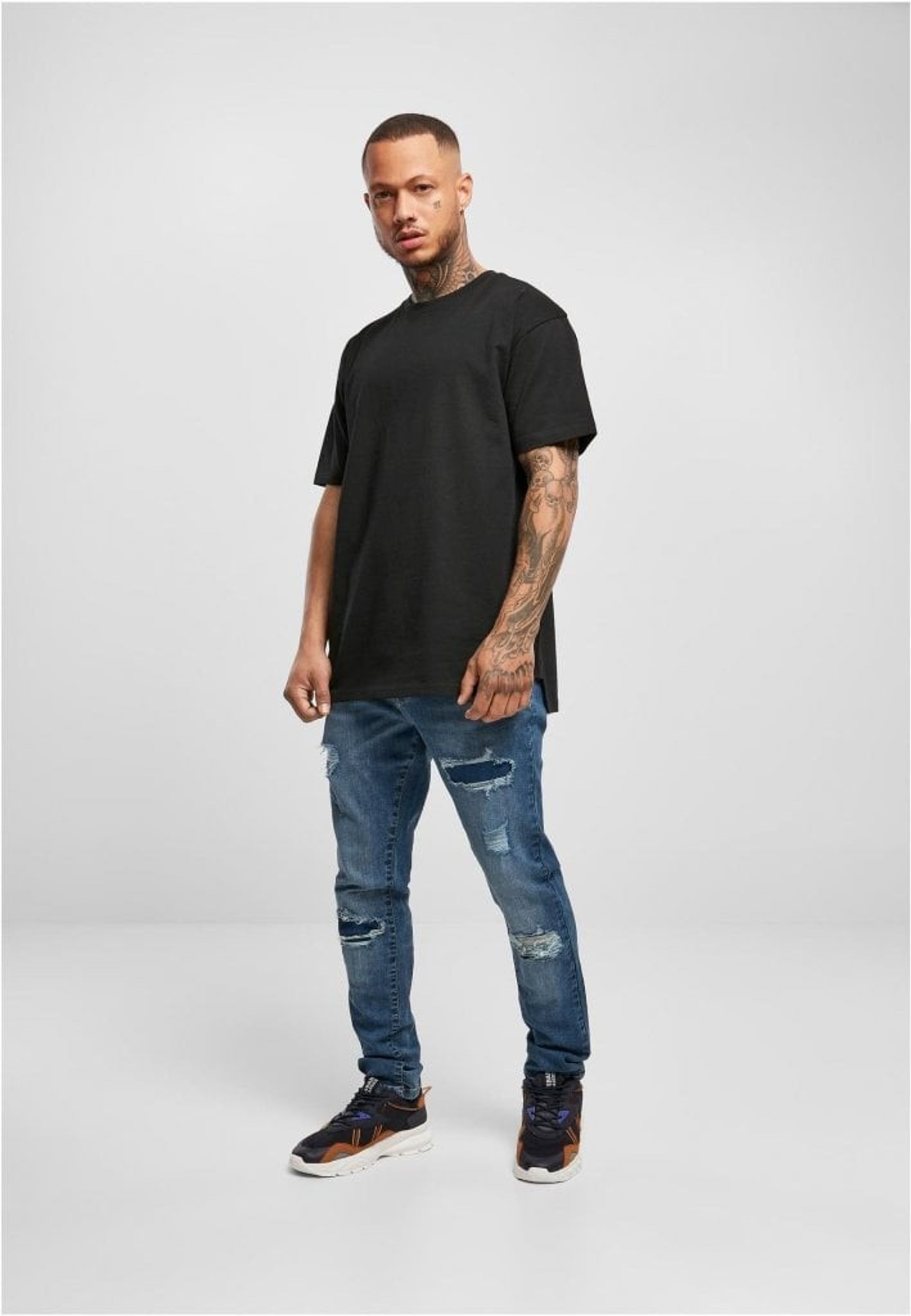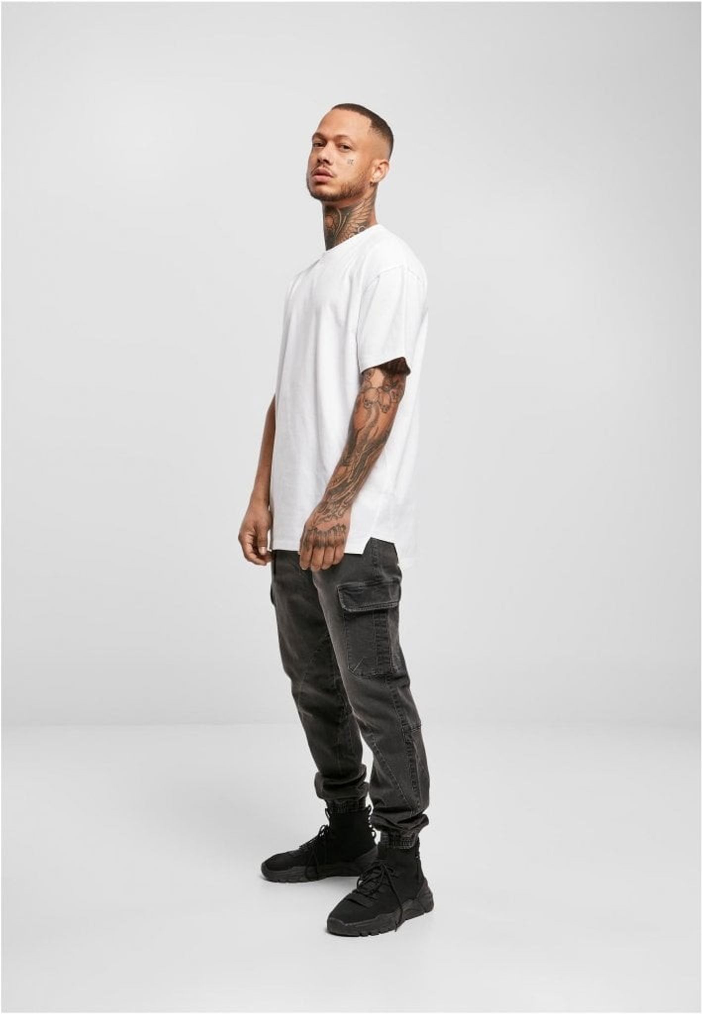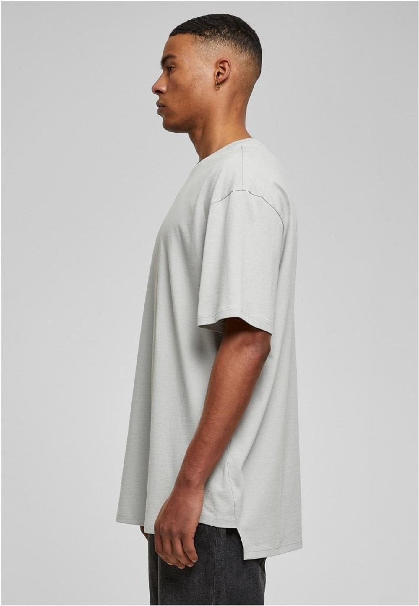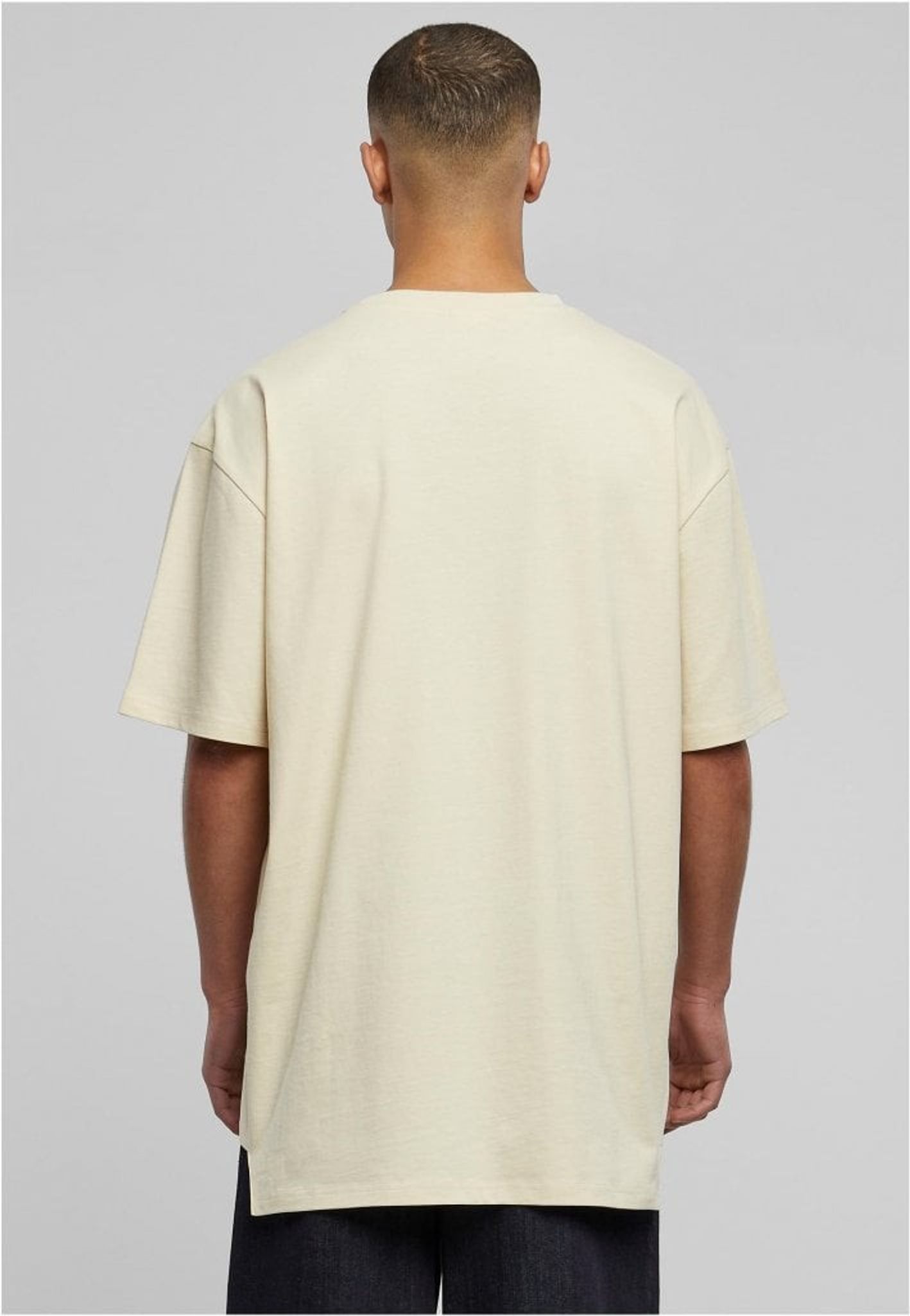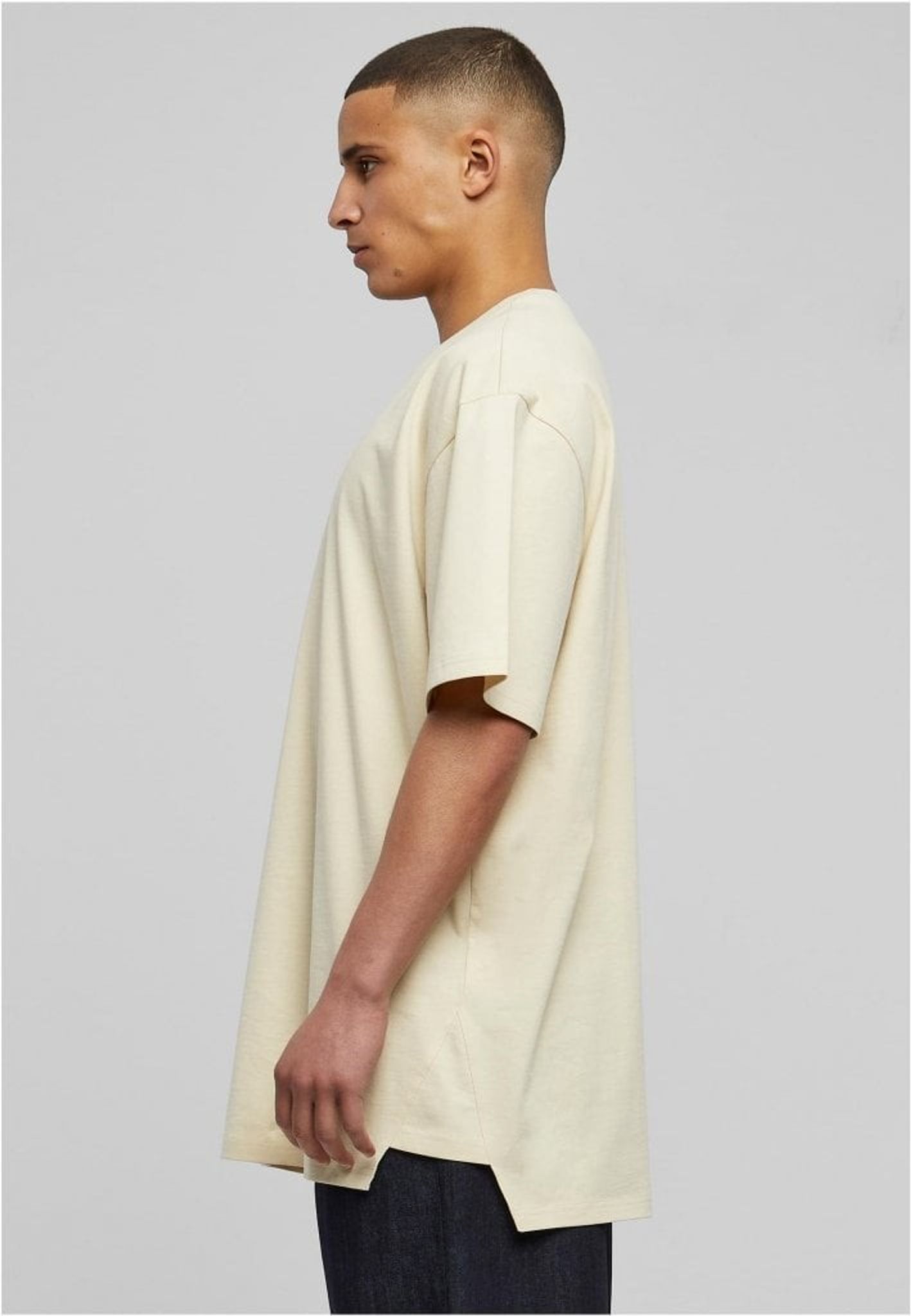 Denna herr T-shirt med lång rygg är utformad med triangulära insatser på sidorna och en avslappnad oversize-passform, vilket gör den till en enkel och funktionell bas. De maskulina detaljerna förstärks av nedhasade ärmar och en ribbad rund halsringning. T-shirten är tillverkad av slät single jersey.