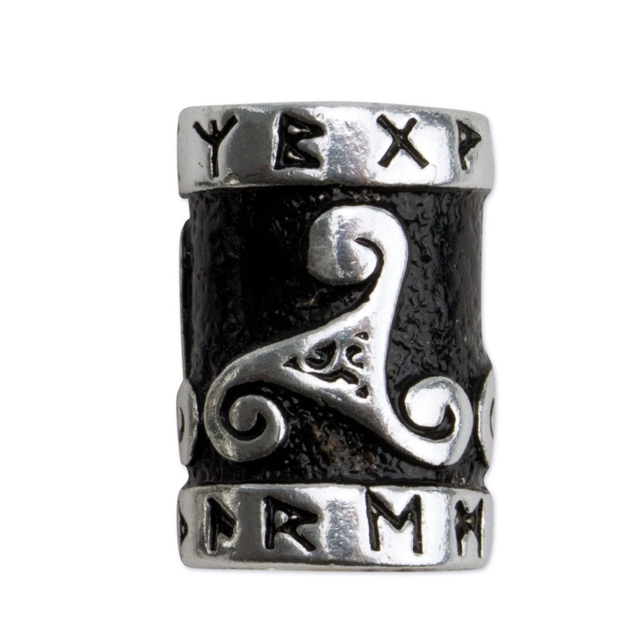 Detta skäggsmycke har en Triskele med tre sammankopplade spiraler.