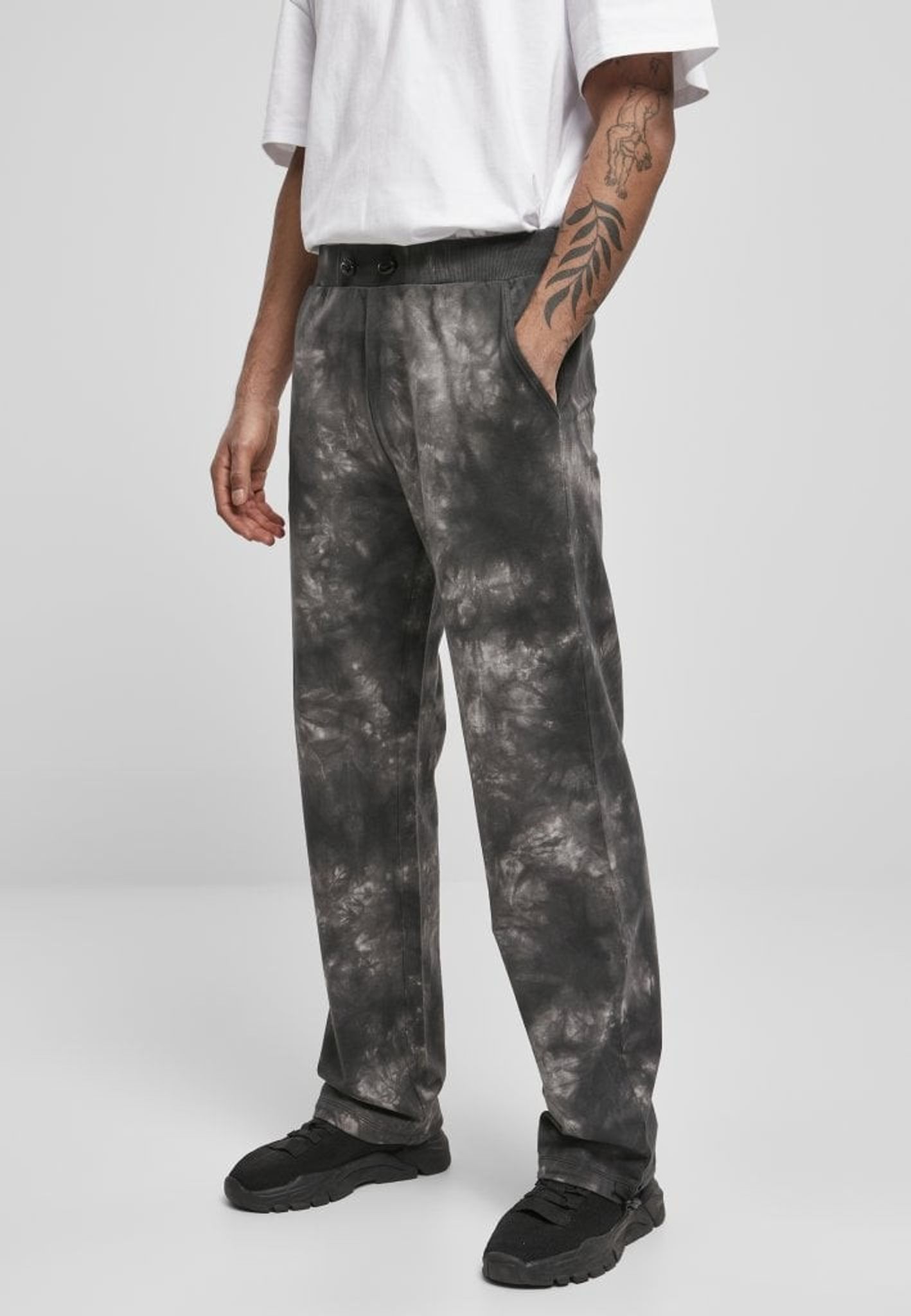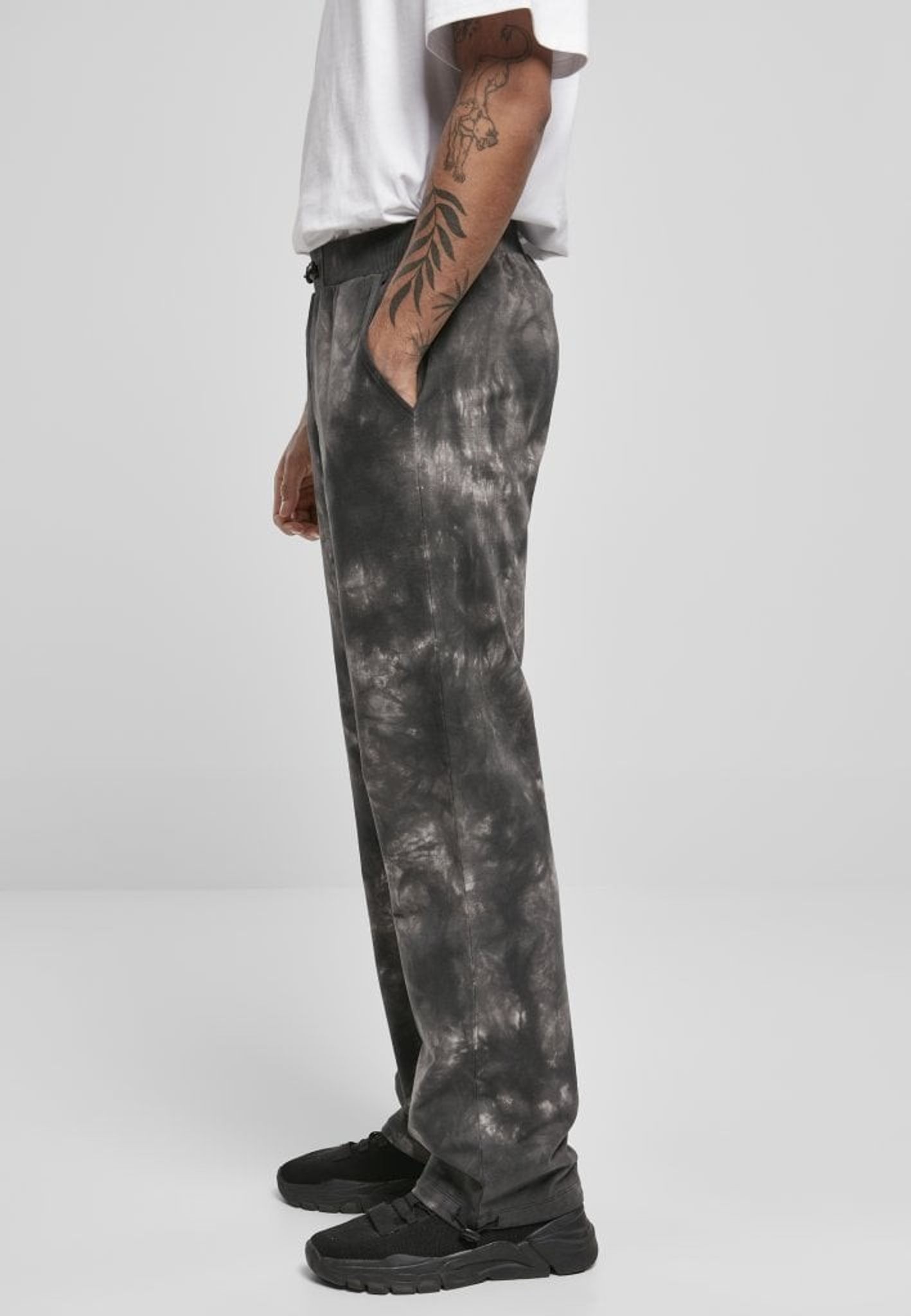 Batikfärgade härliga mysbyxor i frottématerial. Elastisk midja och normal passform, längden når ner över vristen. Byxan har två sidofickor och en bakficka.