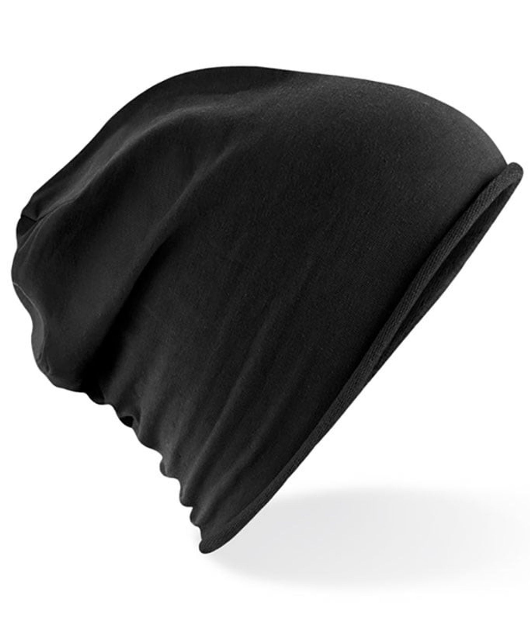 En tunn tygmössa med öppna kanter som gör att kanten rullas upp en aning, men stoppas utav en diskret tråd.