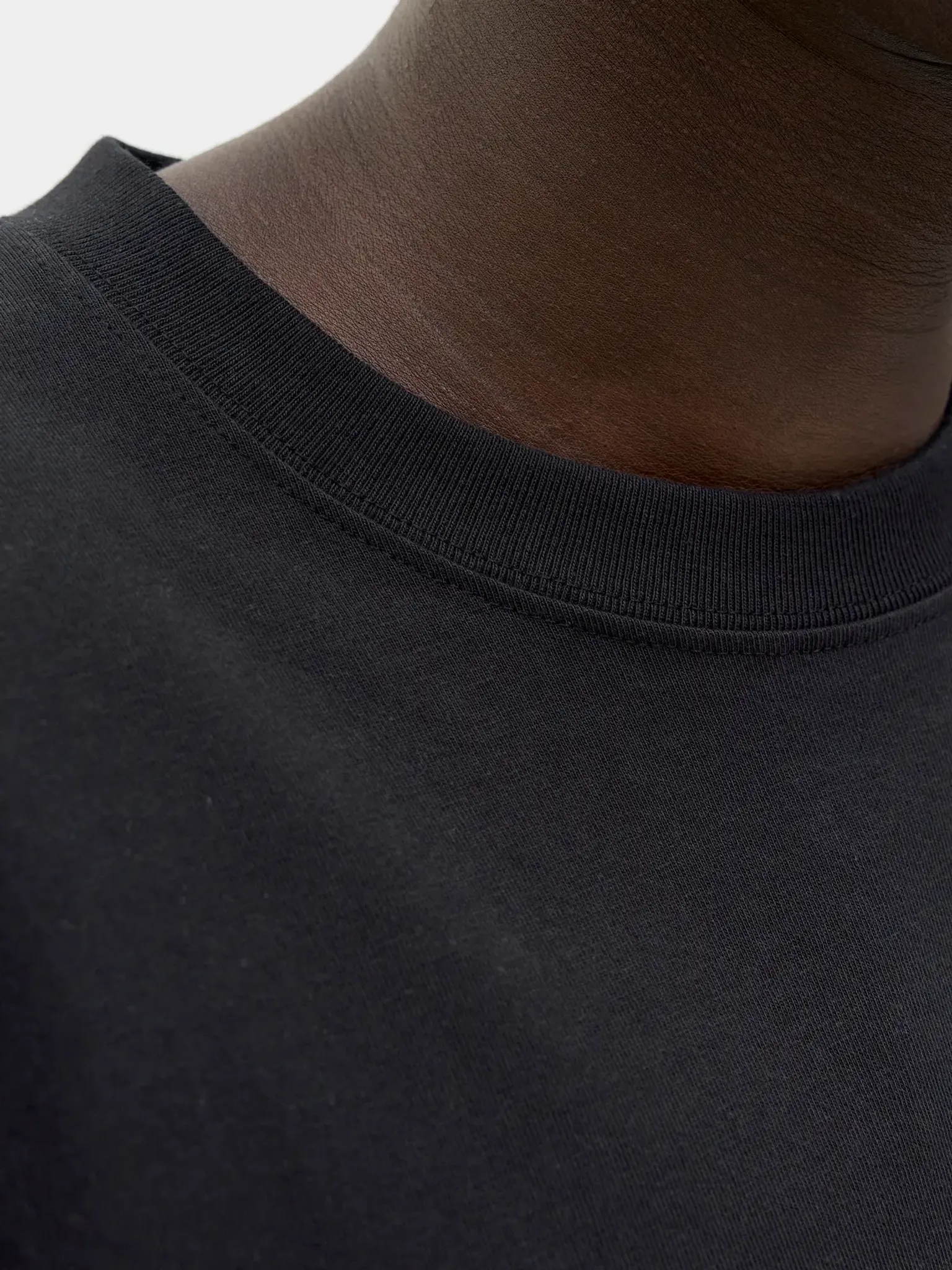 Denna t-shirt är tillverkad med en cirkulär stickningsteknik, vilket ger en jämn och hållbar yta. Den är skapad för att vara både praktisk och stilren.