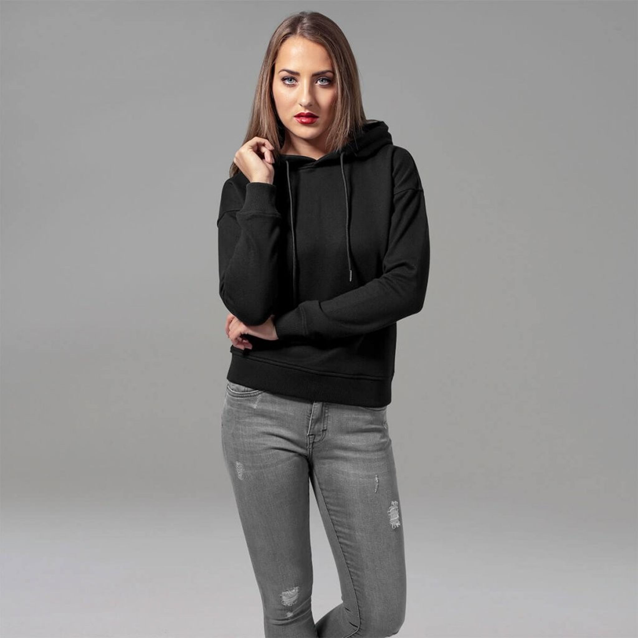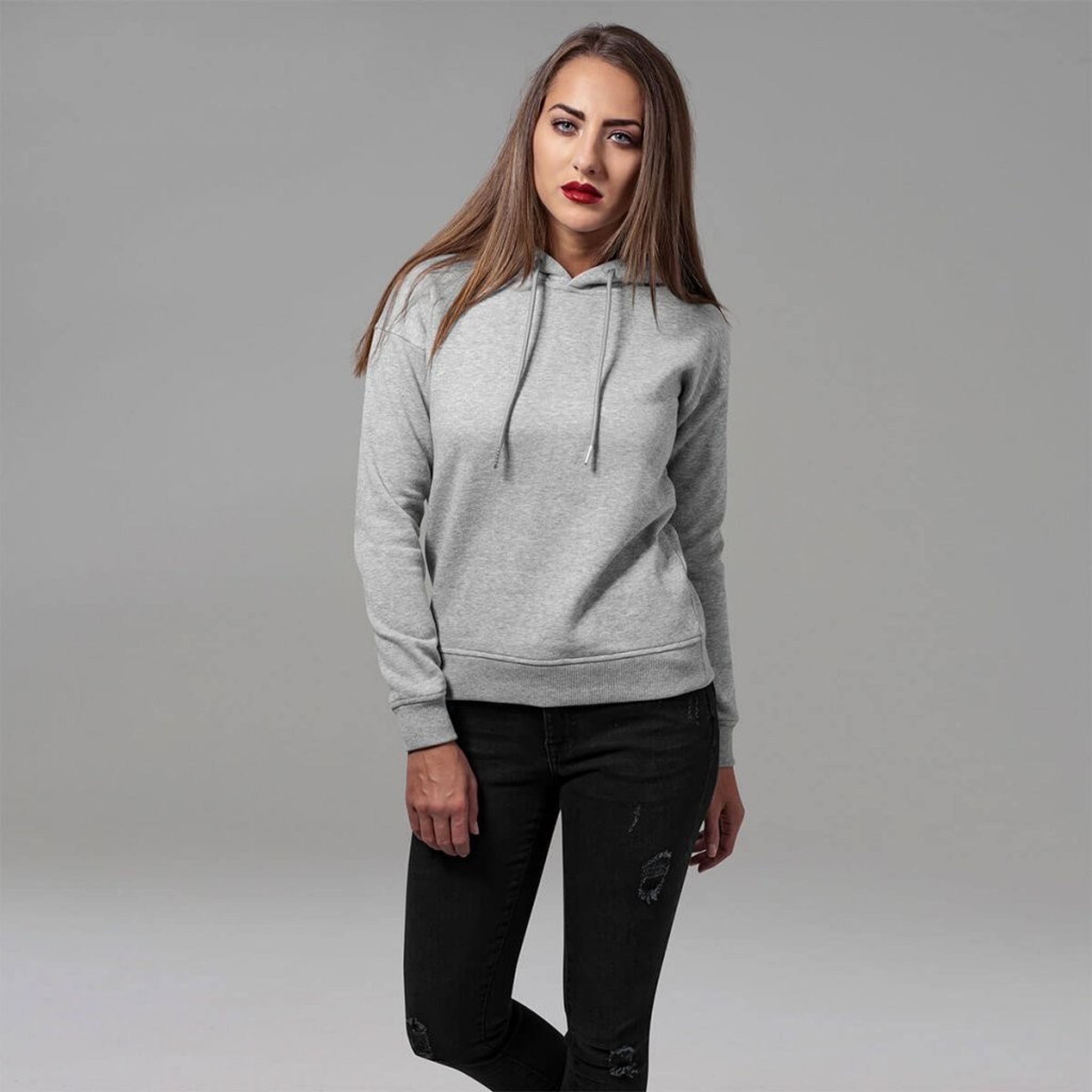 En vanlig damhoodie i modern kortare modell. Modellen är i riktigt skönt material med breda mjuka muddar och långa ärmar.