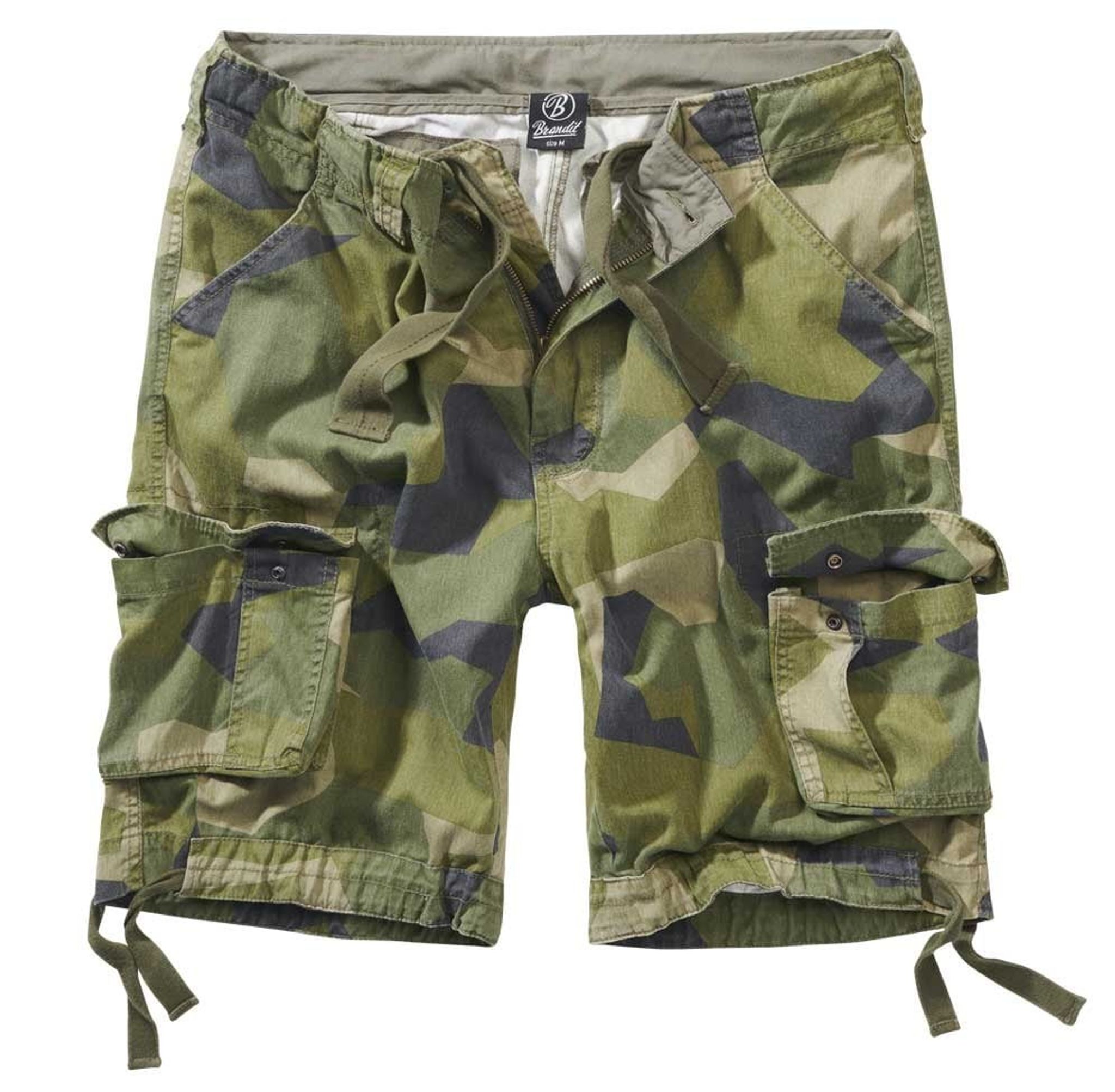 Ett par riktigt grymma cargoshorts i det Svenska m90 kamouflage mönstret. Det är en modell som är lite tunnare och luftigare shorts. Modellen har snören längst ner på bensluten som du kan spänna åt.