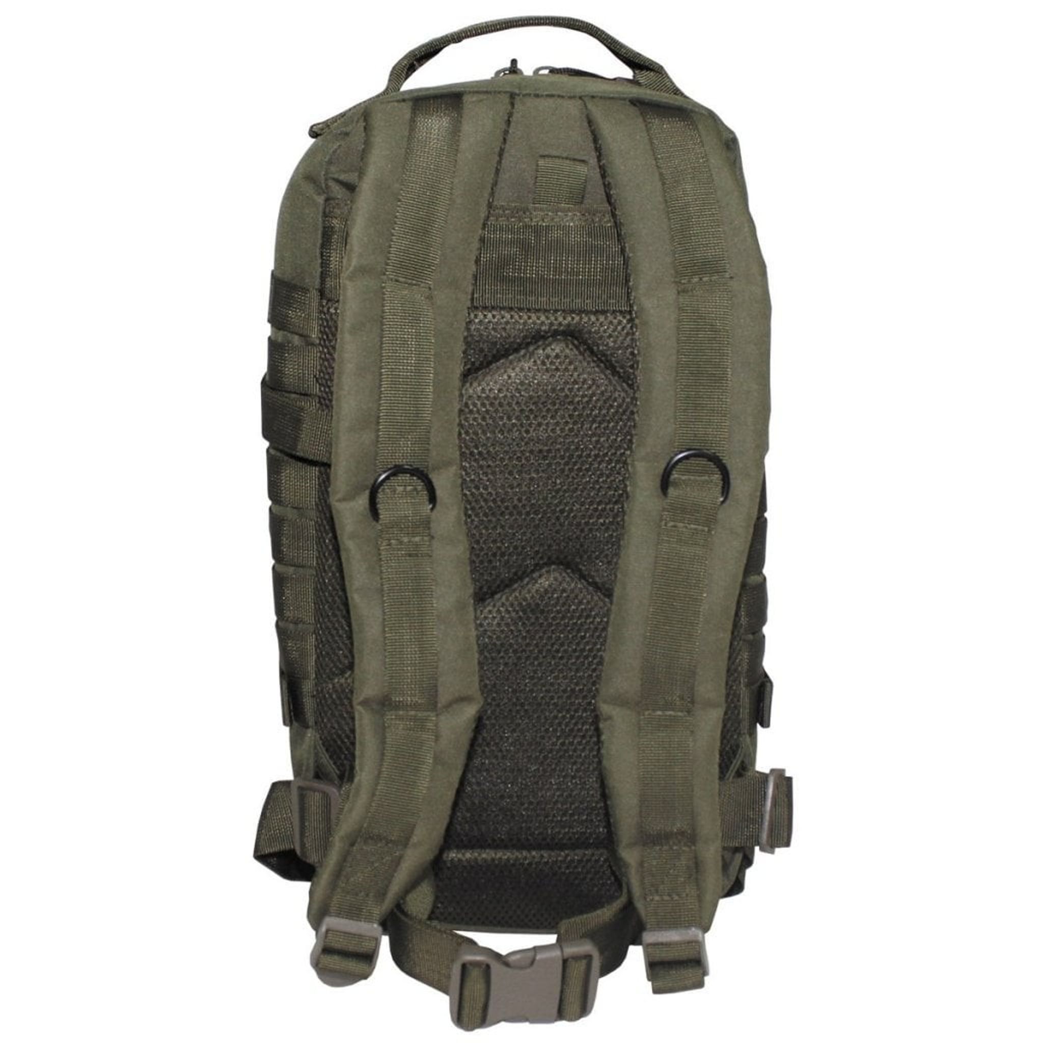 På framsidan och på ryggsäckens sidor finns fästöglor (MOLLE-system) för att göra det möjligt att bygga ut ryggsäcken med moduler.