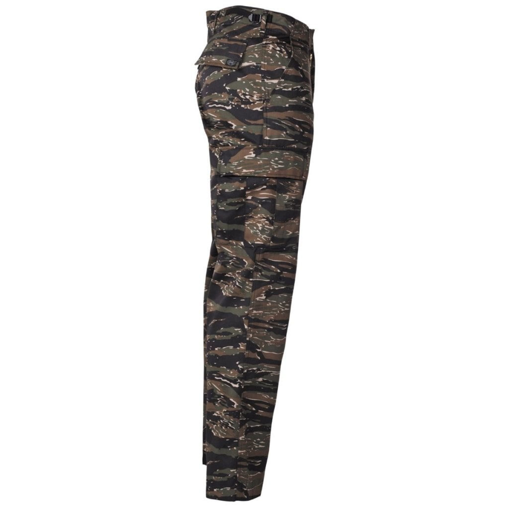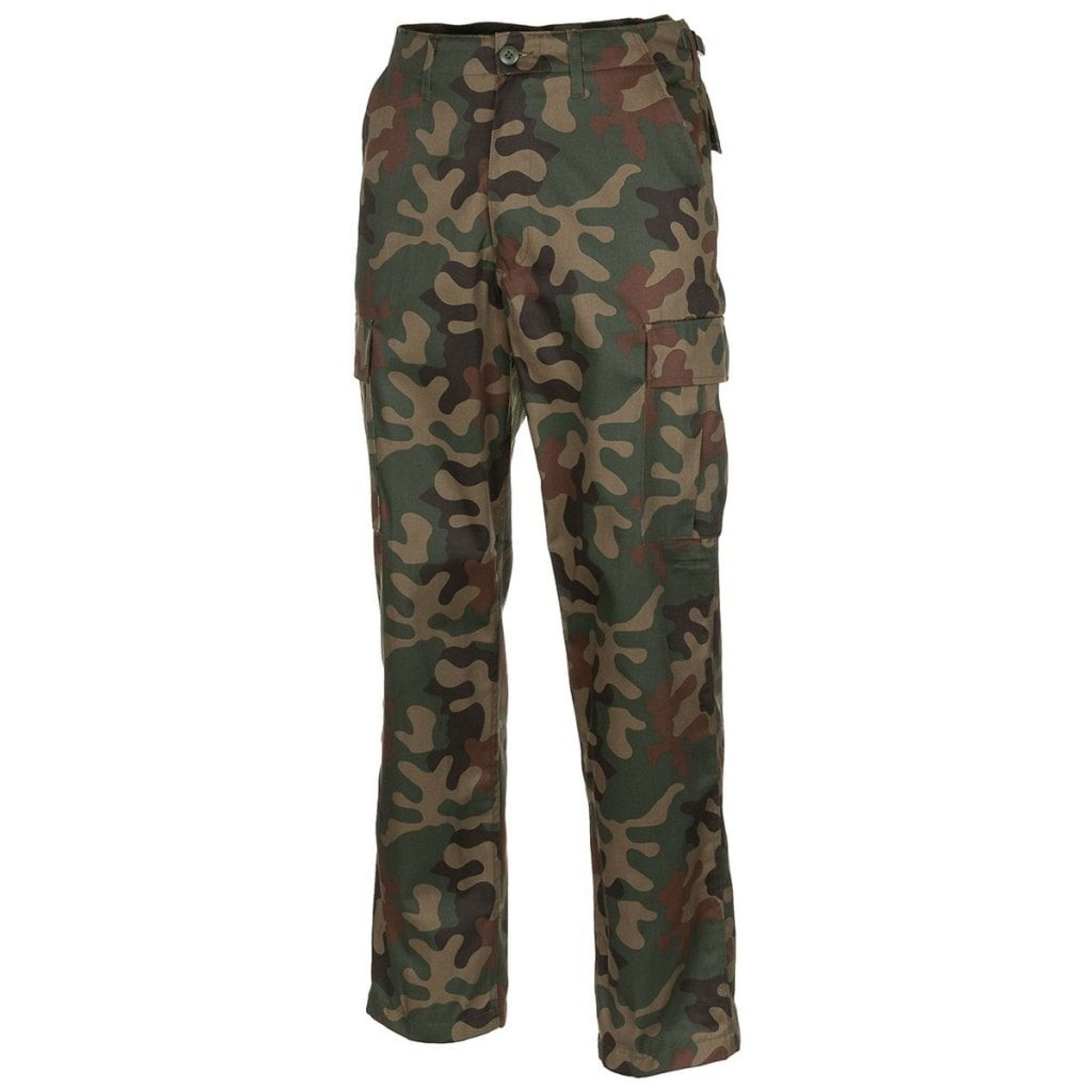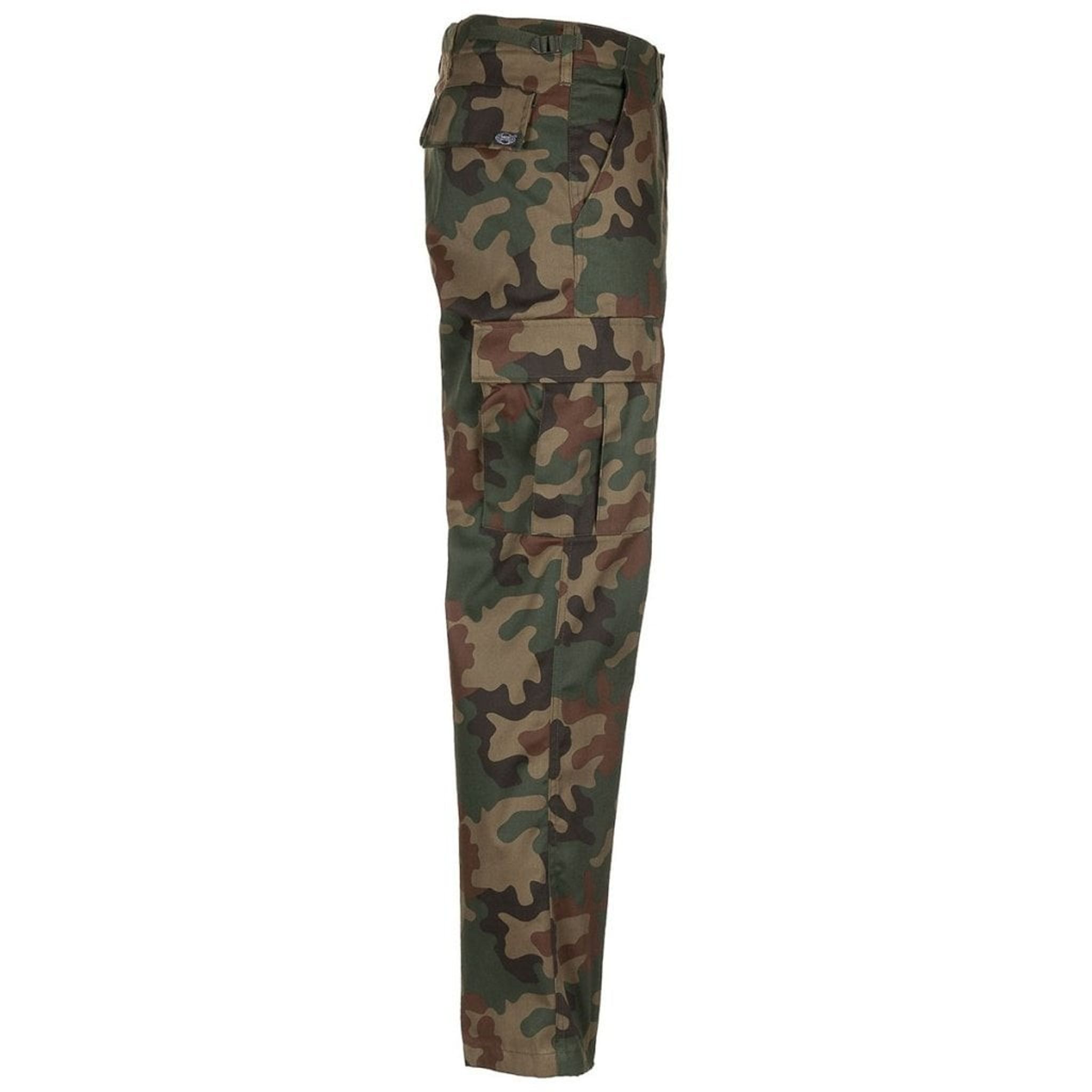 En klassisk US armybyxa i kamouflage. Byxorna har ett justerbart midjeband och extra breda öglor för bälte (ca 5,5 cm).