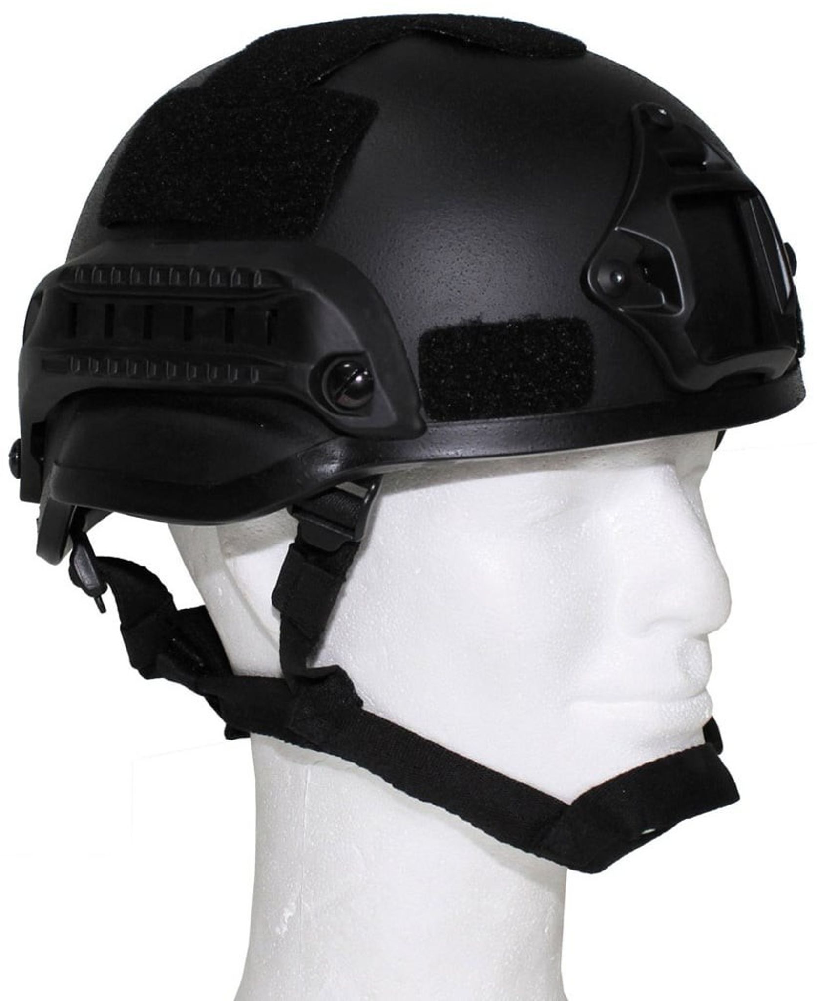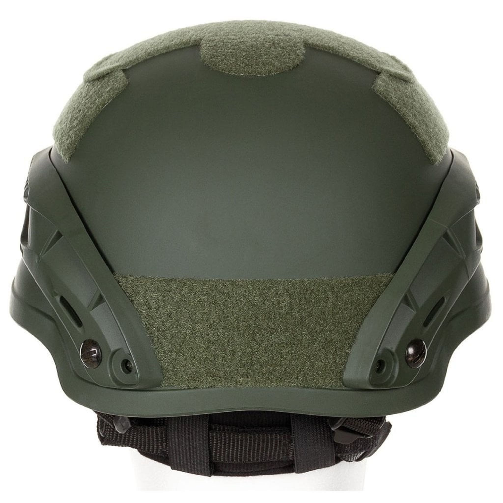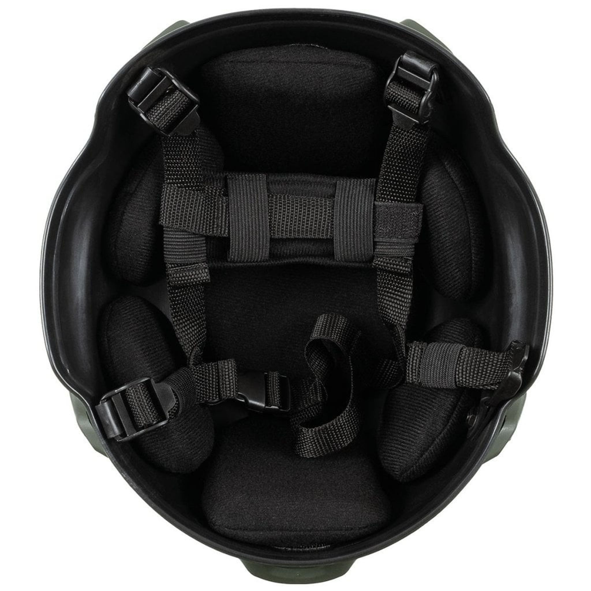 Denna högkvalitativa ABS-plasthjälmen är en trogen replika av den amerikanska hjälmen MICH 2002. Den har en justerbar hak- och nackrem med 4 punkter, samt 7 avtagbara och justerbara dynor för optimal passform och komfort.