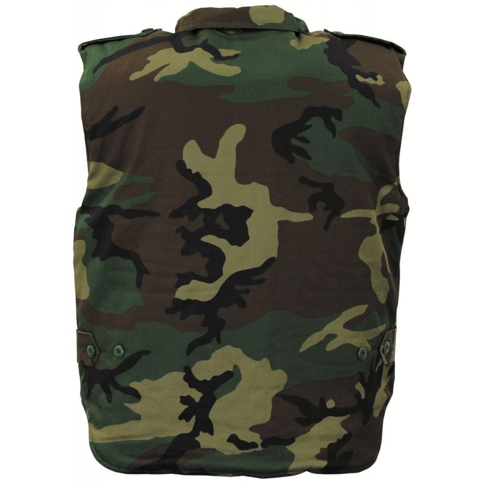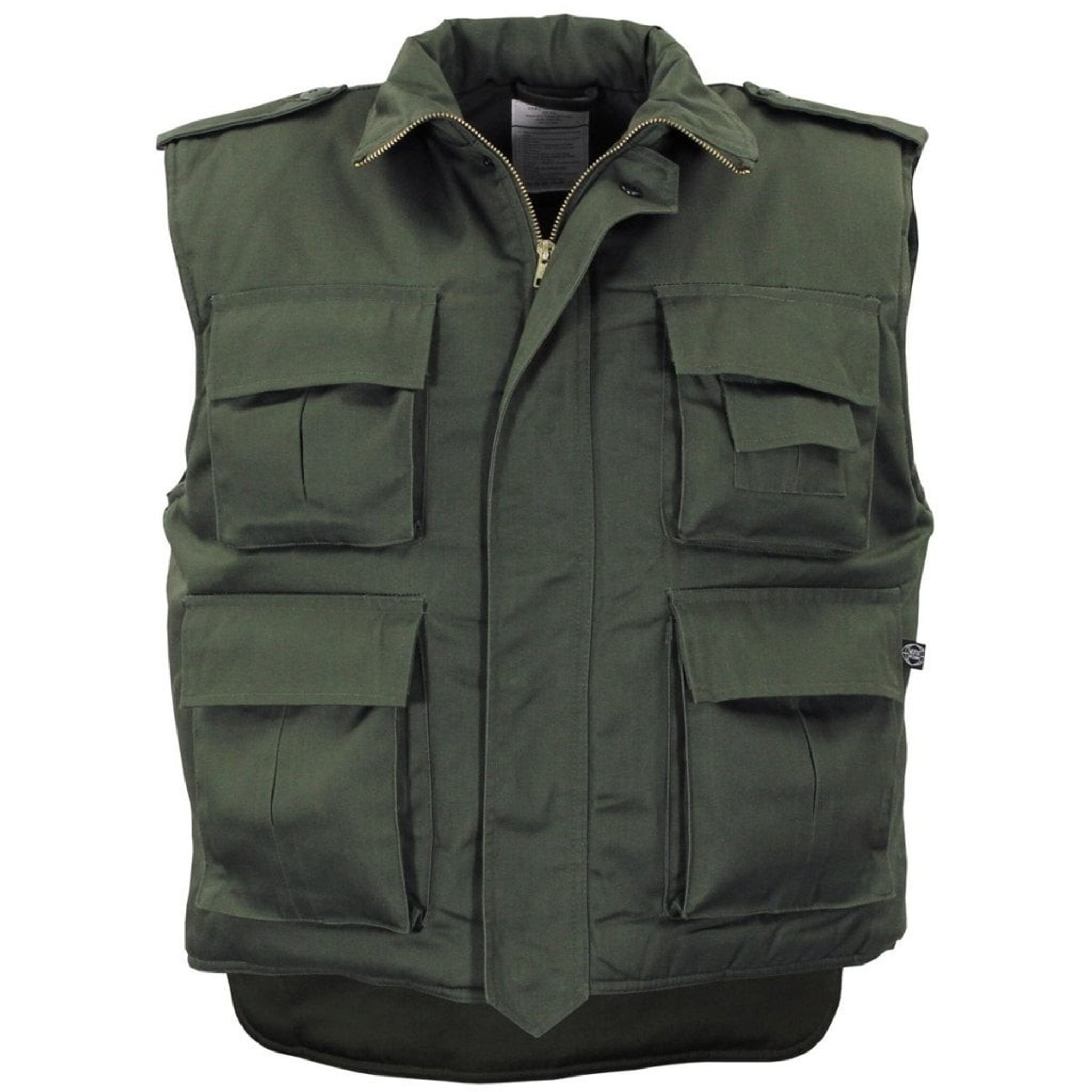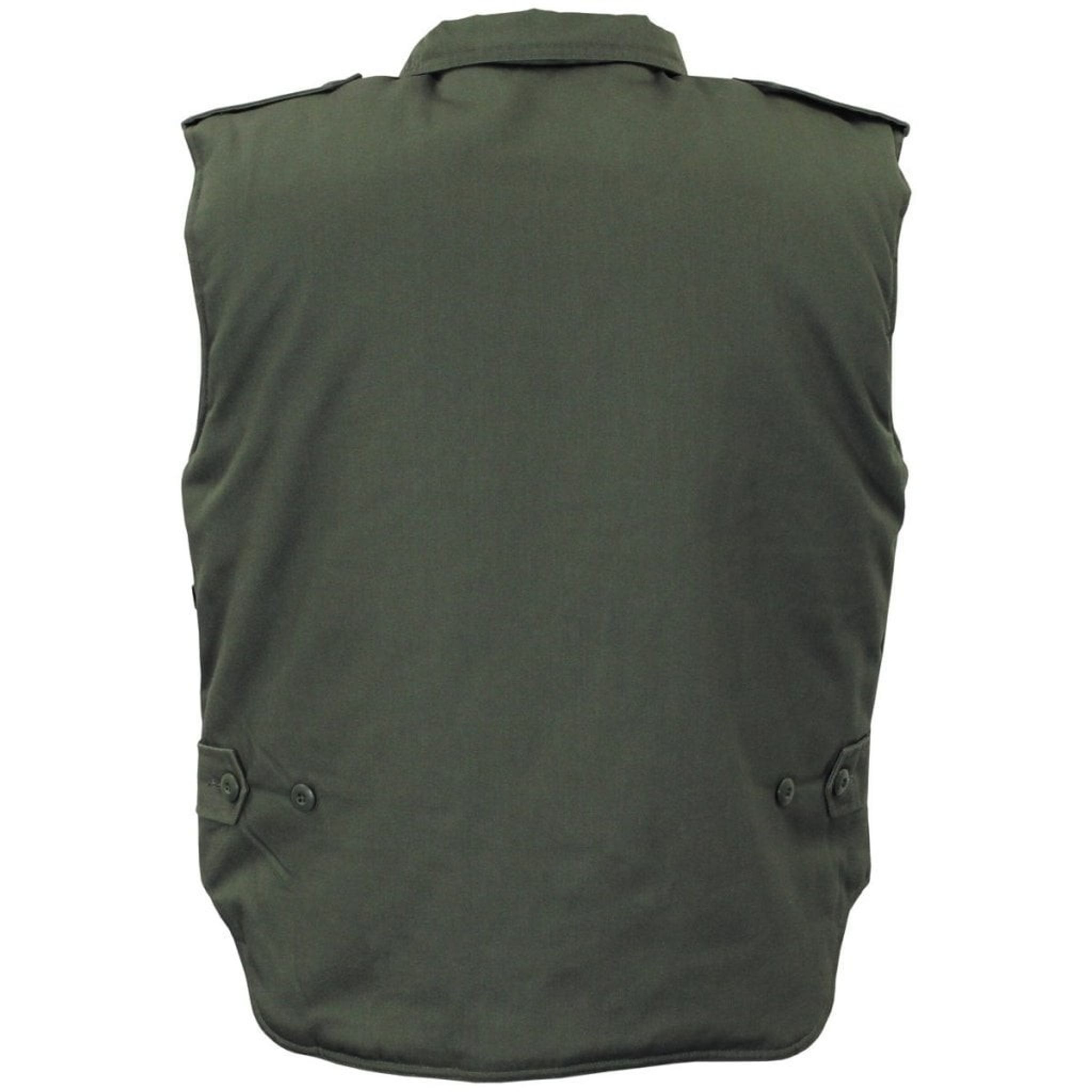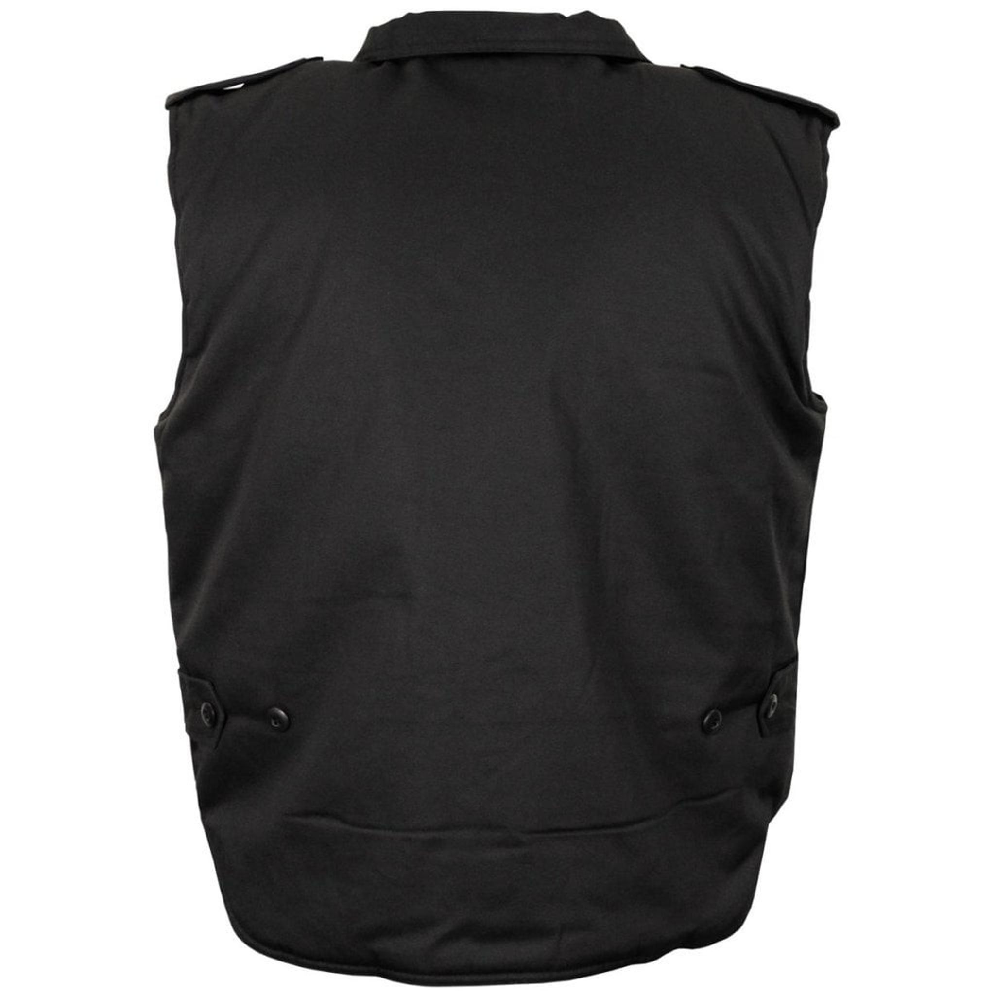 Denna väst öppnas med en dold dragkedja fram med tryckknappar. Dragkedjan går upp i halsen.